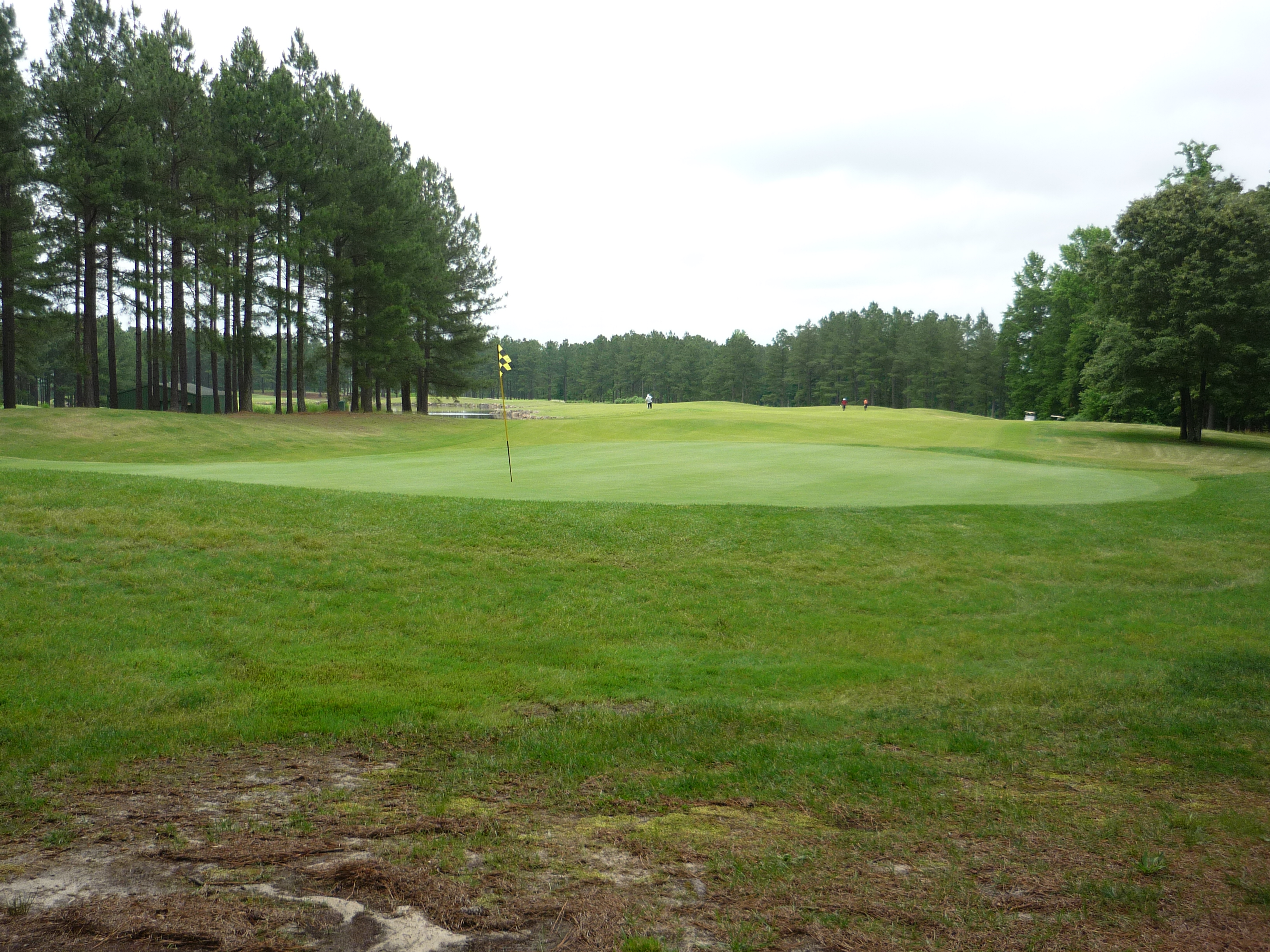 This is one of the more picturesque holes at Mattaponi Springs. The pond bordered the green and hole nicely in my opinion. Only poorly struck shots will be in danger of getting wet. This green is quite wide.