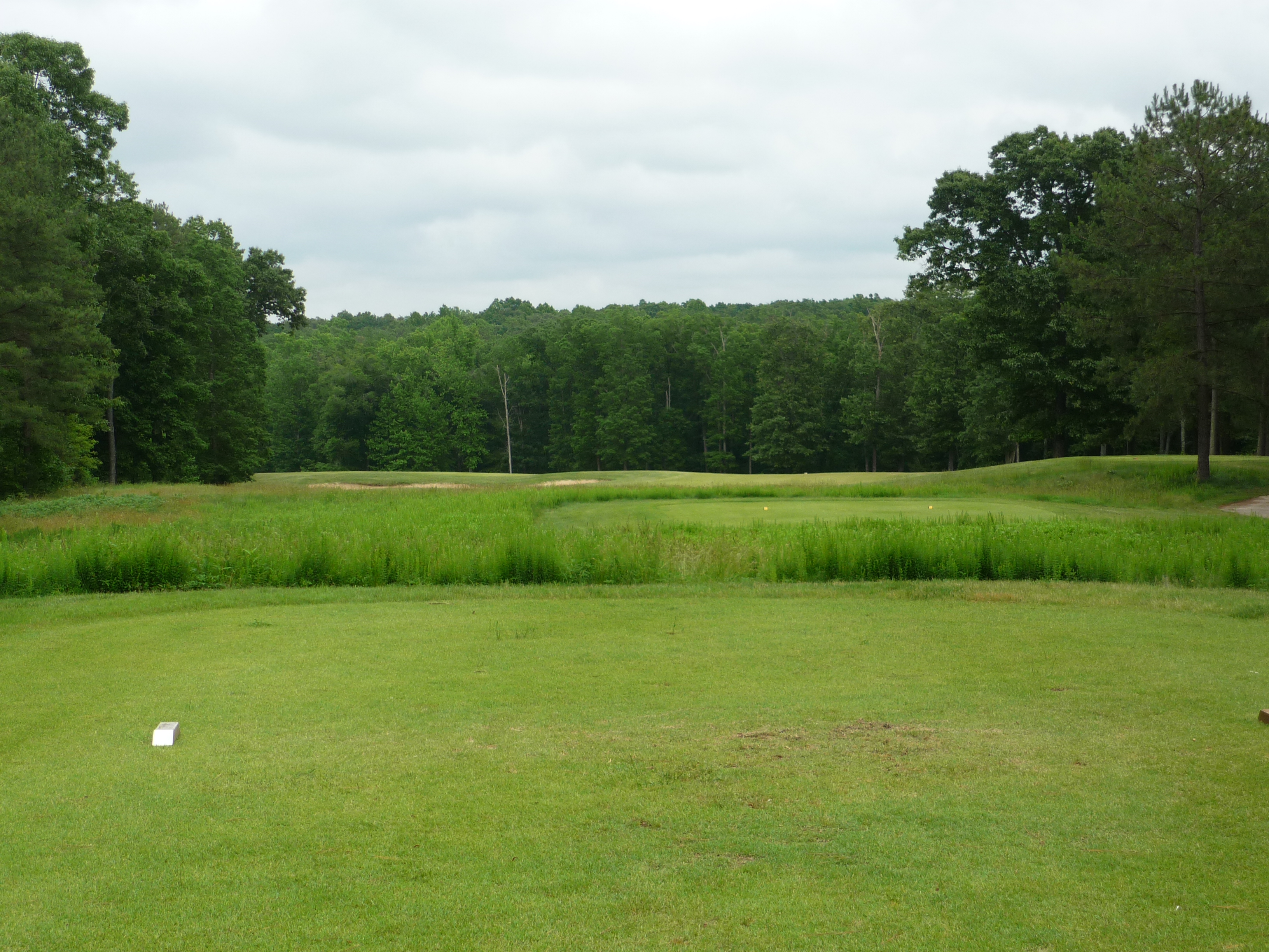 This was one of the cooler holes at Mattaponi Springs. I like a drive-able hole when it makes sense. After some longer holes, this was a nice change of pace. The hole bends sharply to the left so you will need to hit a big draw.