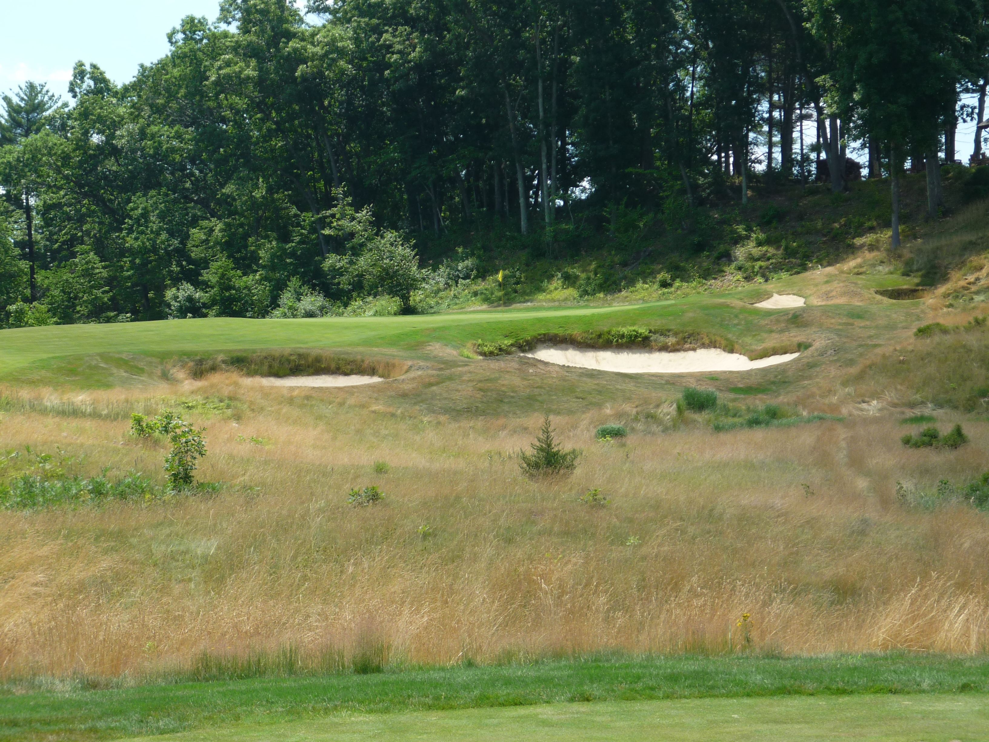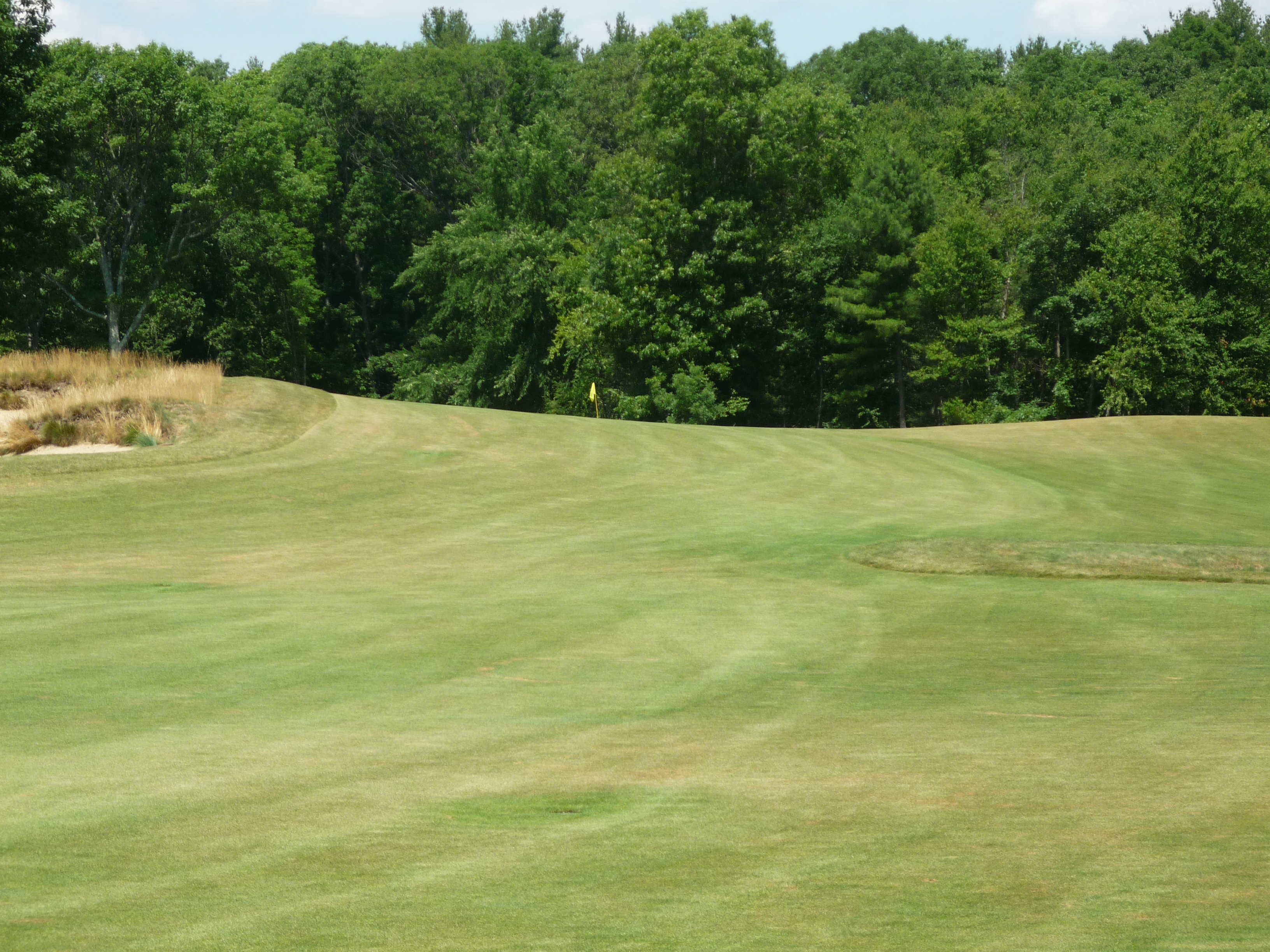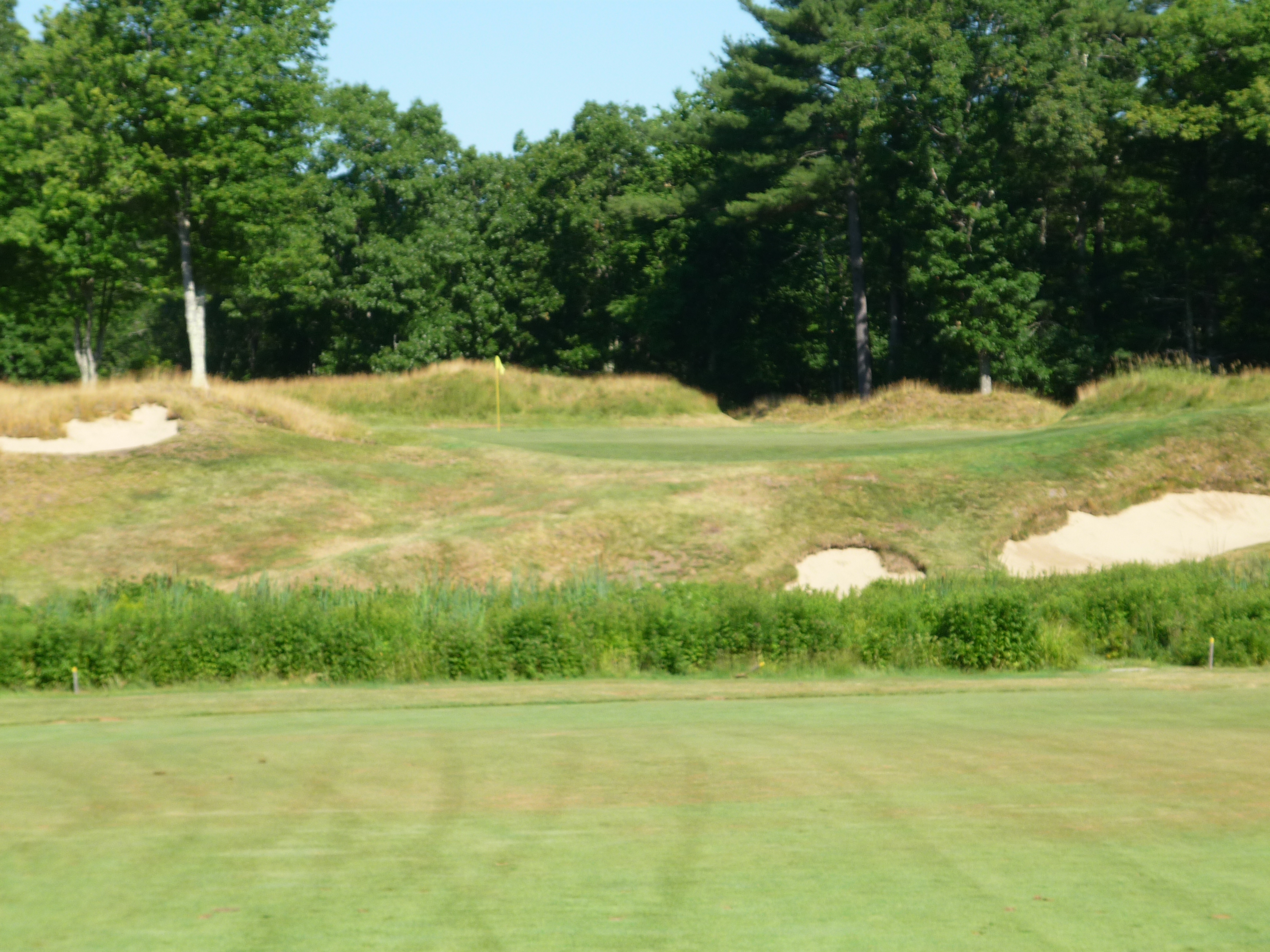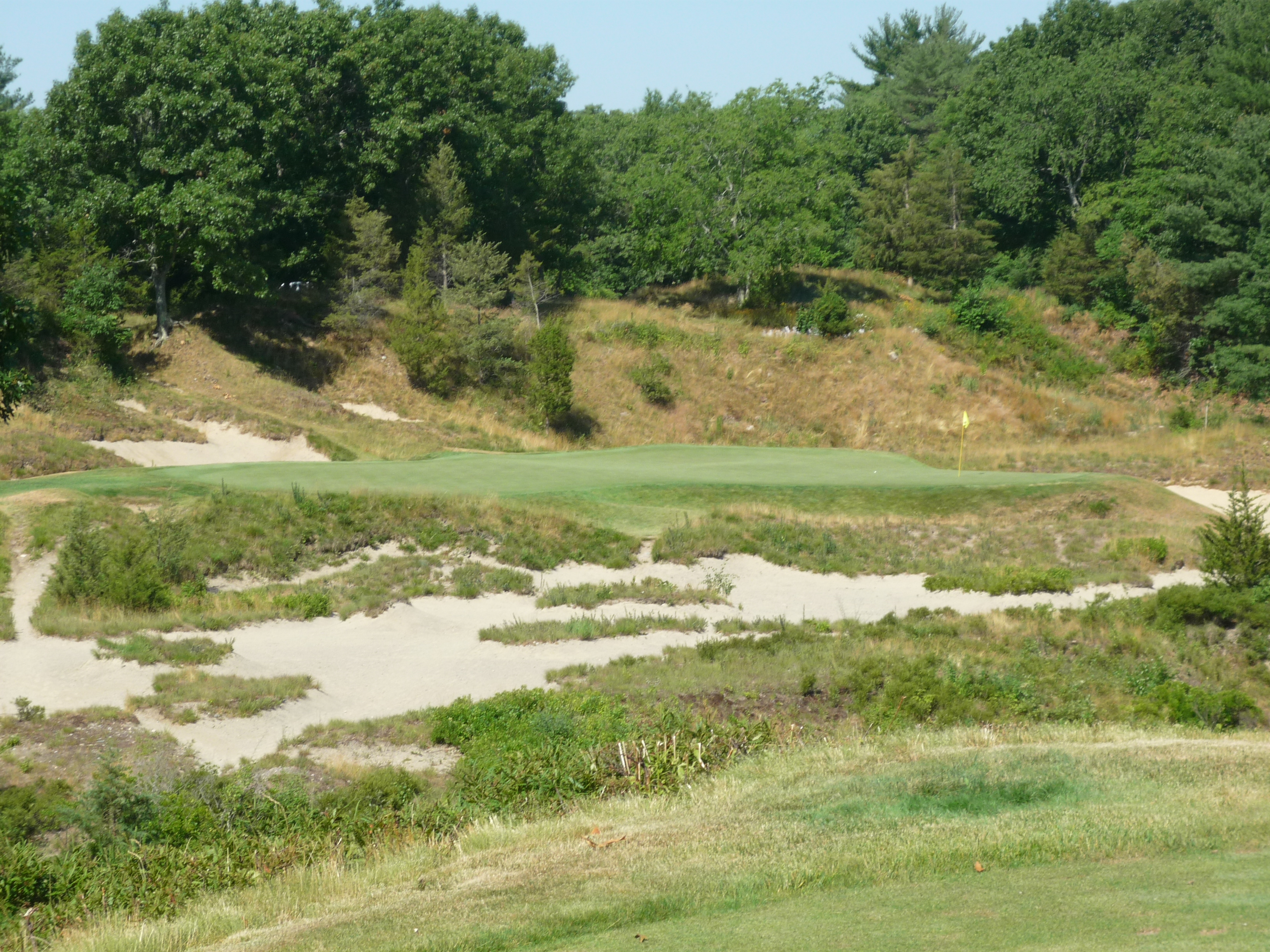 This is a great hole. It reminded me of Prairie Dunes a bit. The green is very large, but has some treacherous pins. The green is hourglass-shaped.