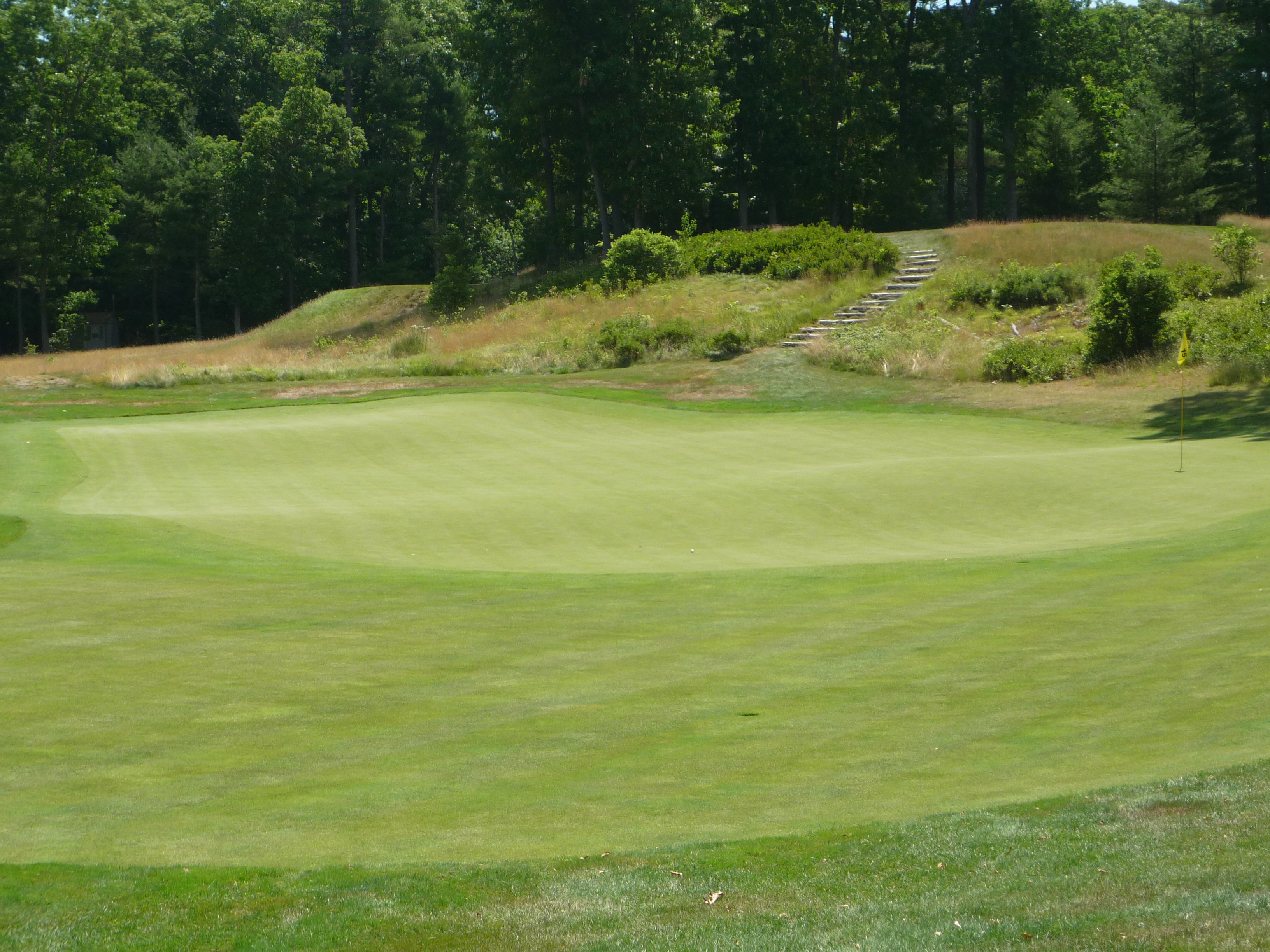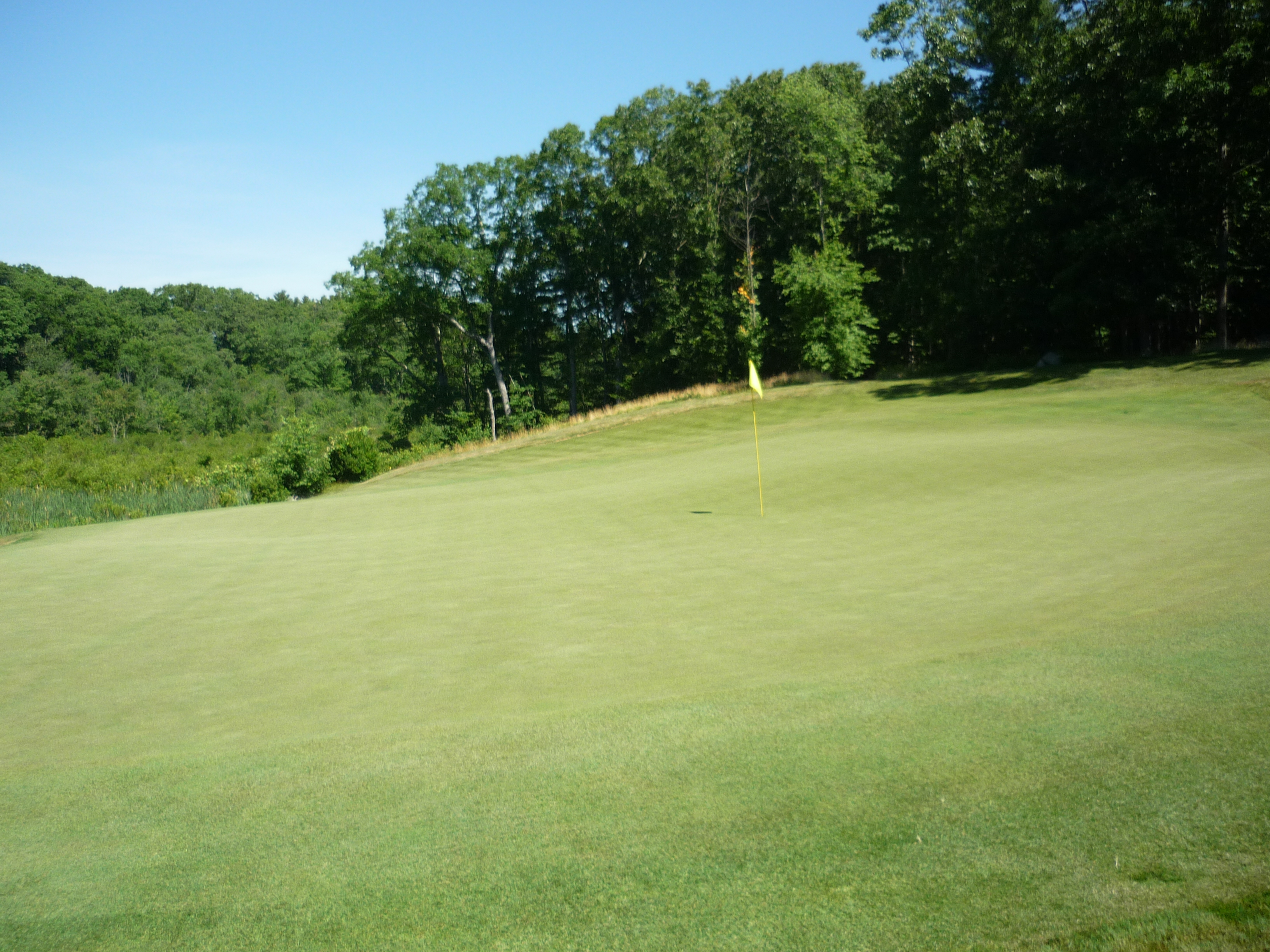 Look at the slope around this flag! I am not sure you can find a harder pin position in New England. You have to be perfect with your speed to keep it up there. I envy no one having to chip to this one as I did.