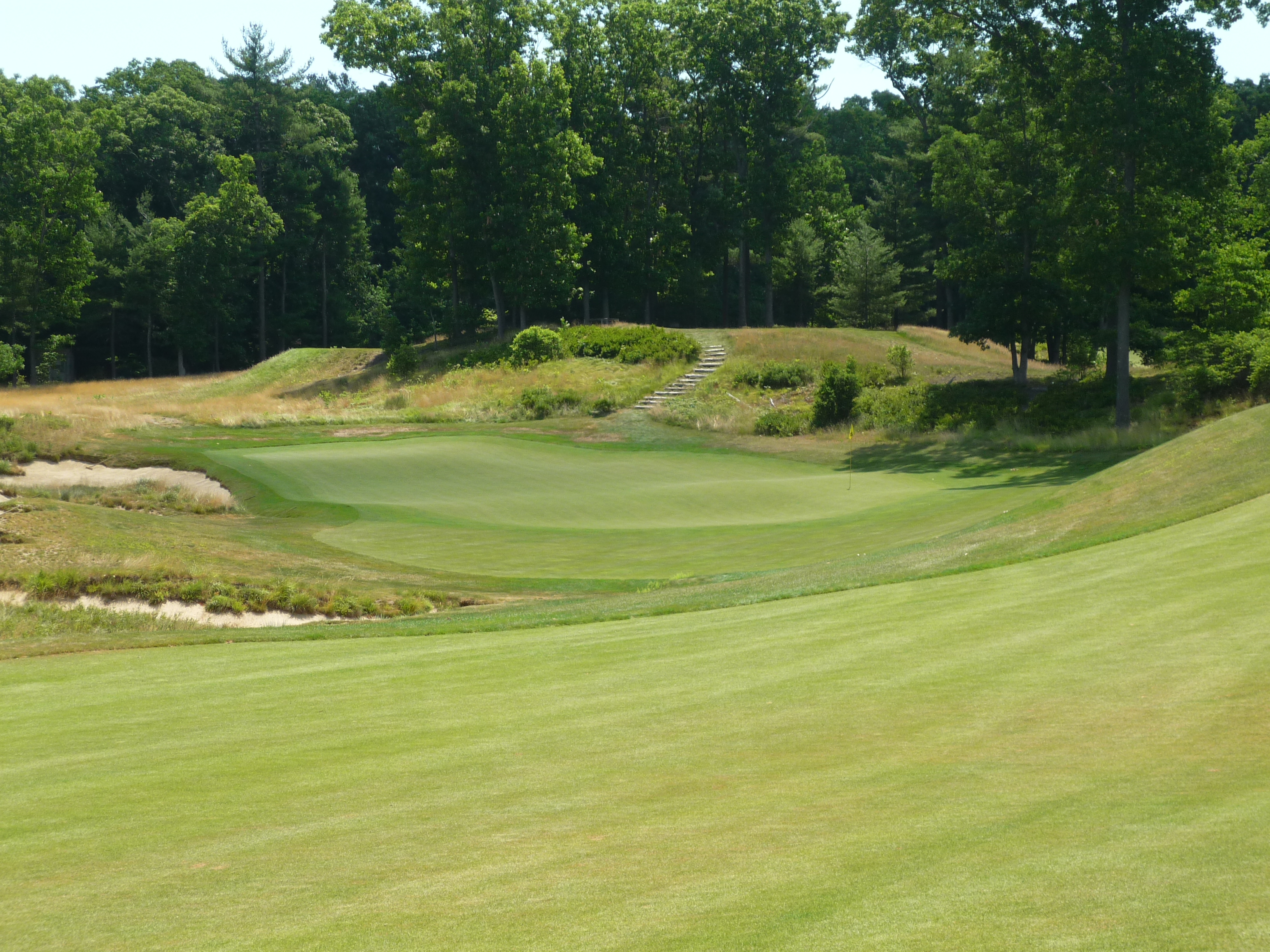 The fairway transitions almost seamlessly into the green. There is some serious break at the back of the green.