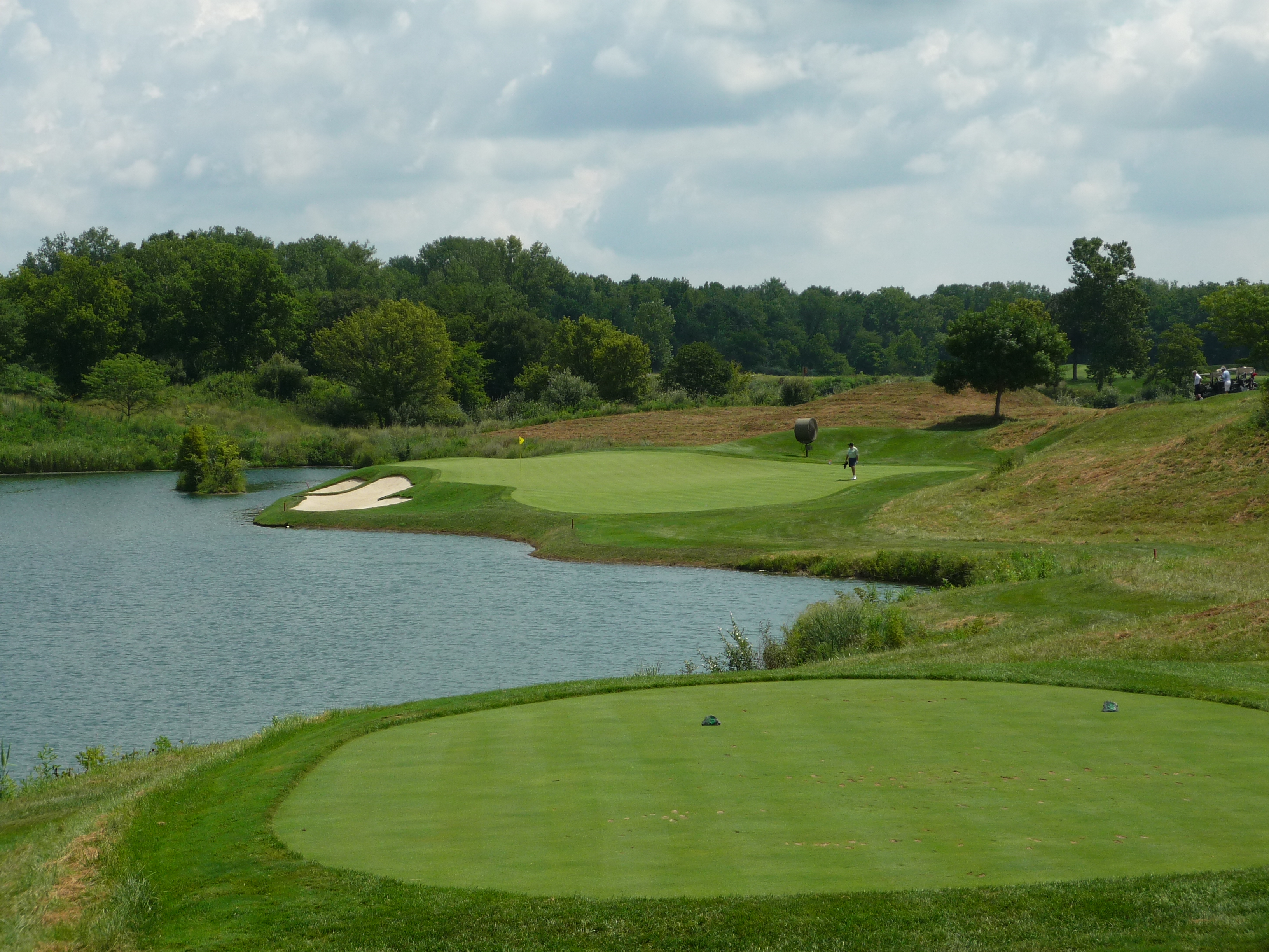 The only protection on the second shot is the deep bunker fronting the green. If you pound one the water is well behind the green.