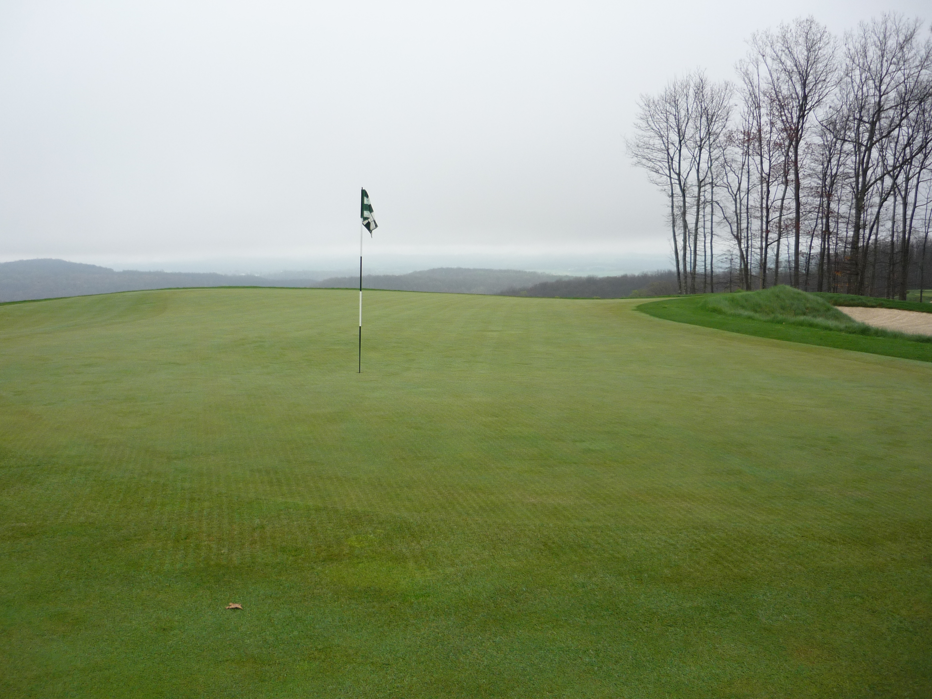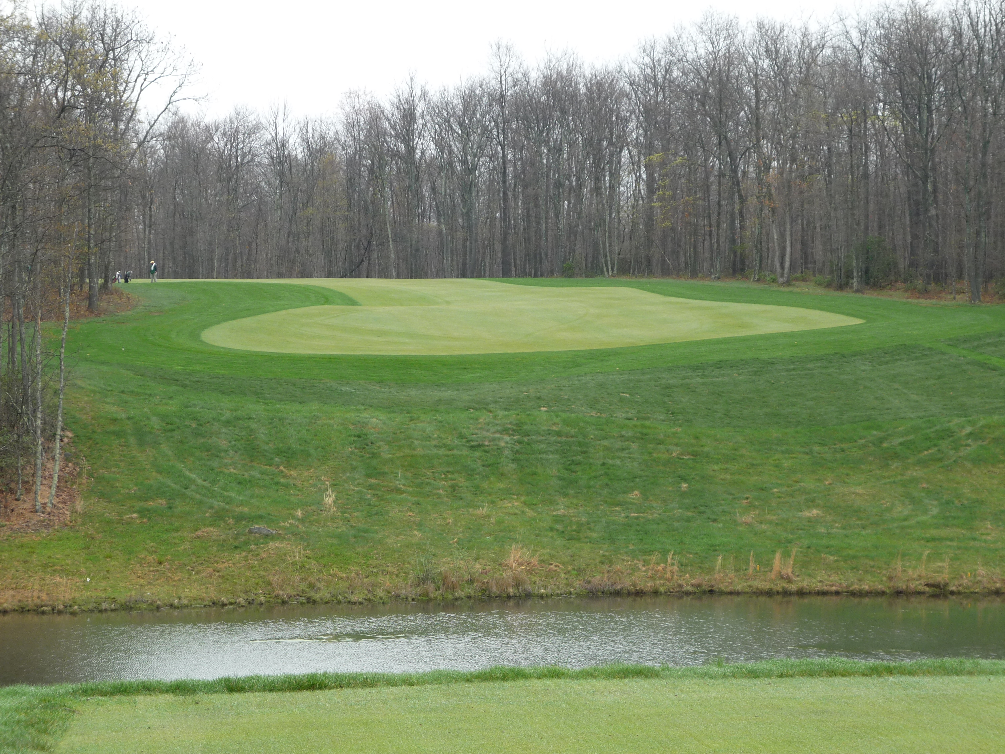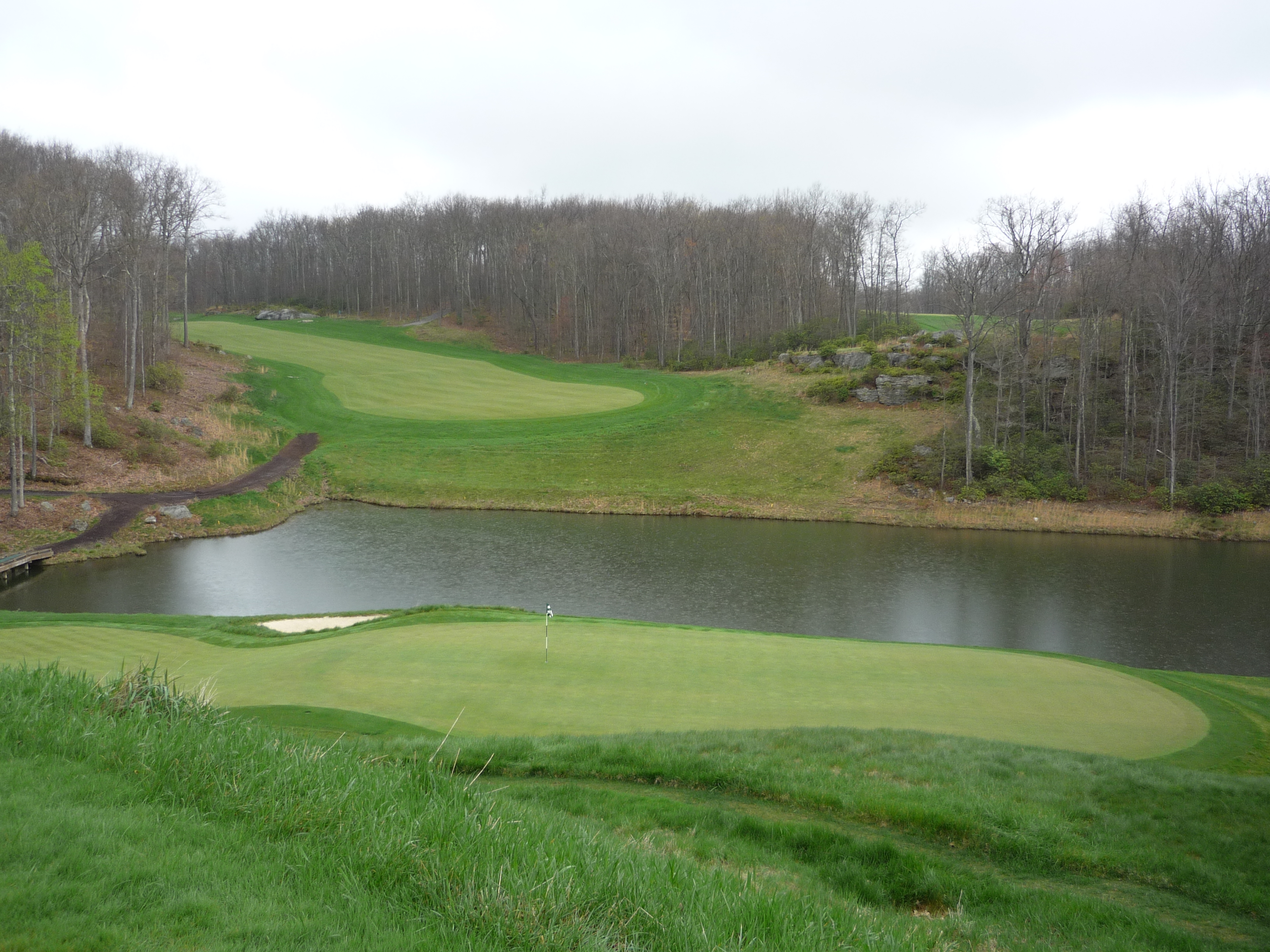 This tee shot is a bit difficult since there is nowhere to miss except short. Luckily, it plays downhill and I got it on a day with a front pin. It only played about 195 yards.