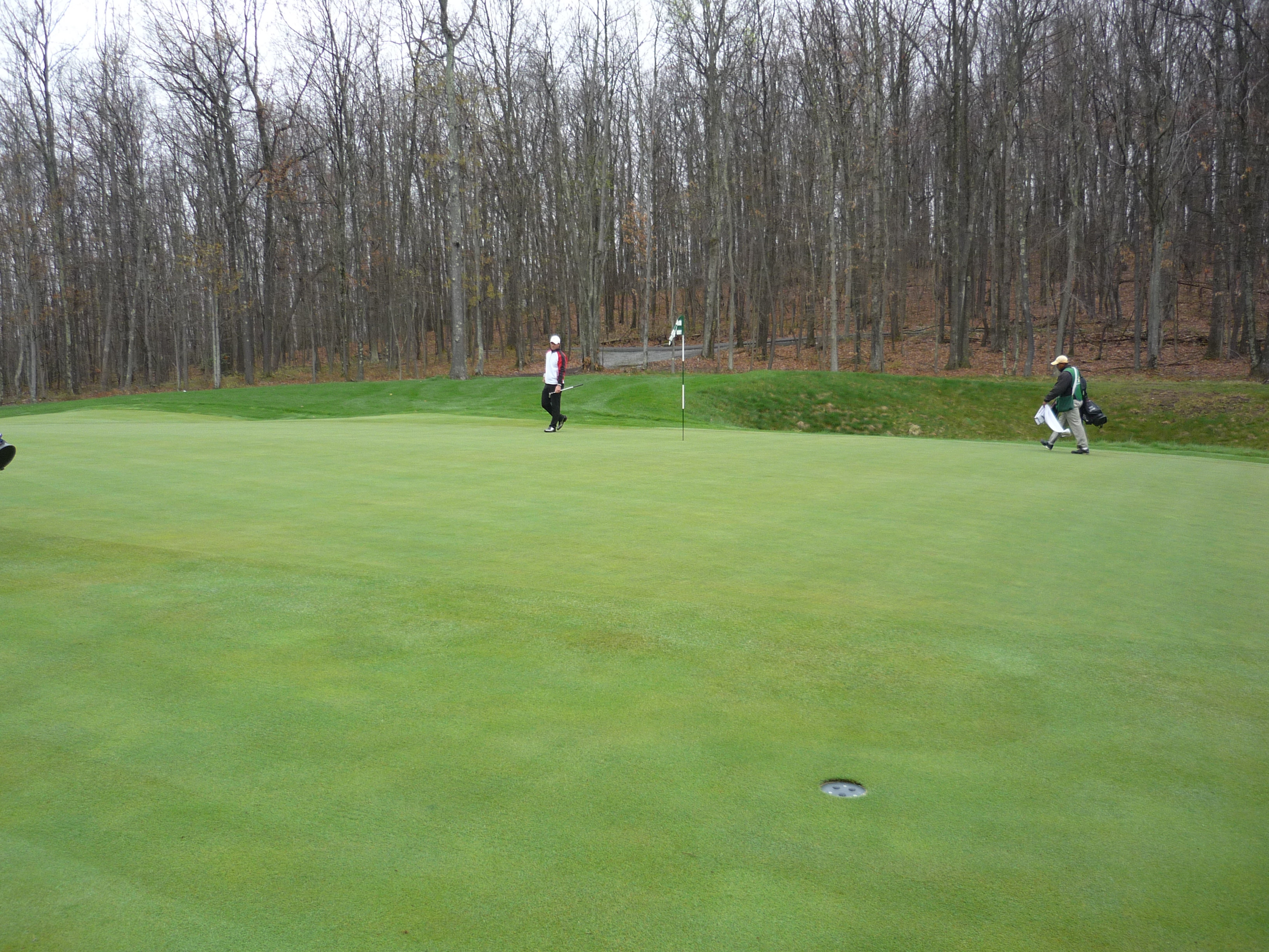 The wife and I headed up Friday night and stayed about 45 minutes from the course. After the drive in the morning we got through the gate and there were only two cars in the parking lot. It was threatening rain and the temperatures were low, but we had no complaints. The rain held off for our entire round and walking the course made up for the low temps. Me, my wife, my host, and our two caddies were the only people on the course the entire day.