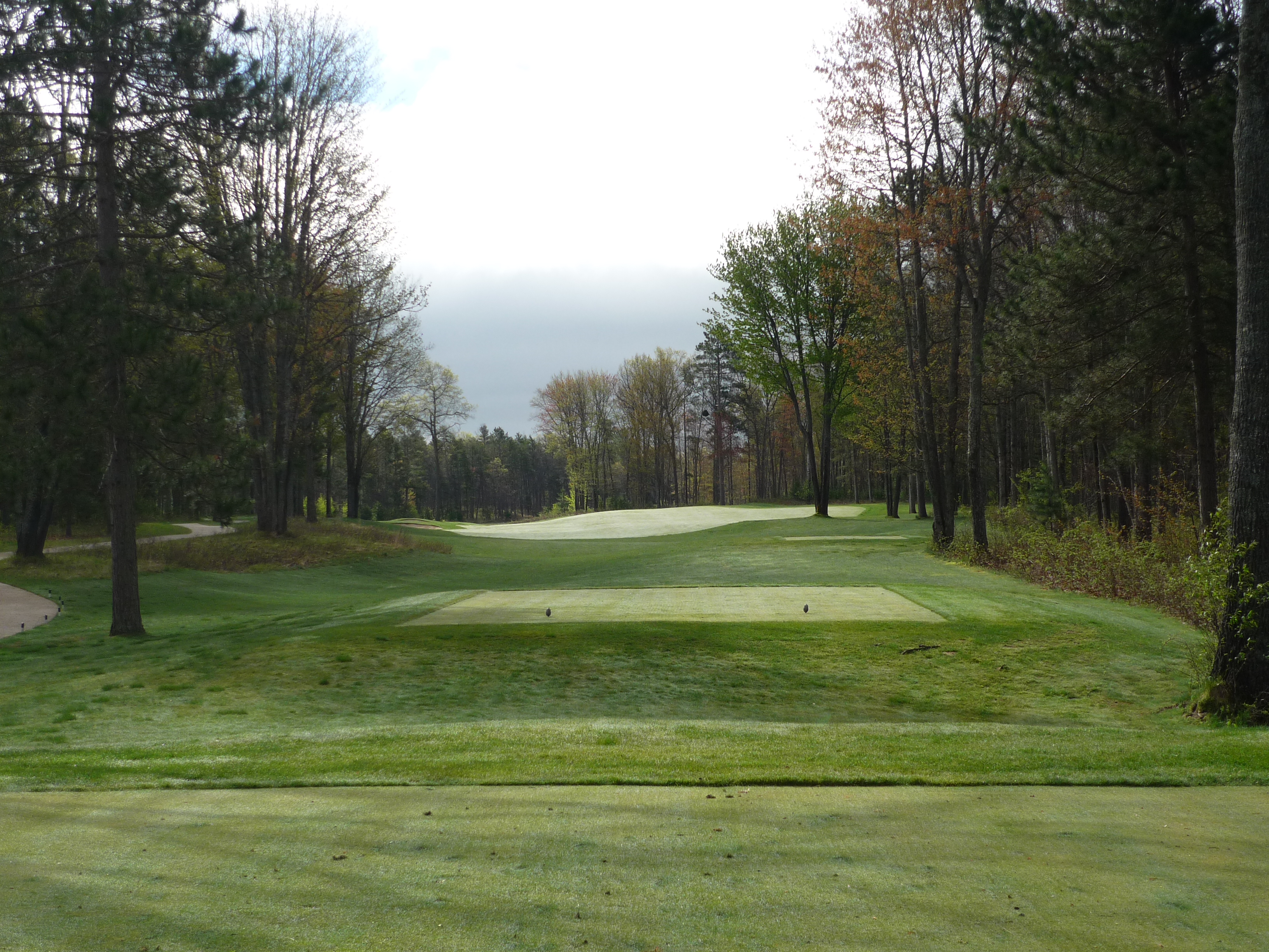 This hole bends slightly to the left. With a draw, you can wrap your drive around the trees and be in a great position.