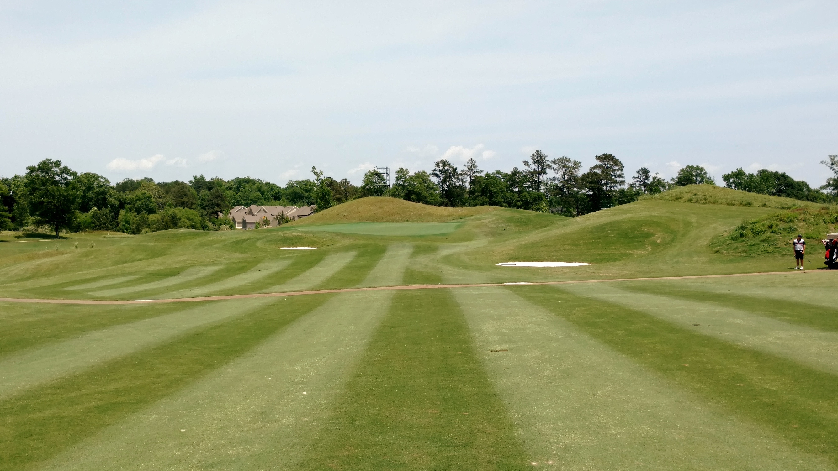 You can’t really see it, but a pot bunker sits in the middle of this fairway. Avoid that and it will be smooth sailing. Deep bunkers also guard the green for your approach.