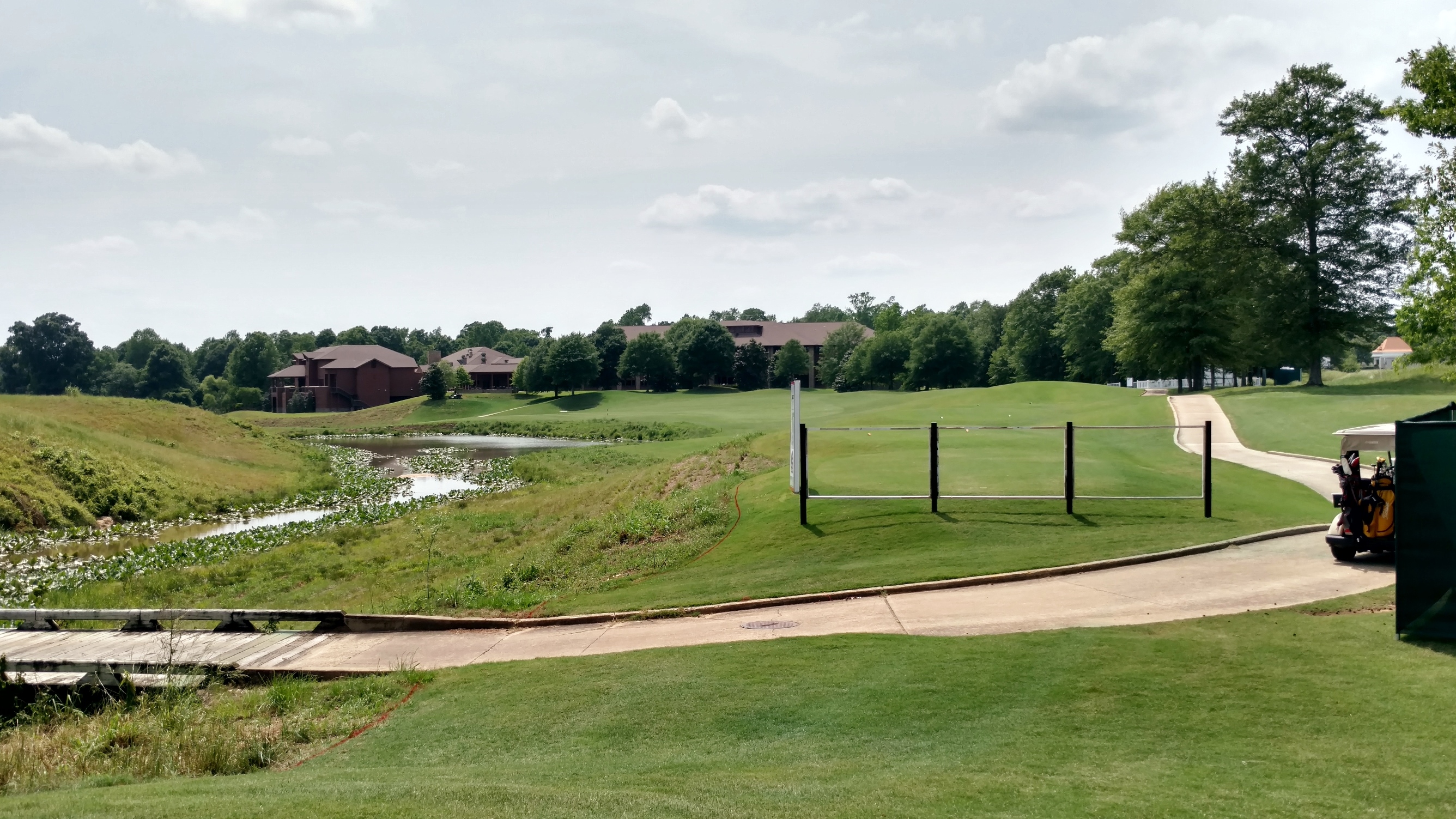 An extra club can make sense when playing to this elevated green. The putting surface has a ridge through the middle of it.