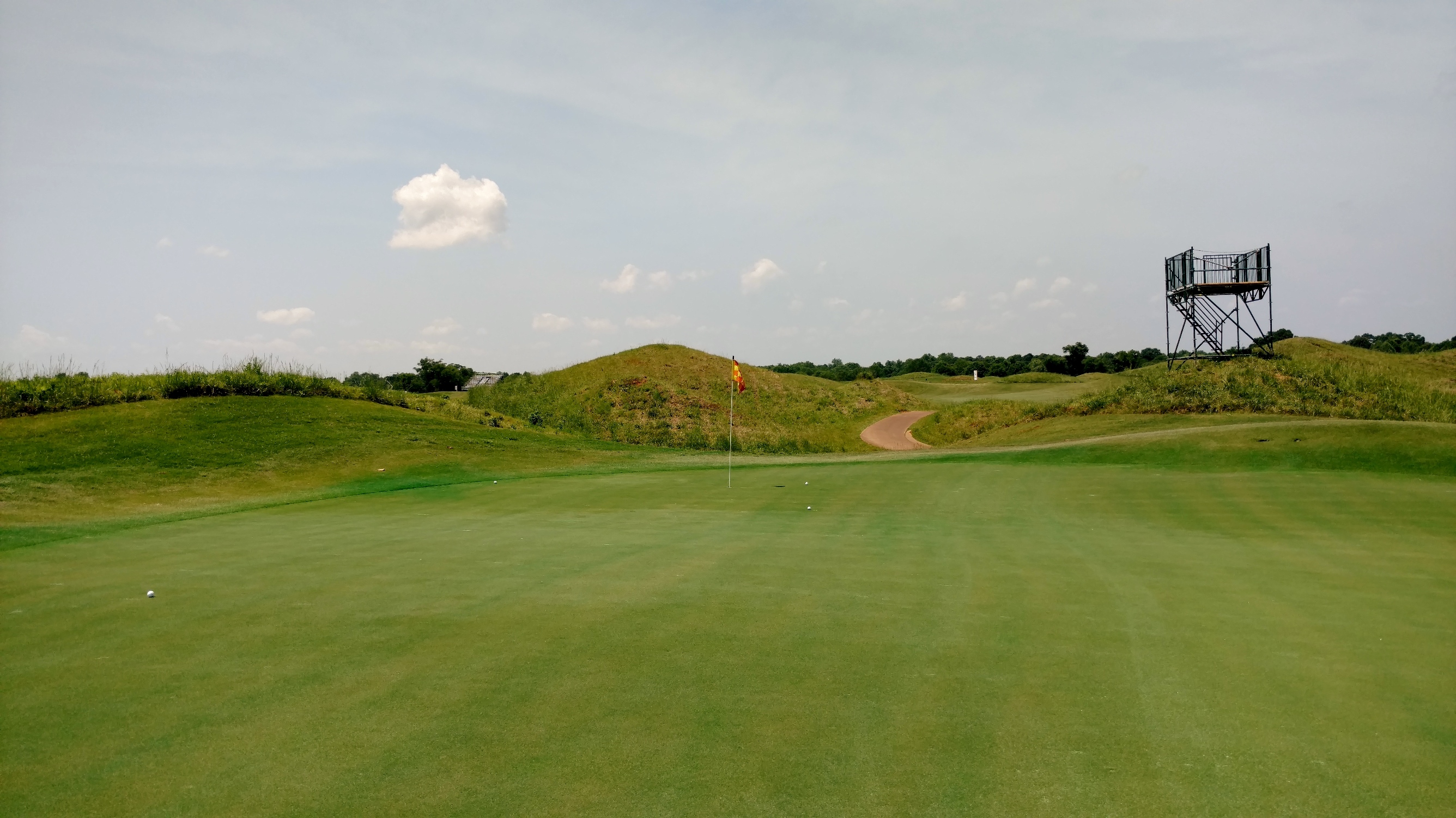 The straightaway finishing hole is no easy hole. Your approach will be slightly uphill to a two-tiered green.