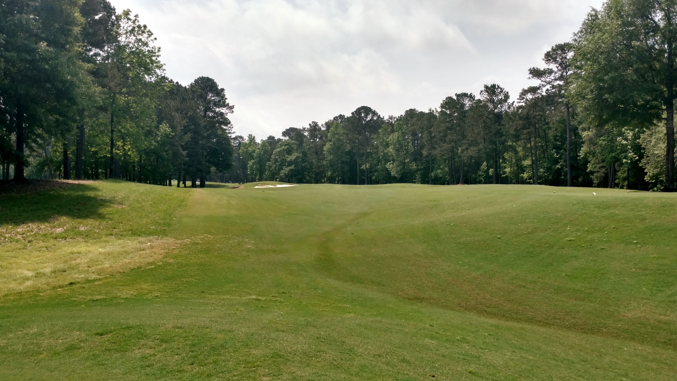 The tee ball here needs to find the fairway or the approach is much more difficult. The green is elevated and has a bunker in front. The bunker is actually quite a bit in front of the green so it shouldn’t be in play.