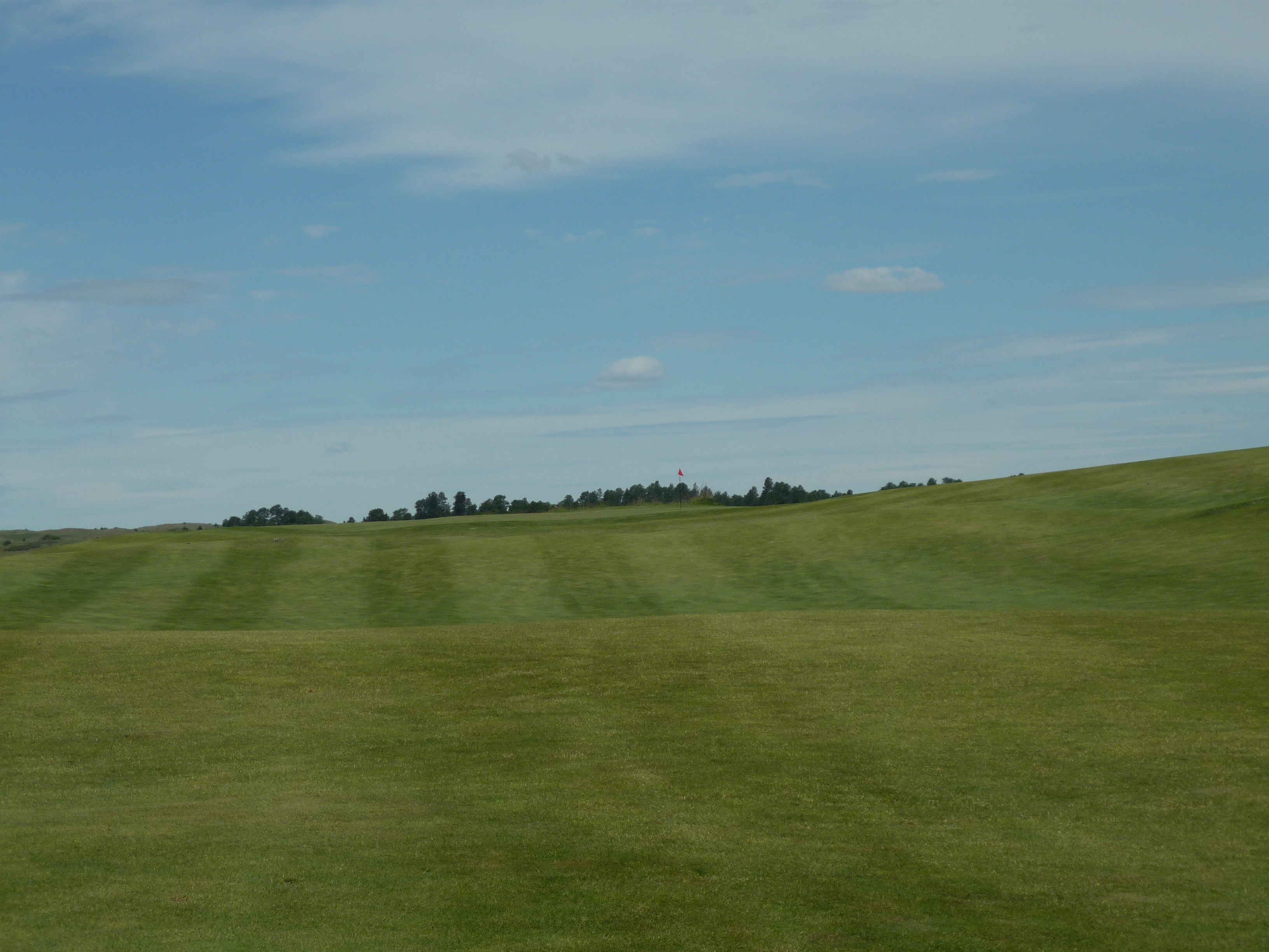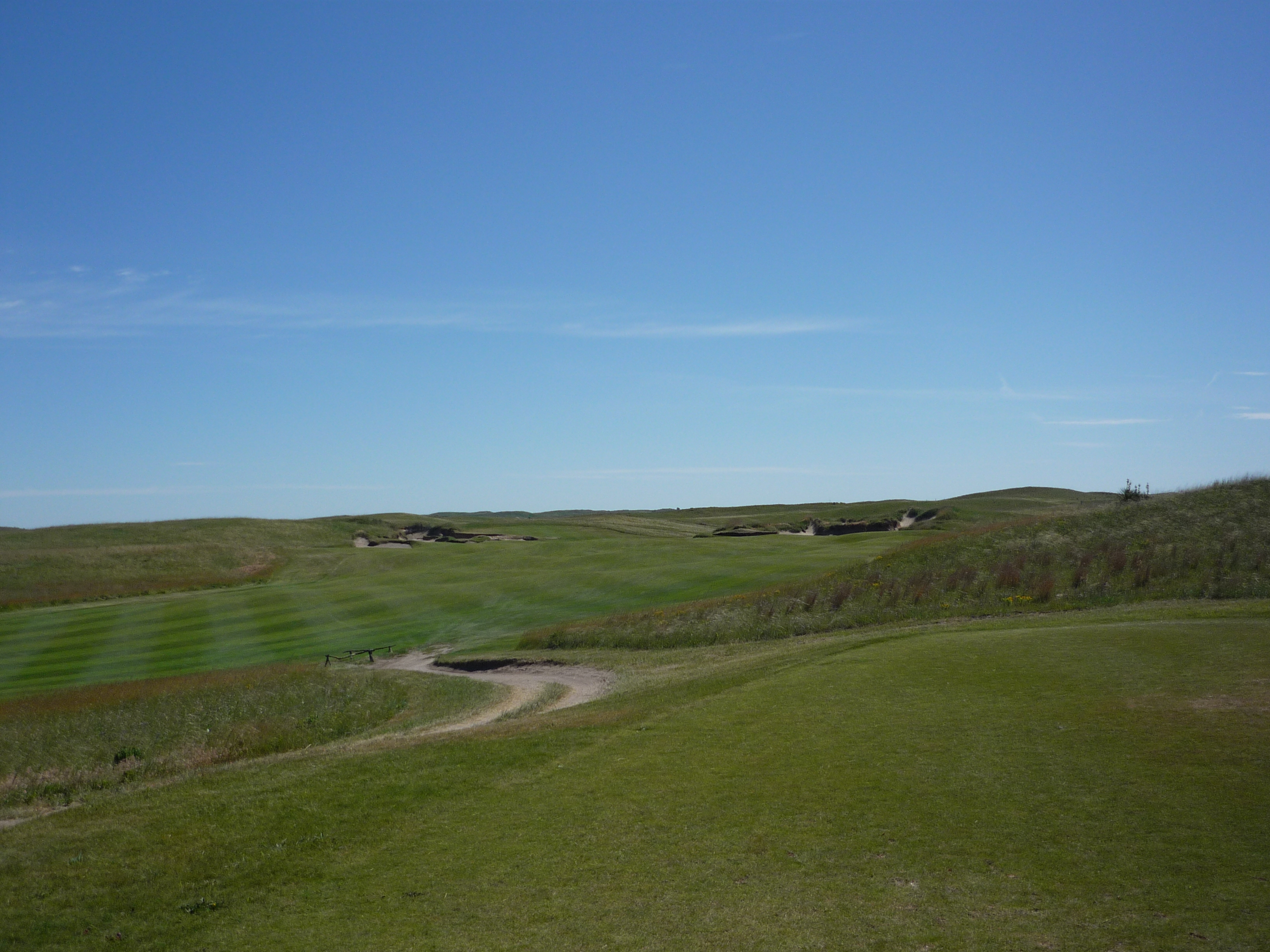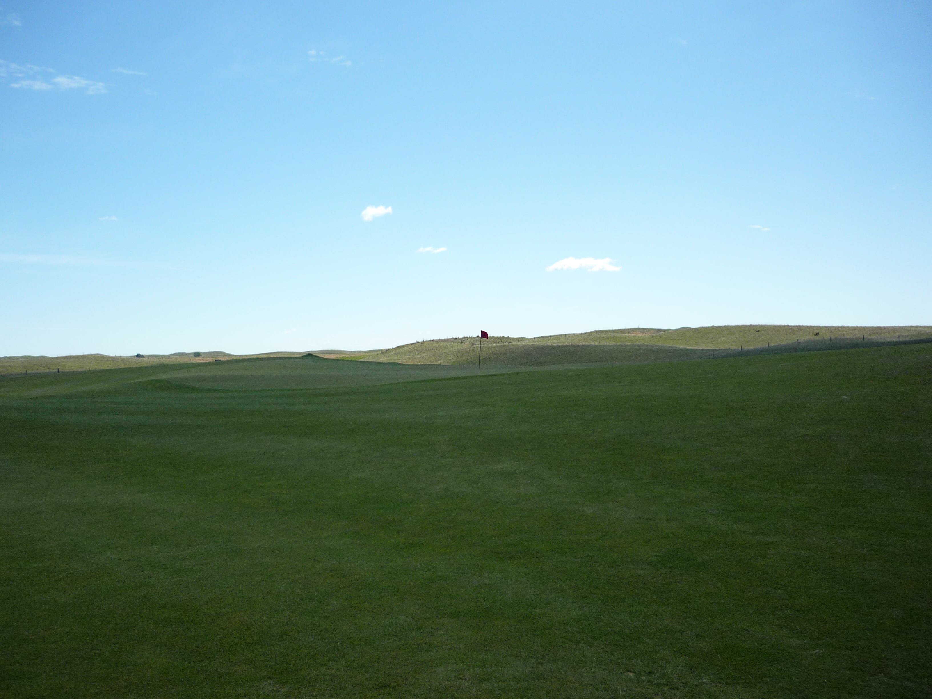 The fairway rolls along uphill to the green. I had a long shot due to the hole playing into the wind.