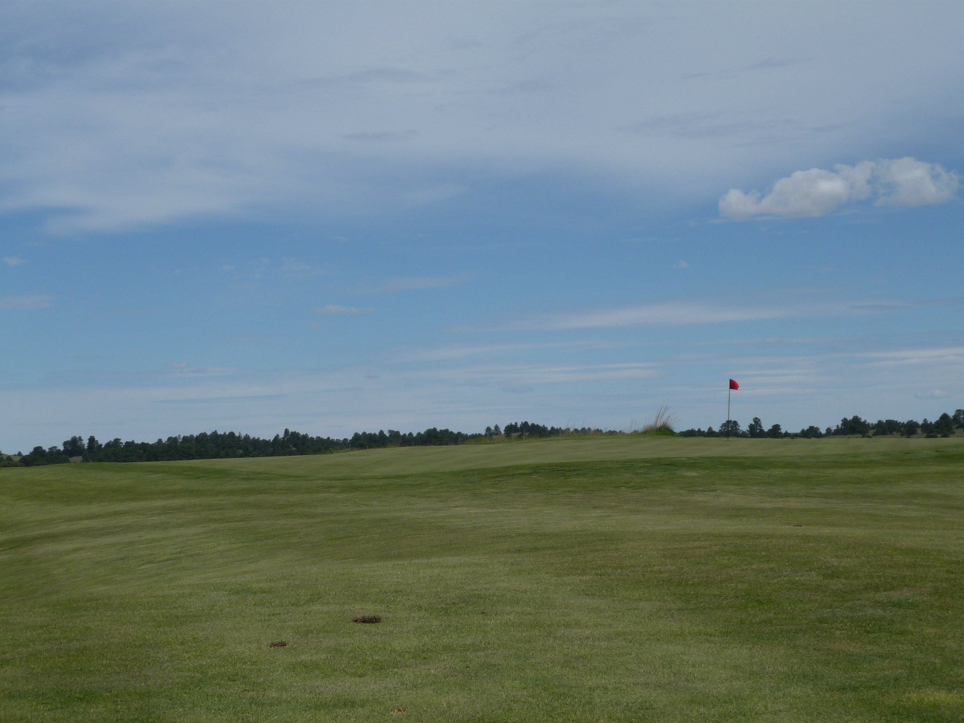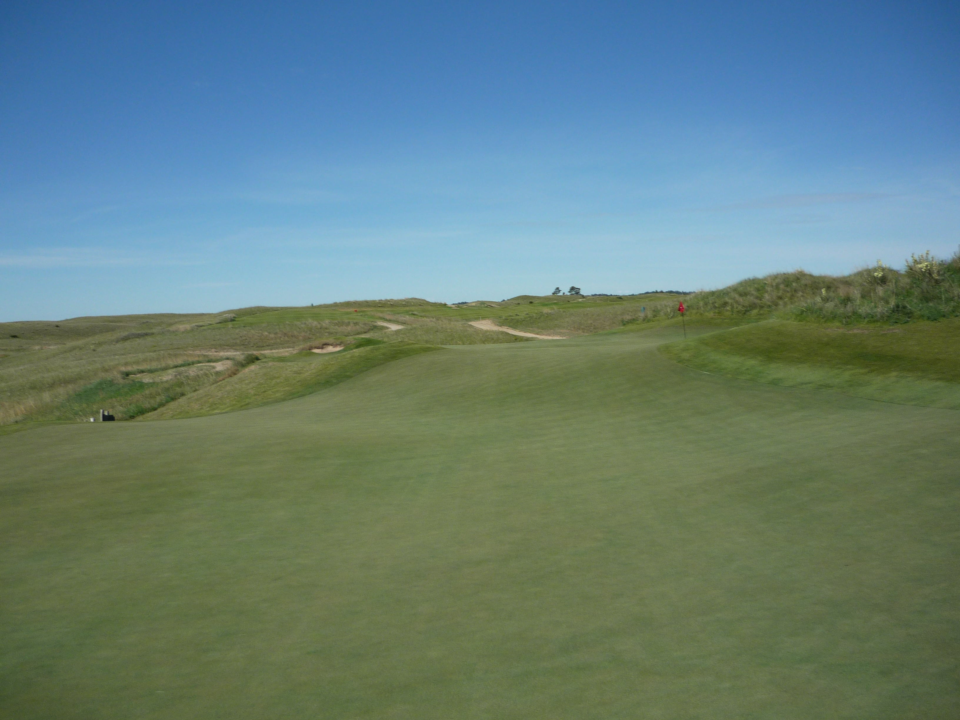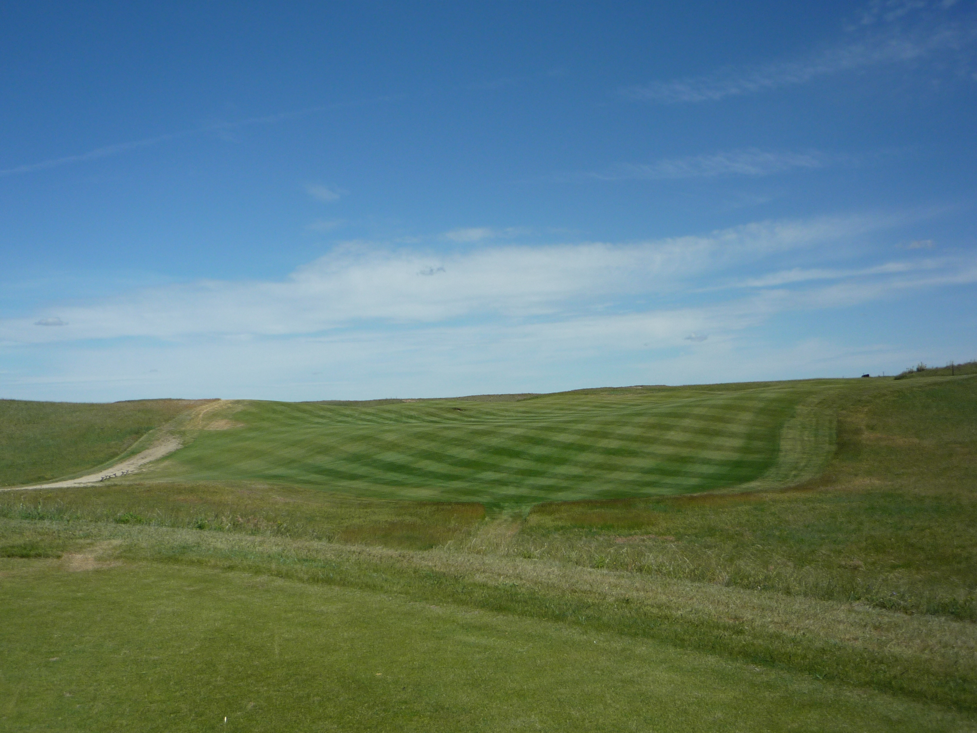 The fairway rolls along uphill to the green. I had a long shot due to the hole playing into the wind.