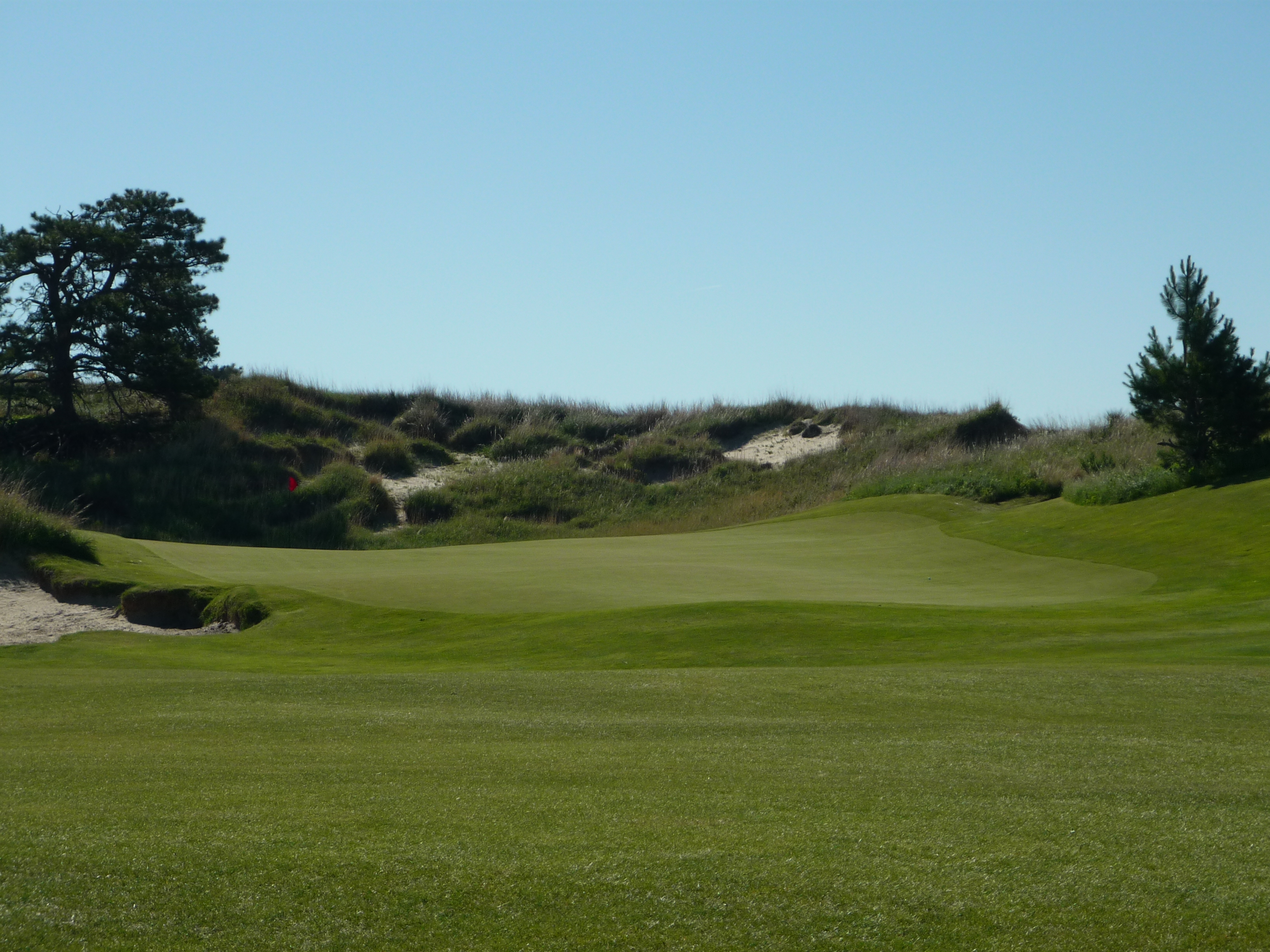 You can see below that the closer side of the green sits below the flag. The approach needs to be on the correct side to avoid three putts.
