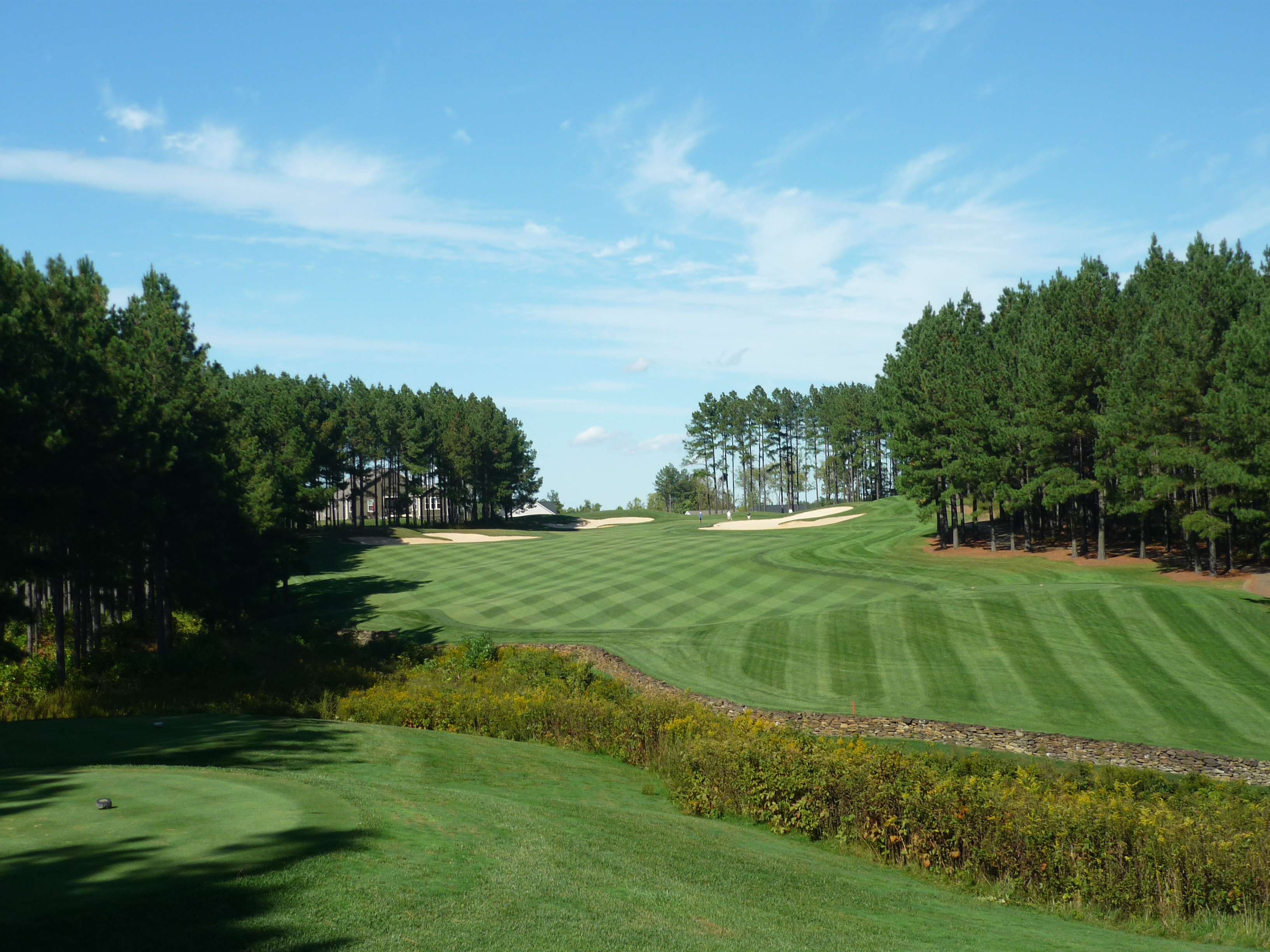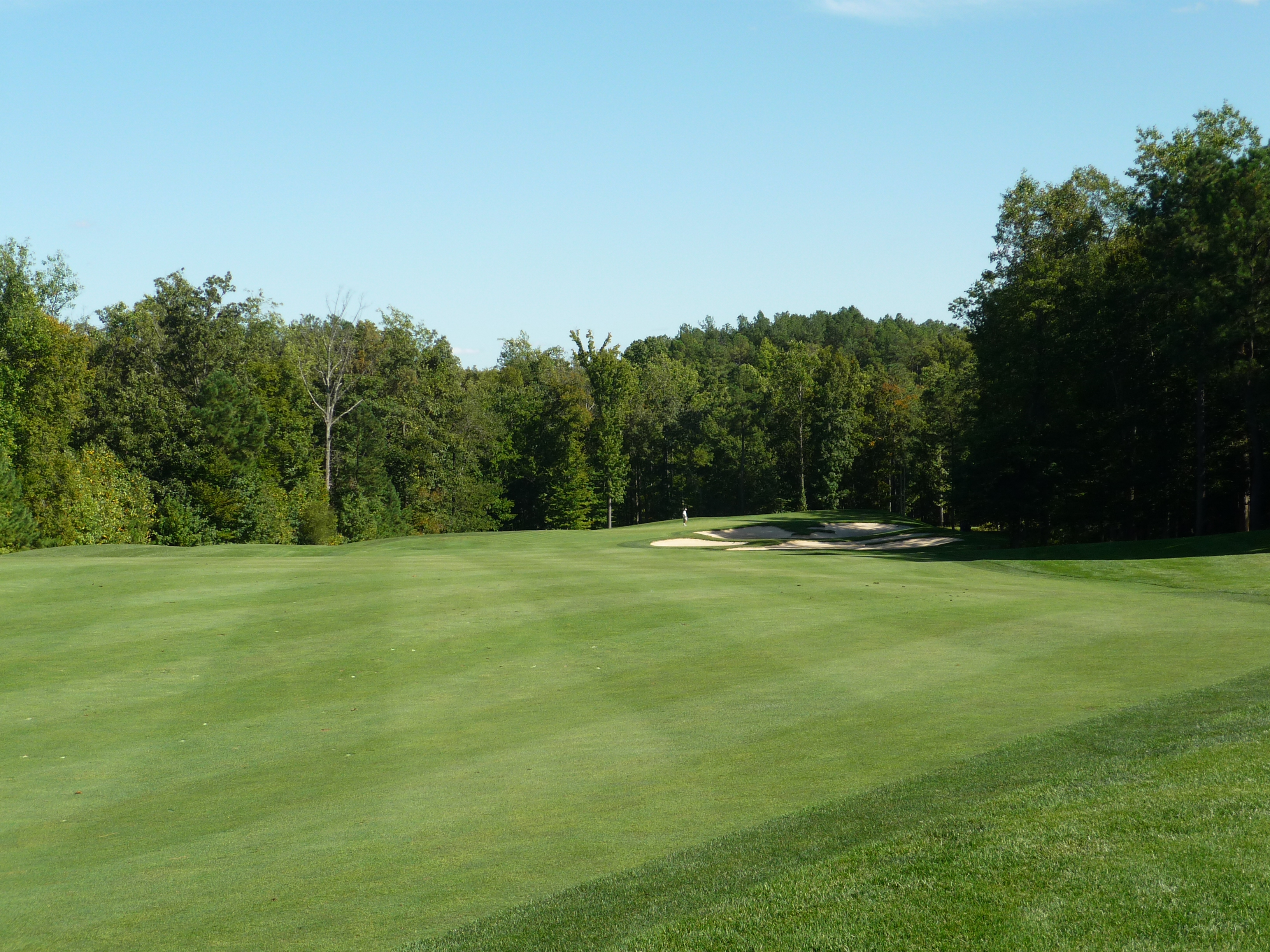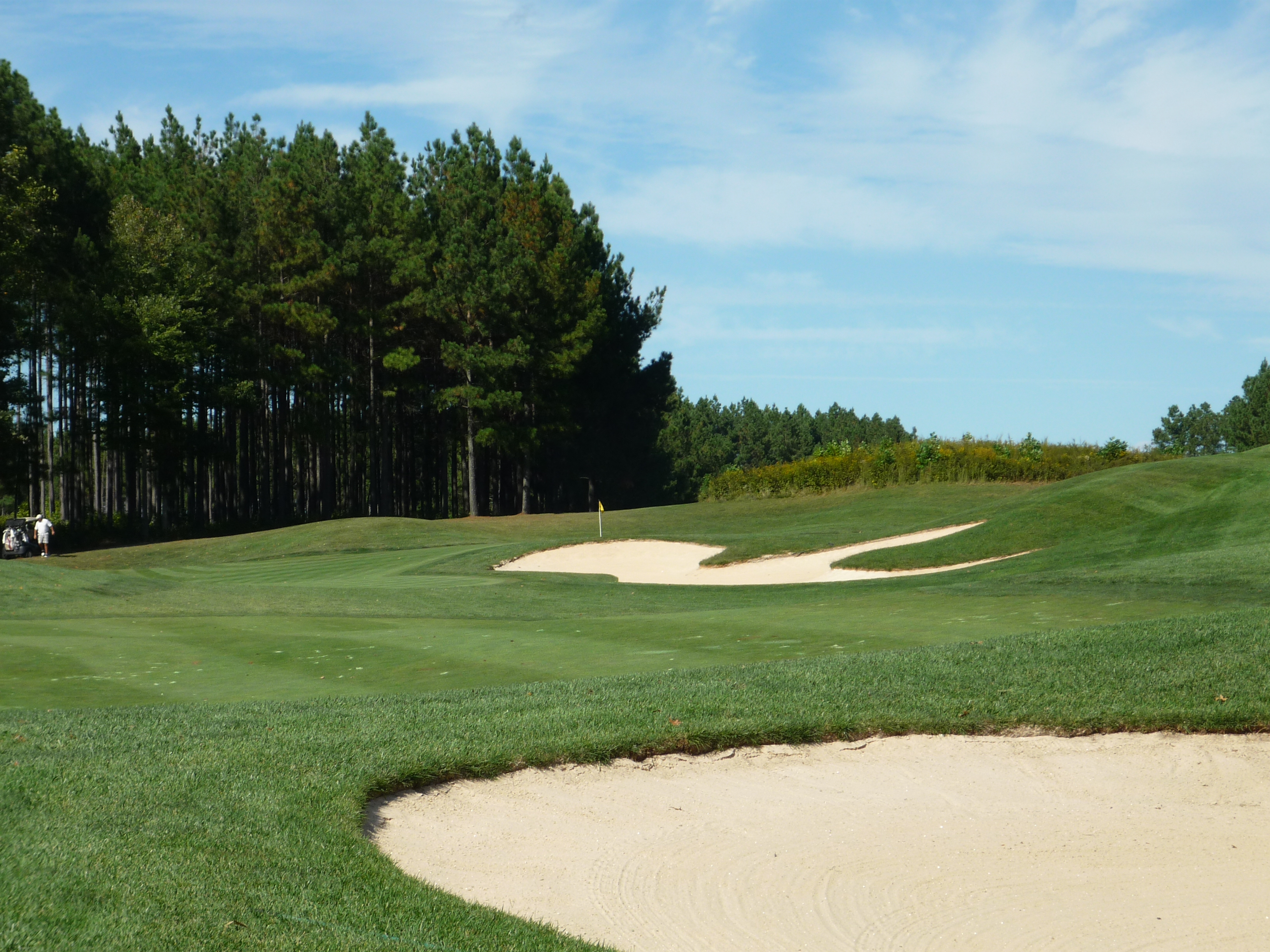 This is a difficult driving hole. Length and accuracy are required. Both bunkers are quite large, but I imagine the right one is a bit more playable.