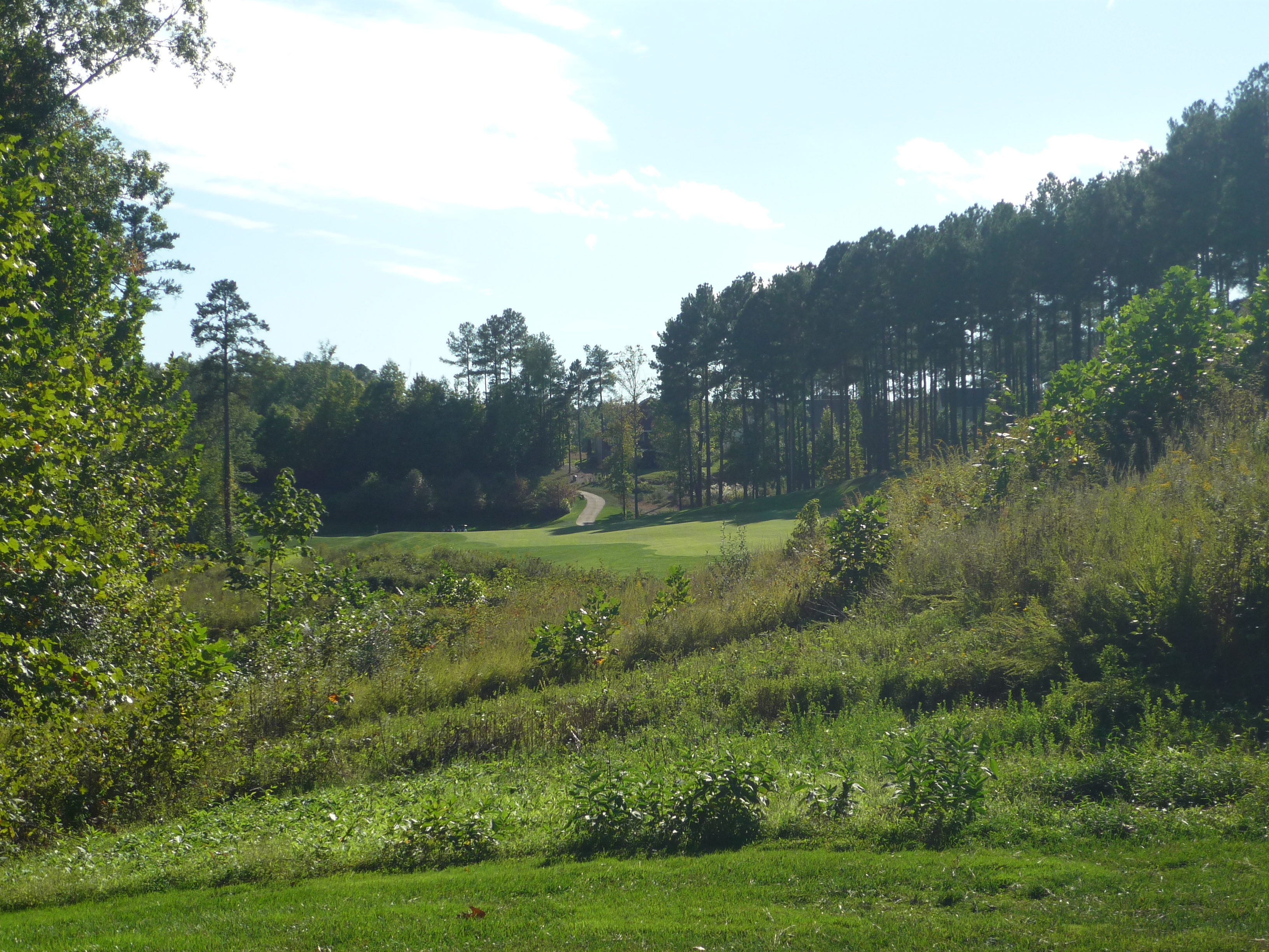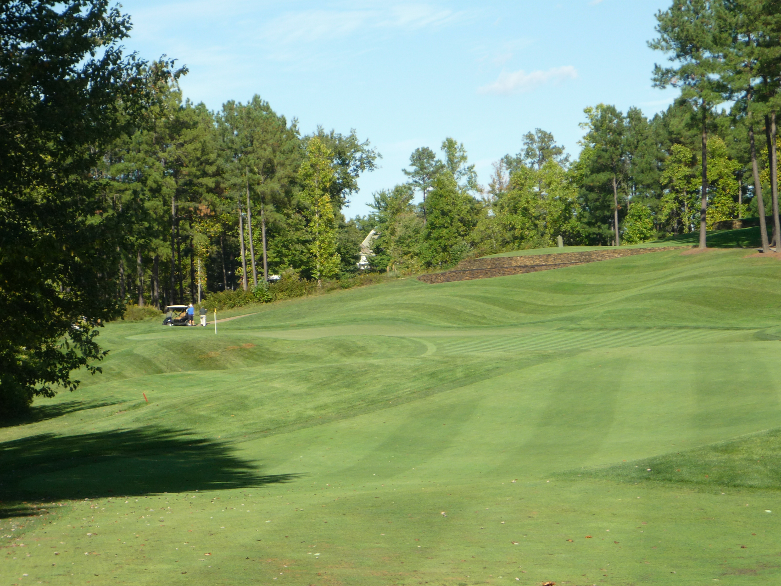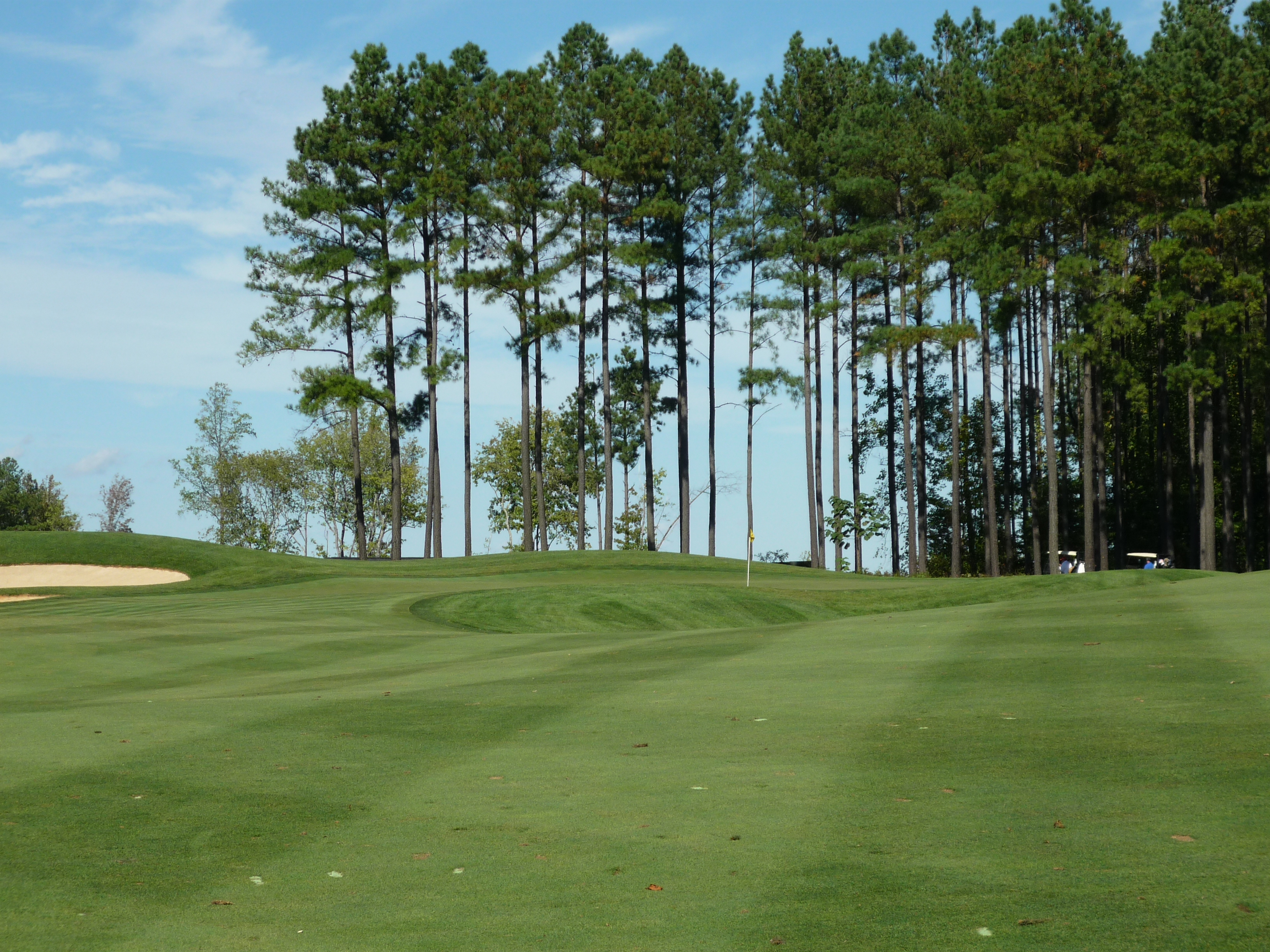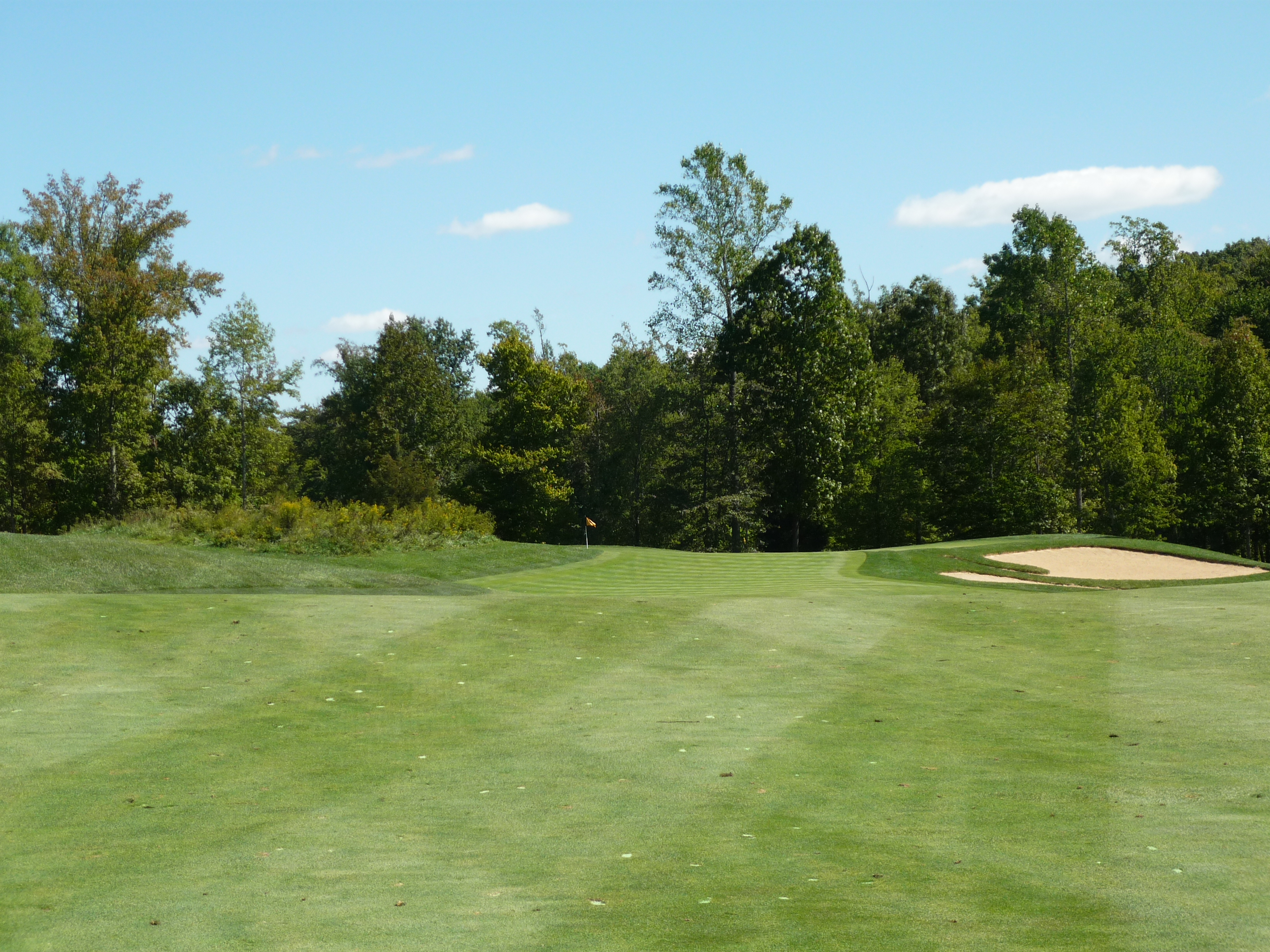 The approach shot is uphill as well, but beware the deep bunker fronting the green. You can barely see its outline in the rough. This can be a sucker pin if you come up short.