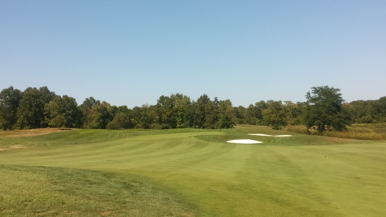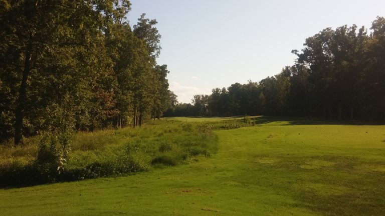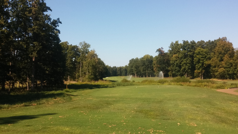 The course helps you out on this long hole by expanding the fairway. There is rough left, but no real trouble if you miss there. Two fairway bunkers wait on the right.