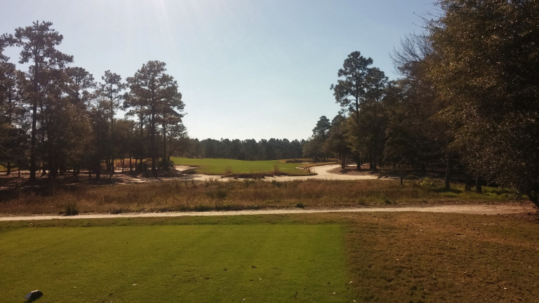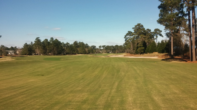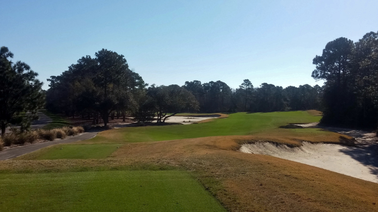This is one of the most demanding tee shots on the course. The right center of the fairway is the goal.