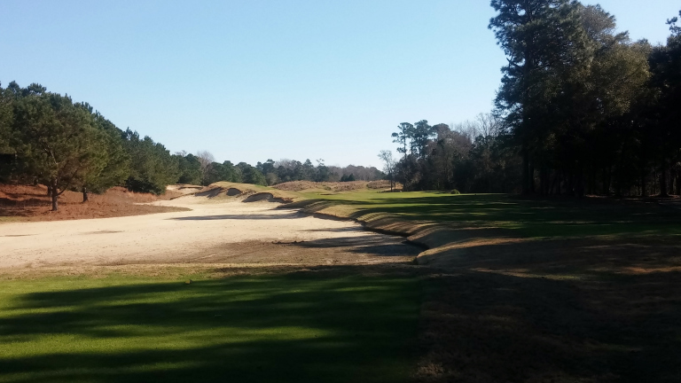 The fairway is wider than it looks once you get past the first part of the bunker on the left.
