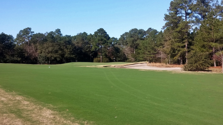 Approach shots need to carry onto the green or risk rolling back into the fairway. The green is huge.