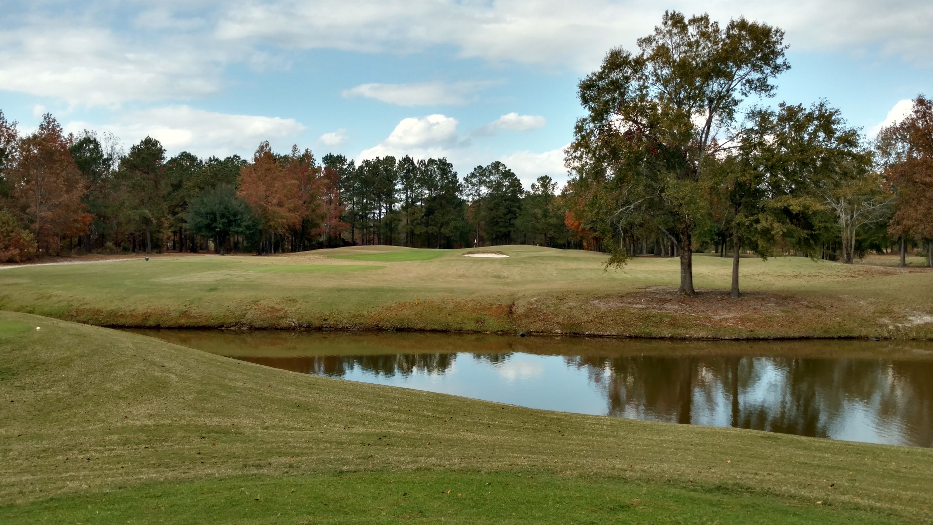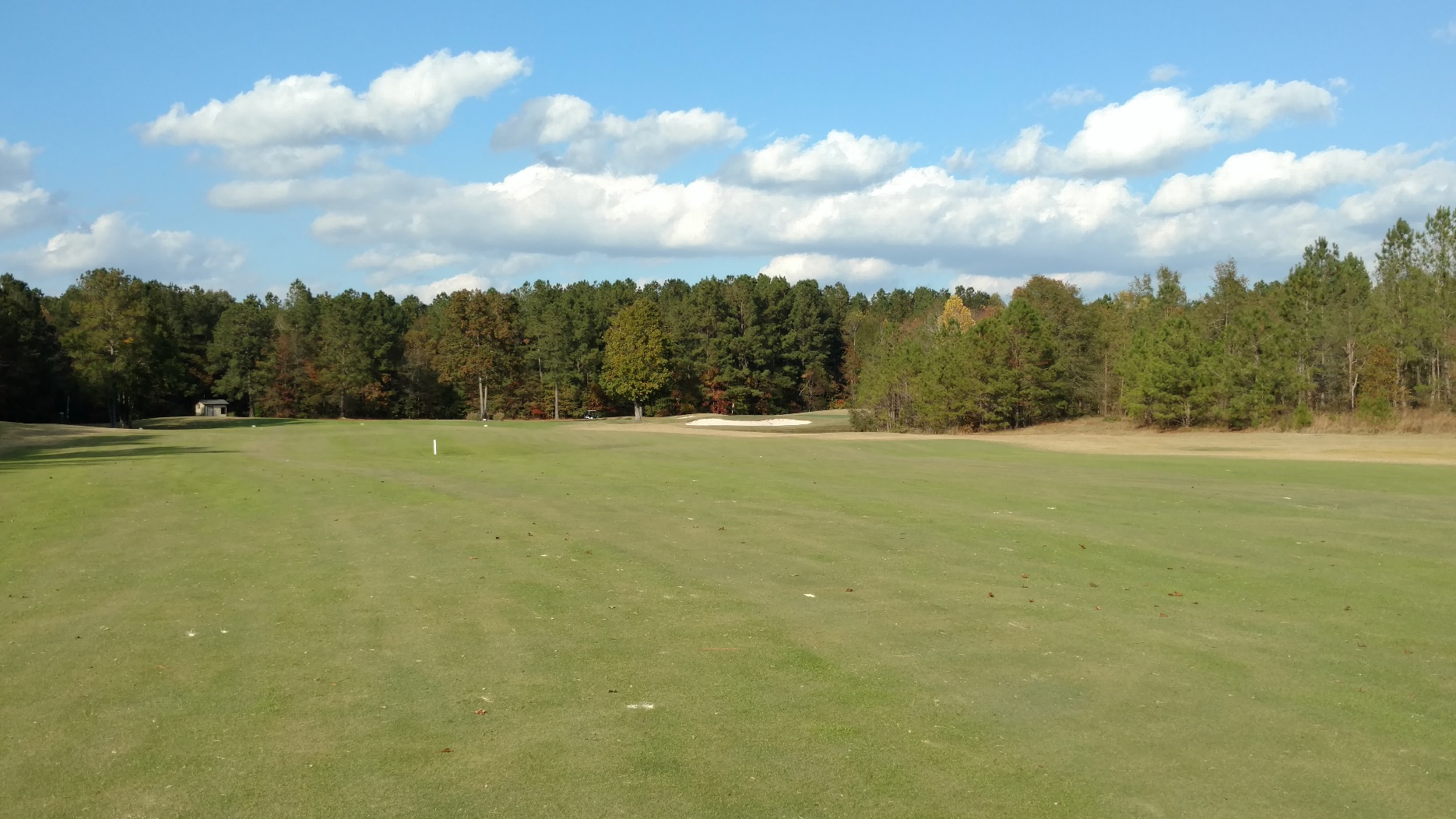There is water, as you can see, but it really isn’t in play. Other than that the hole is straight with a bit of sand. Not much to it.