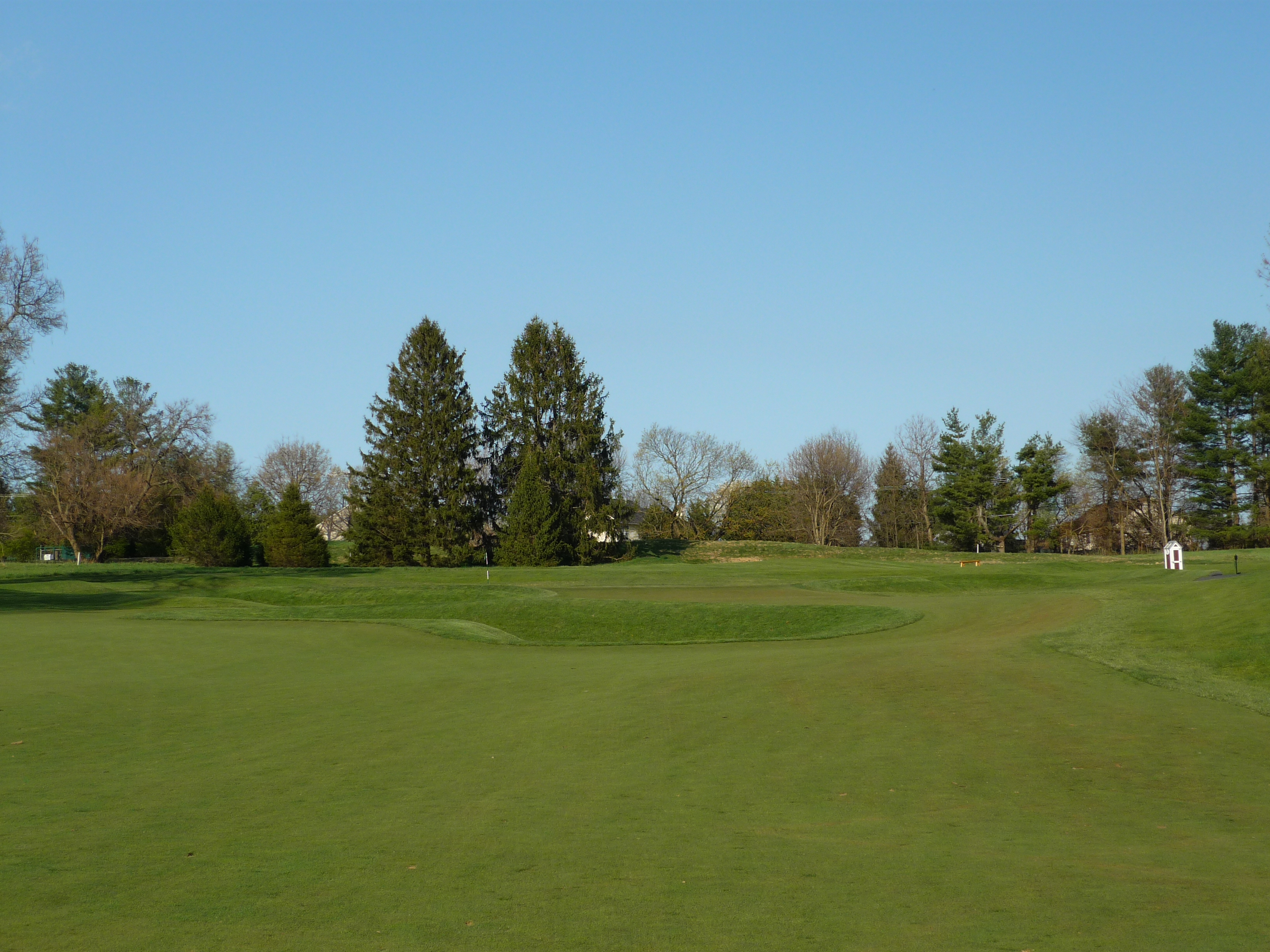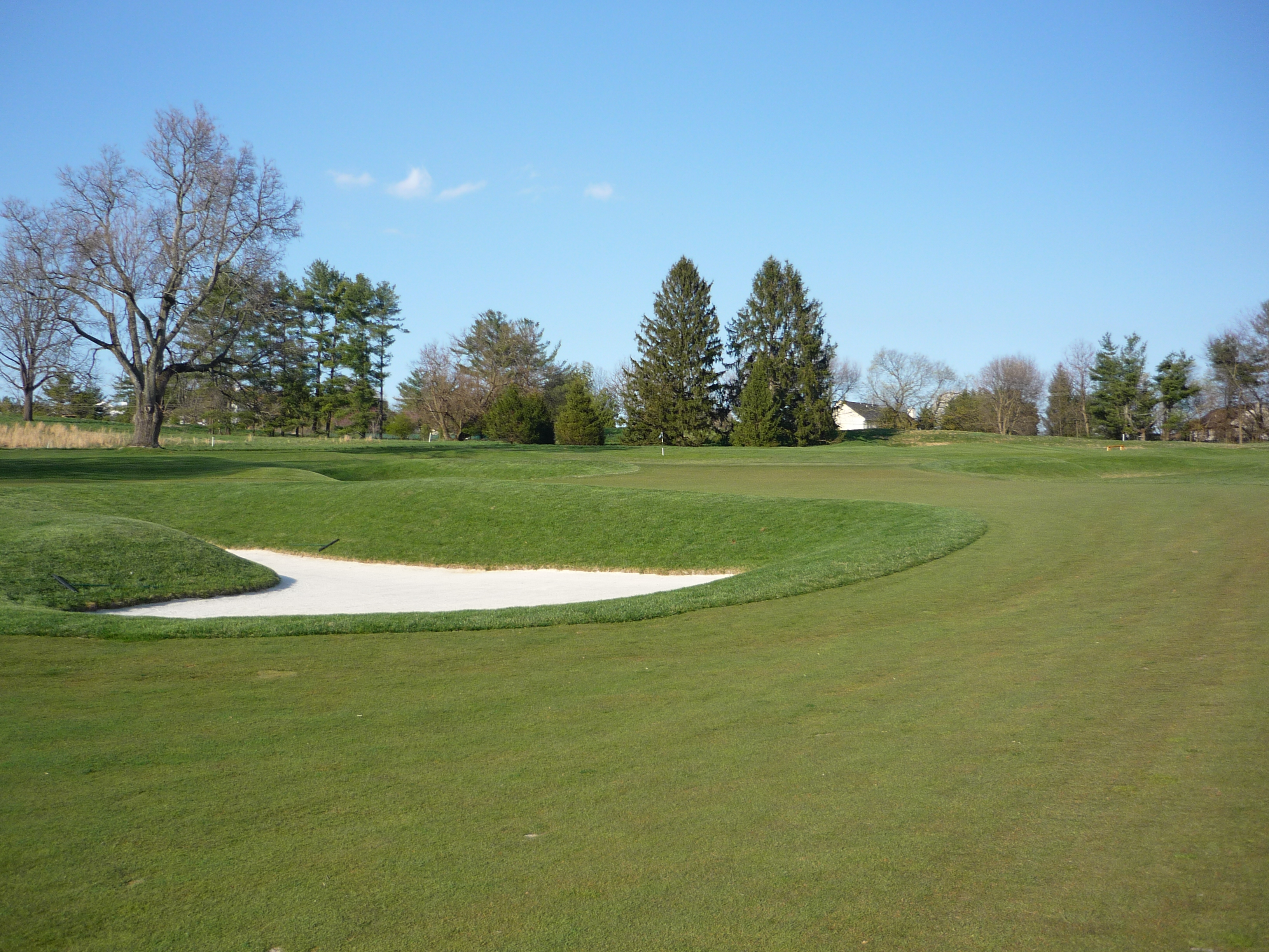 This approach is quite picturesque. The two interestingly shaped bunkers guard each side of the green.