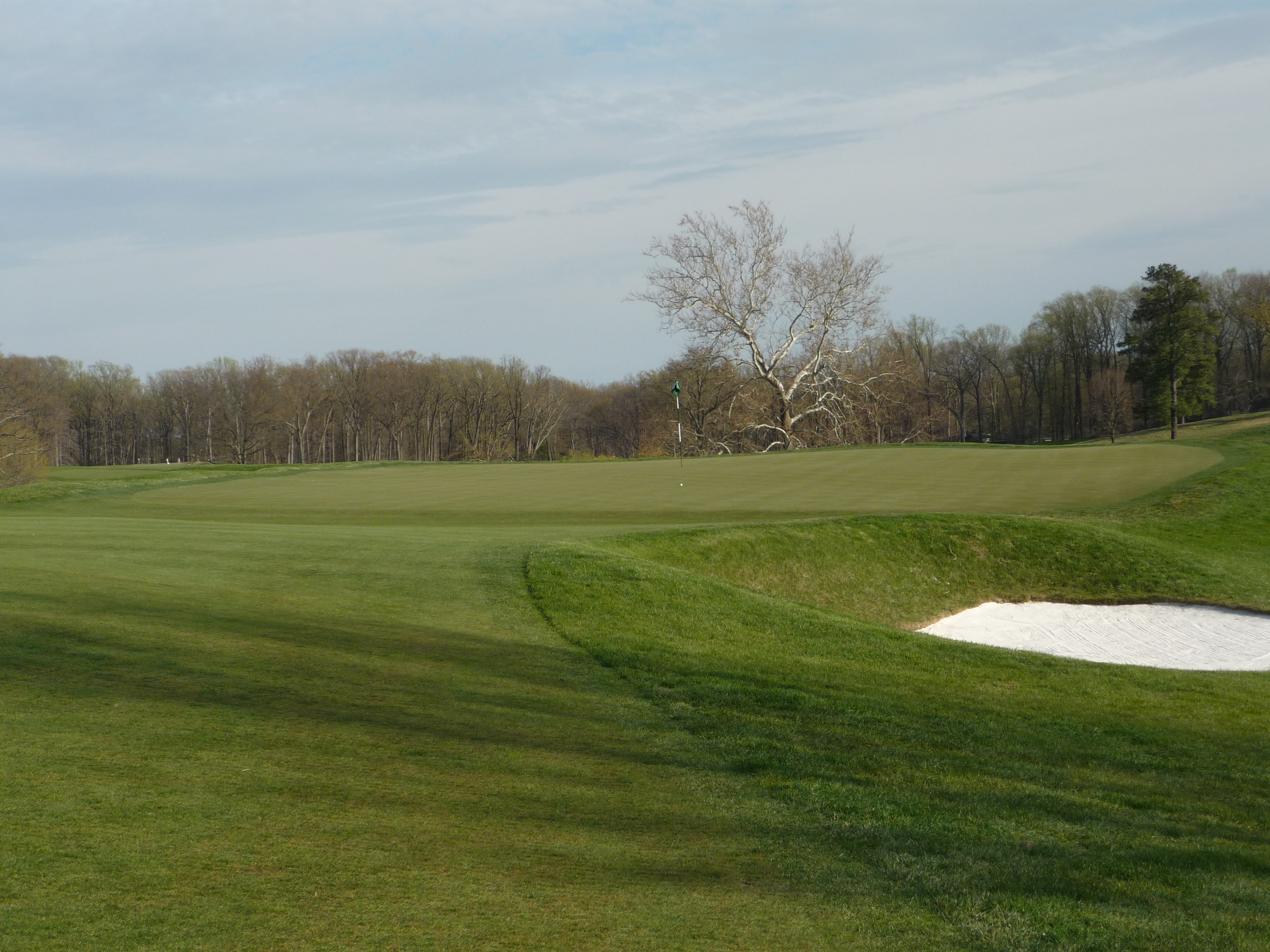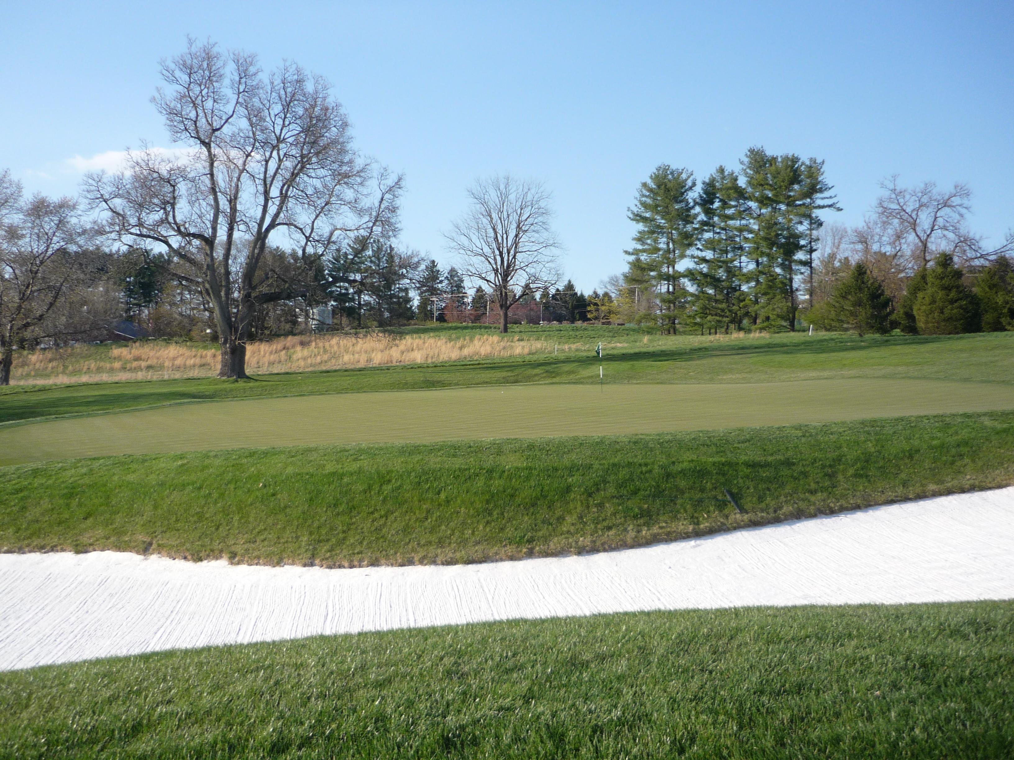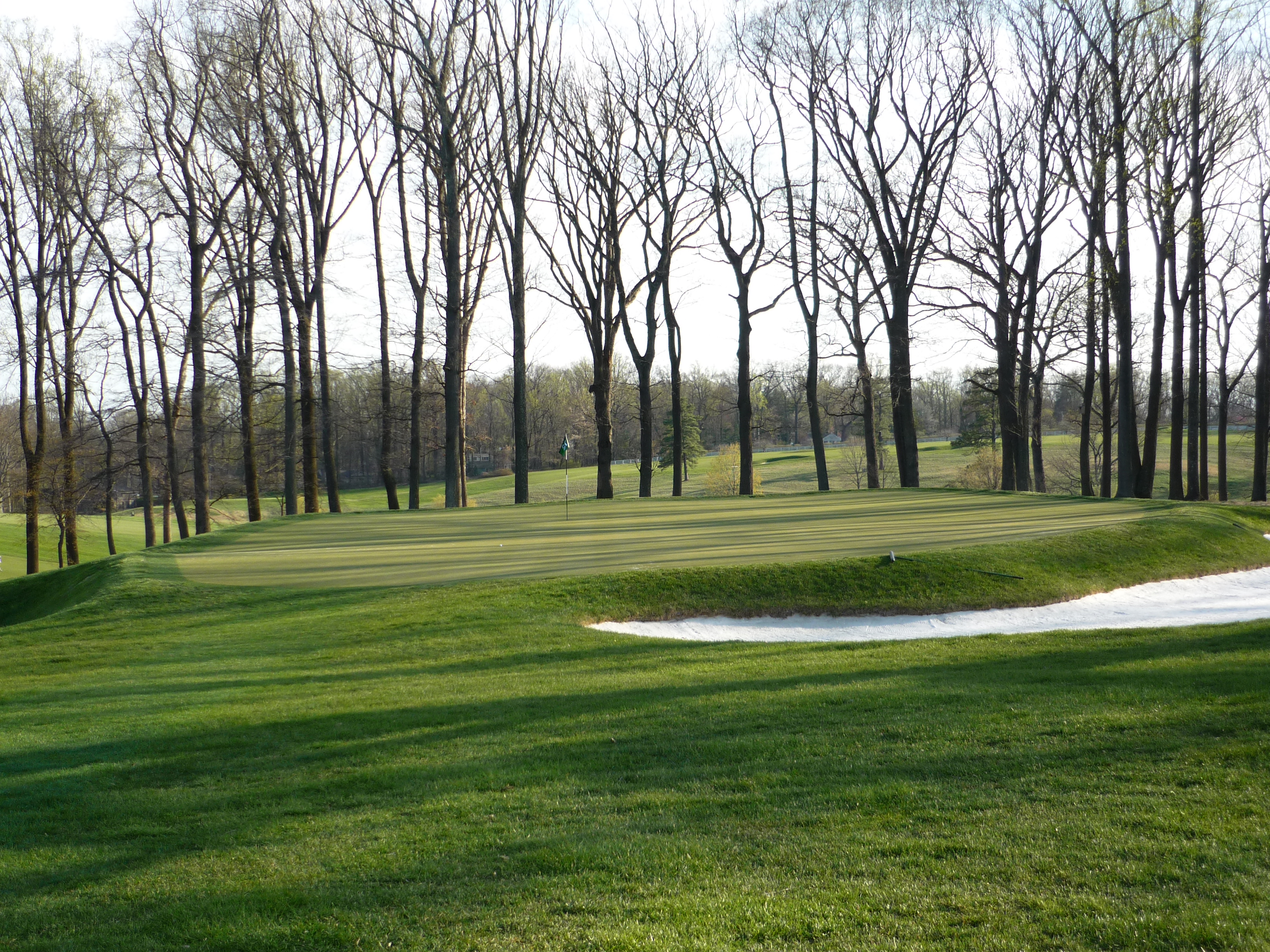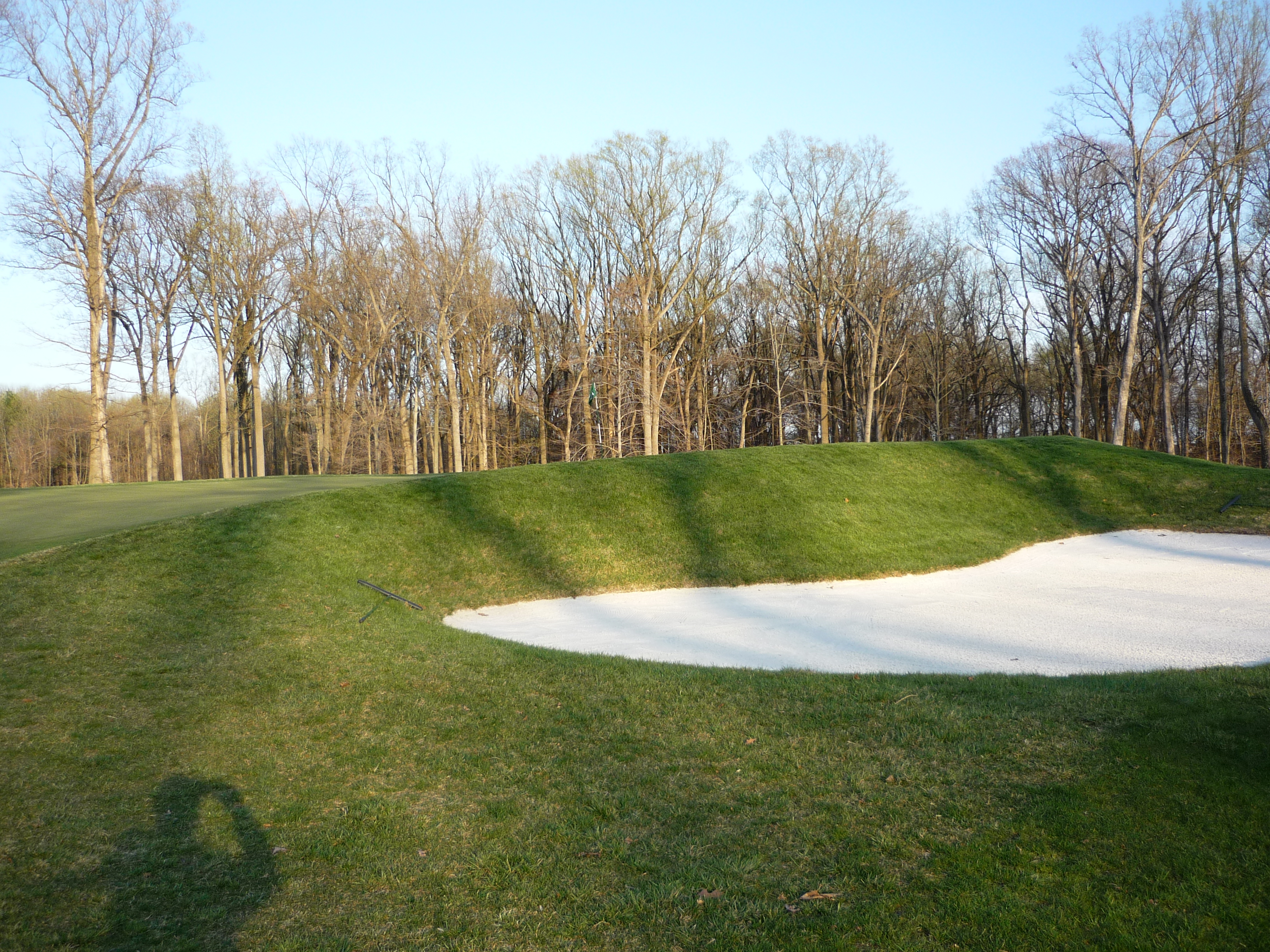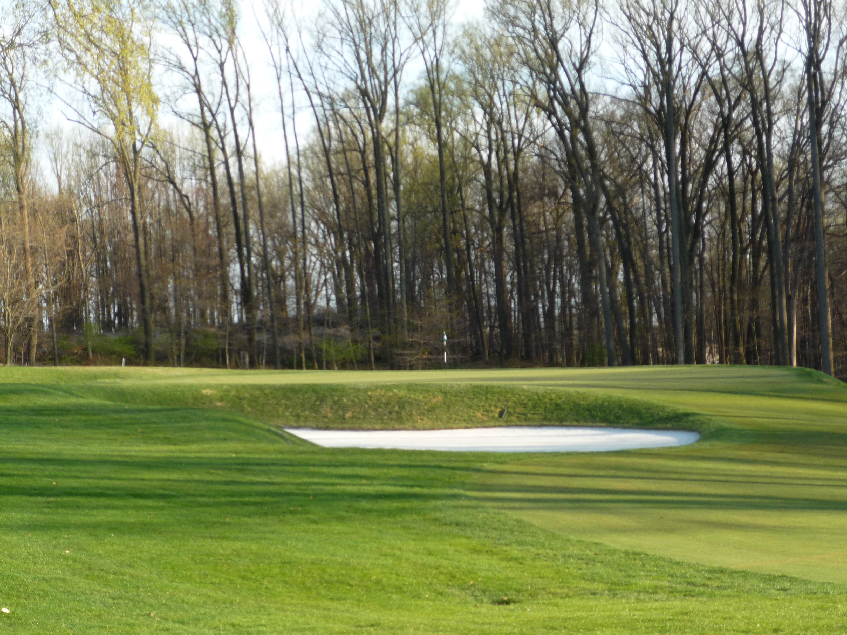 The green is guarded by a deep bunker on the left. Shots that go long will be in trouble. As you can see the green seems to fall off on the backside.