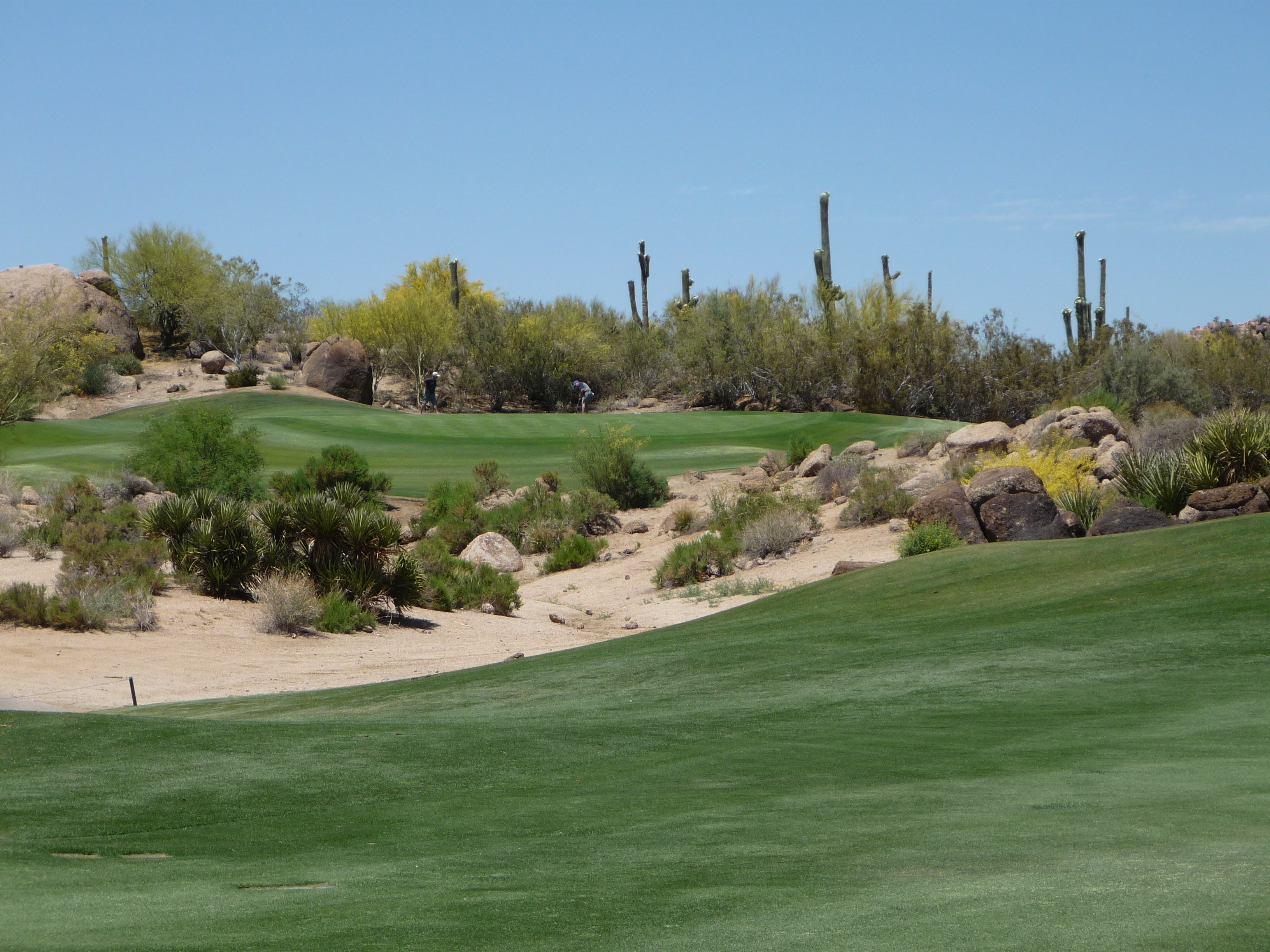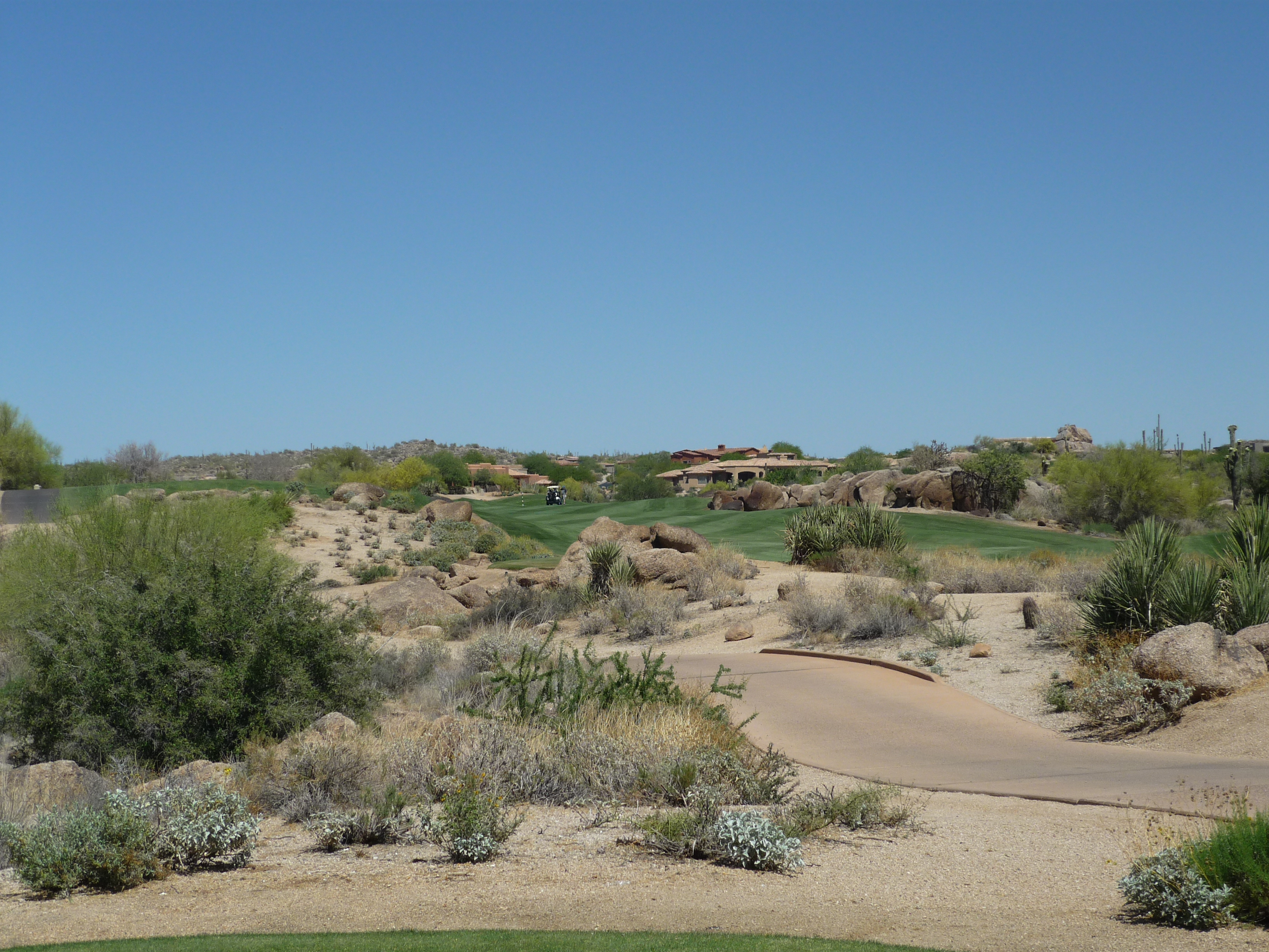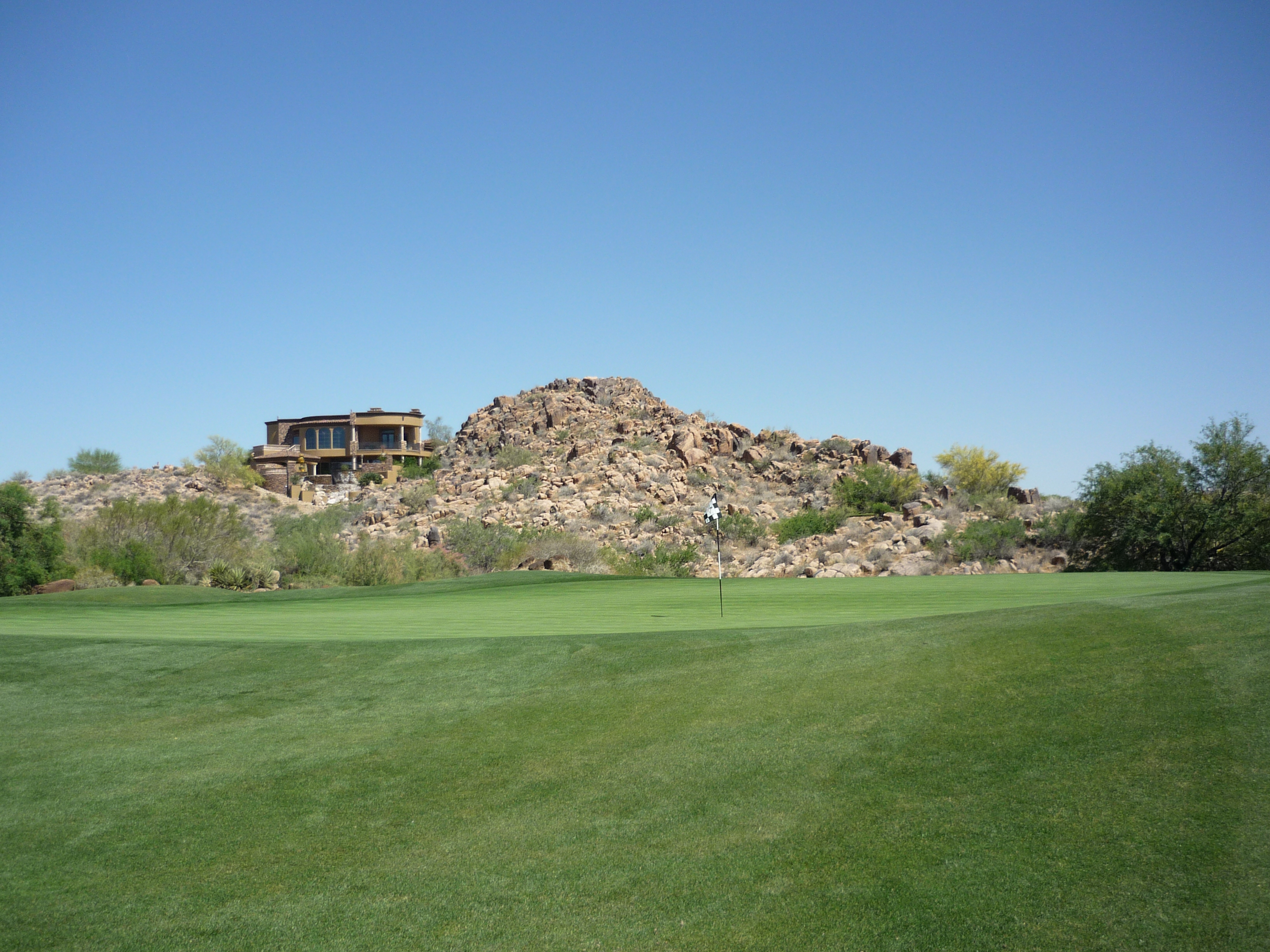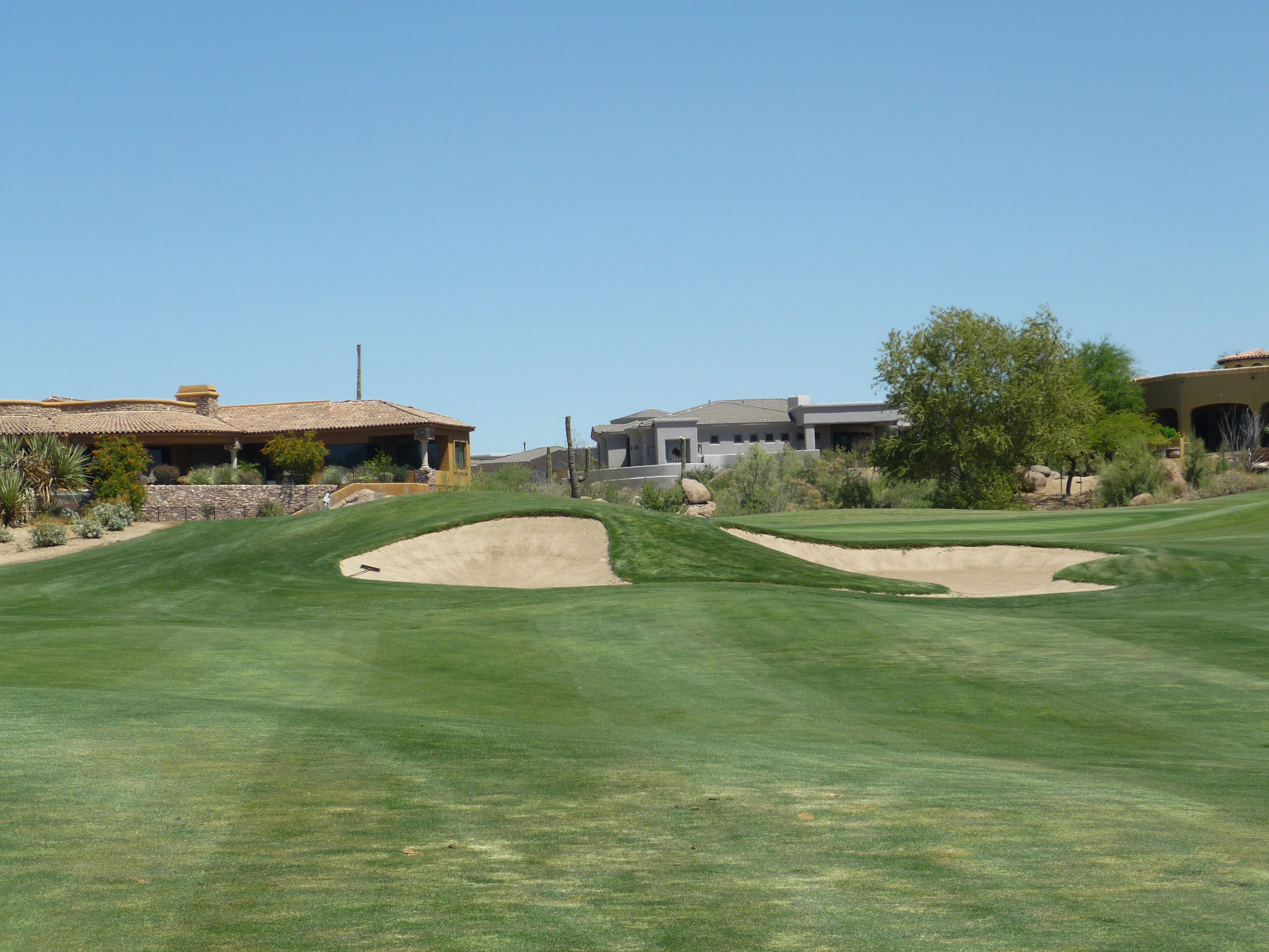 As you turn the corner the desert runs across the fairway and makes you think on a layup. Once past that area there isn’t much trouble around the green.