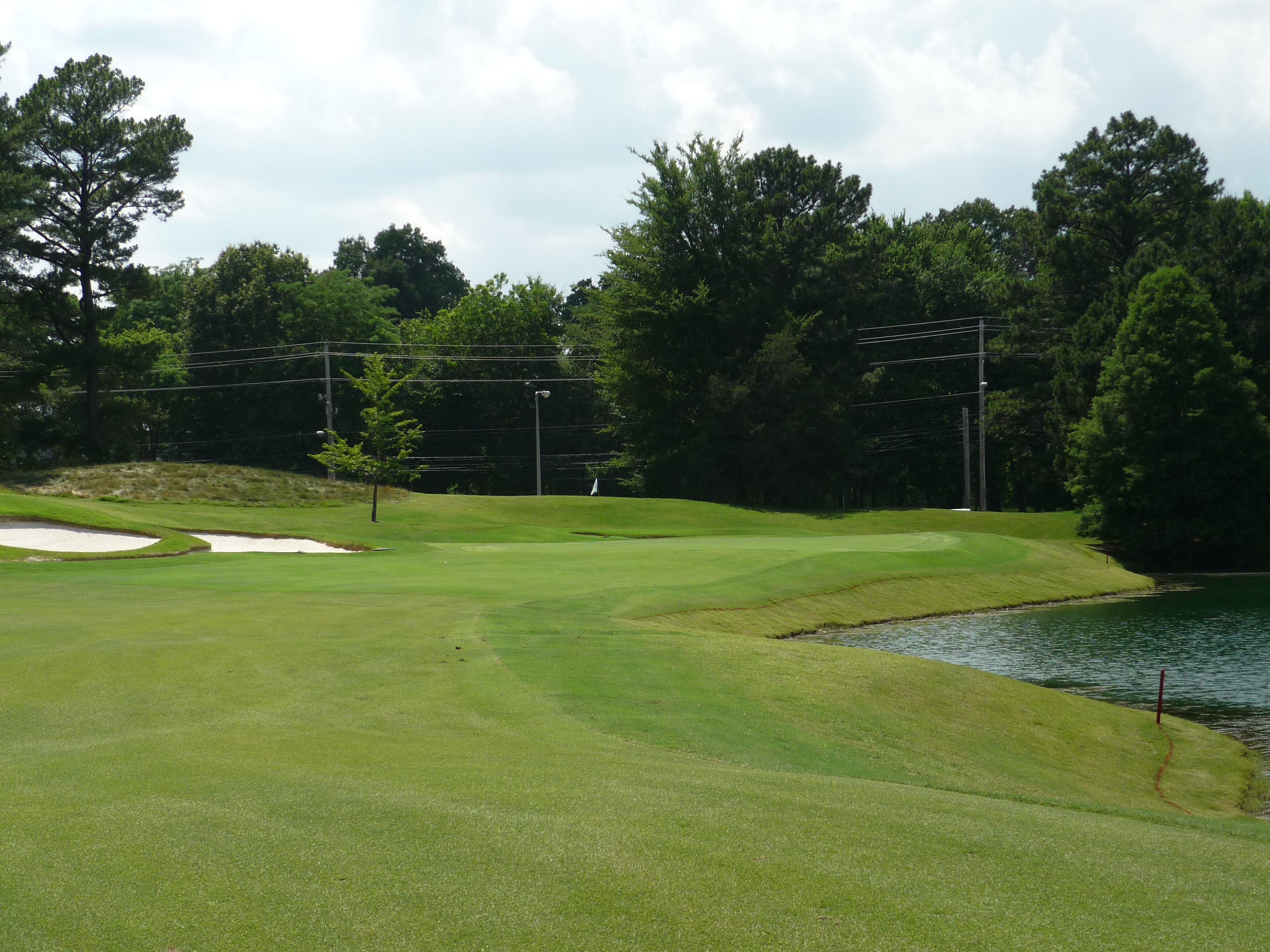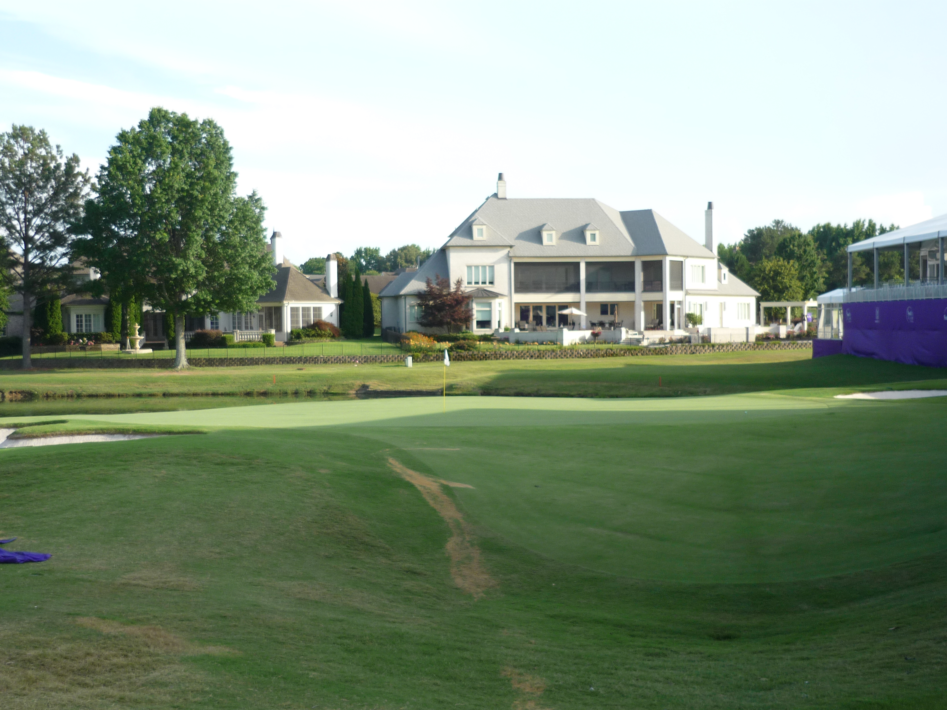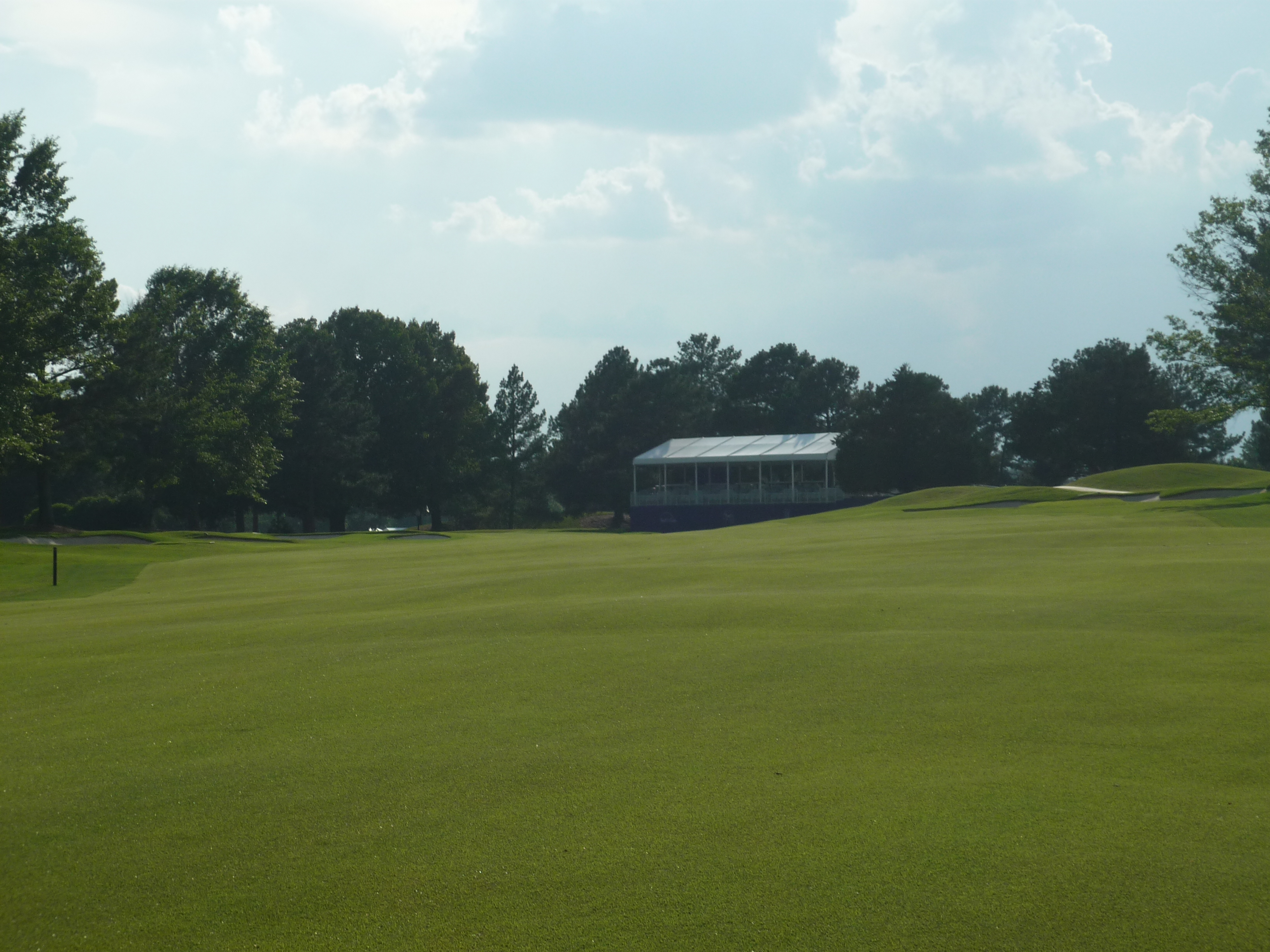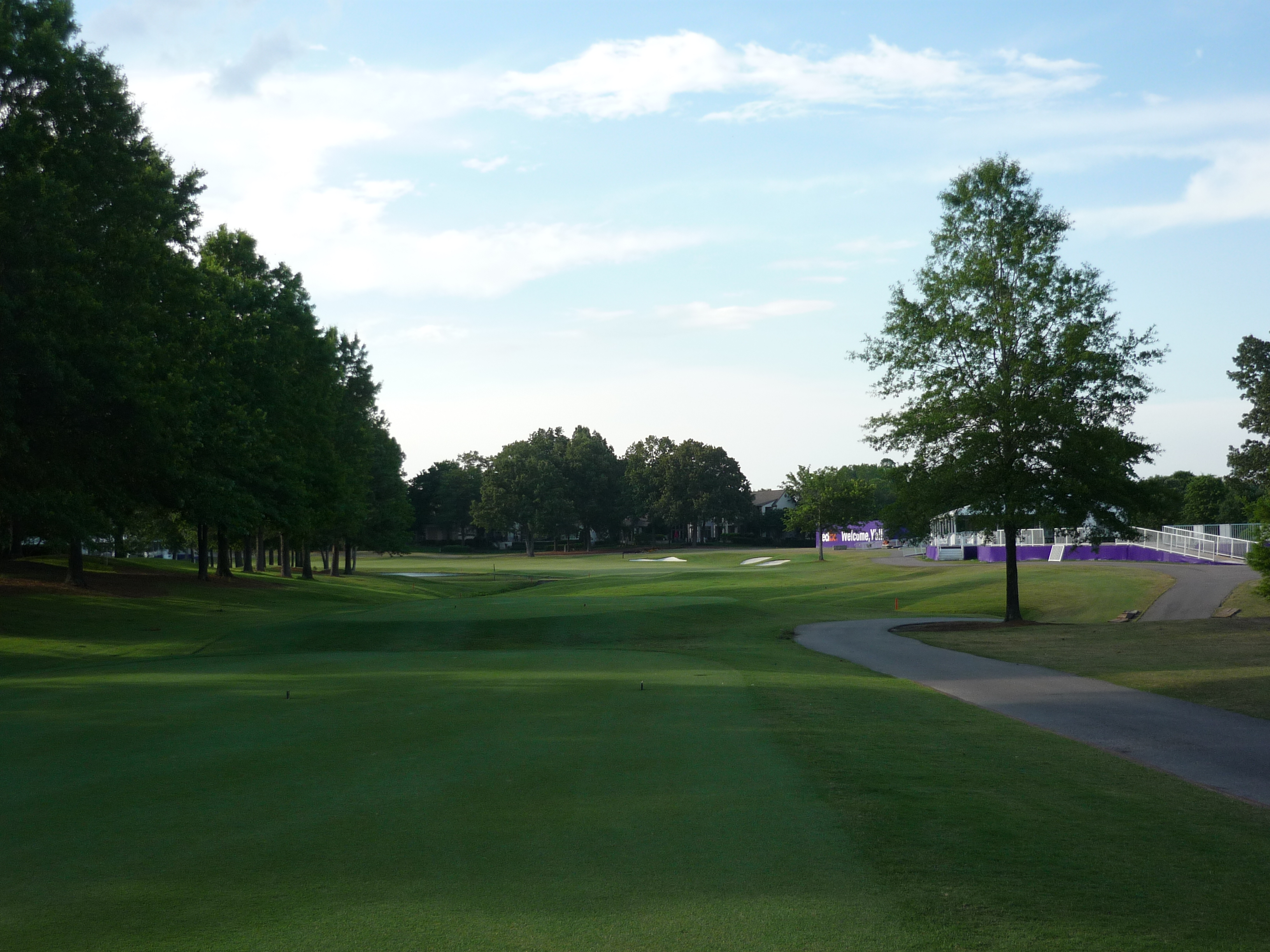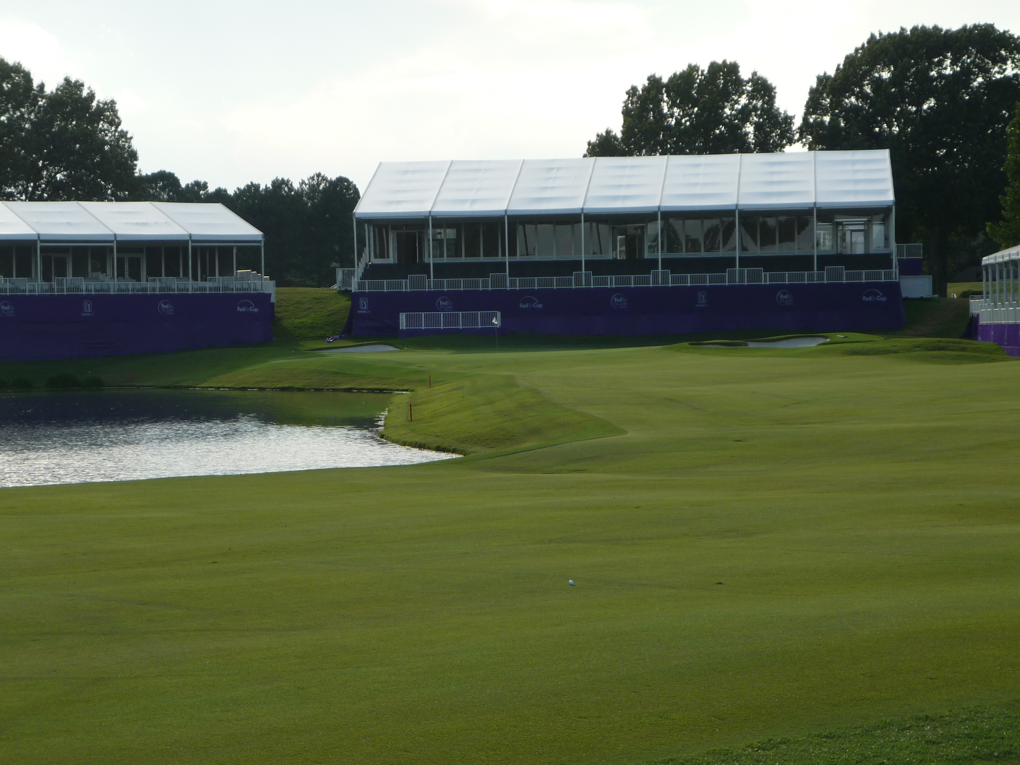 The finisher is no cakewalk. Water is in play on the left and bunkers await on the right. A steel resolve is needed here for the pros with a tournament on the line.
