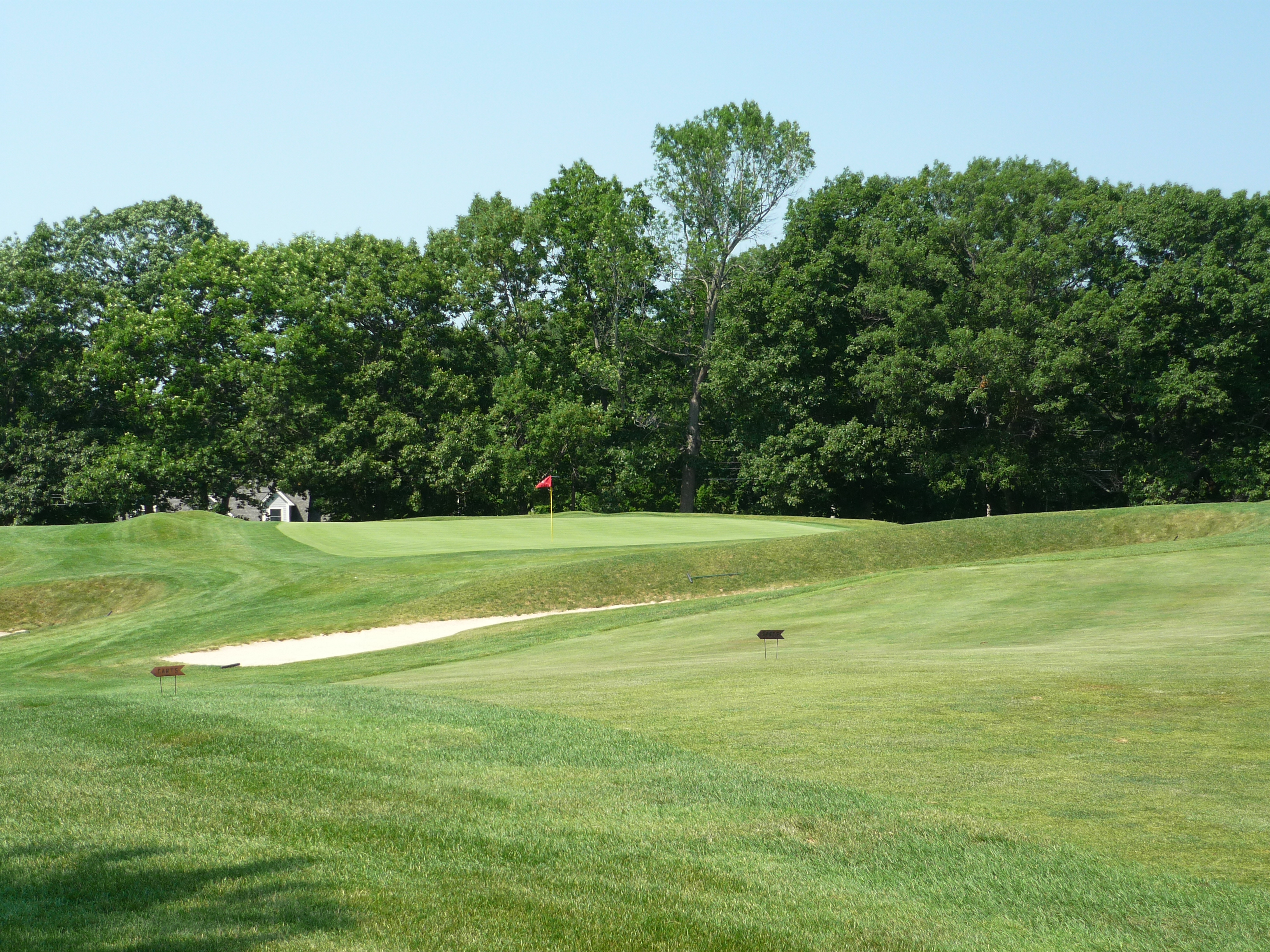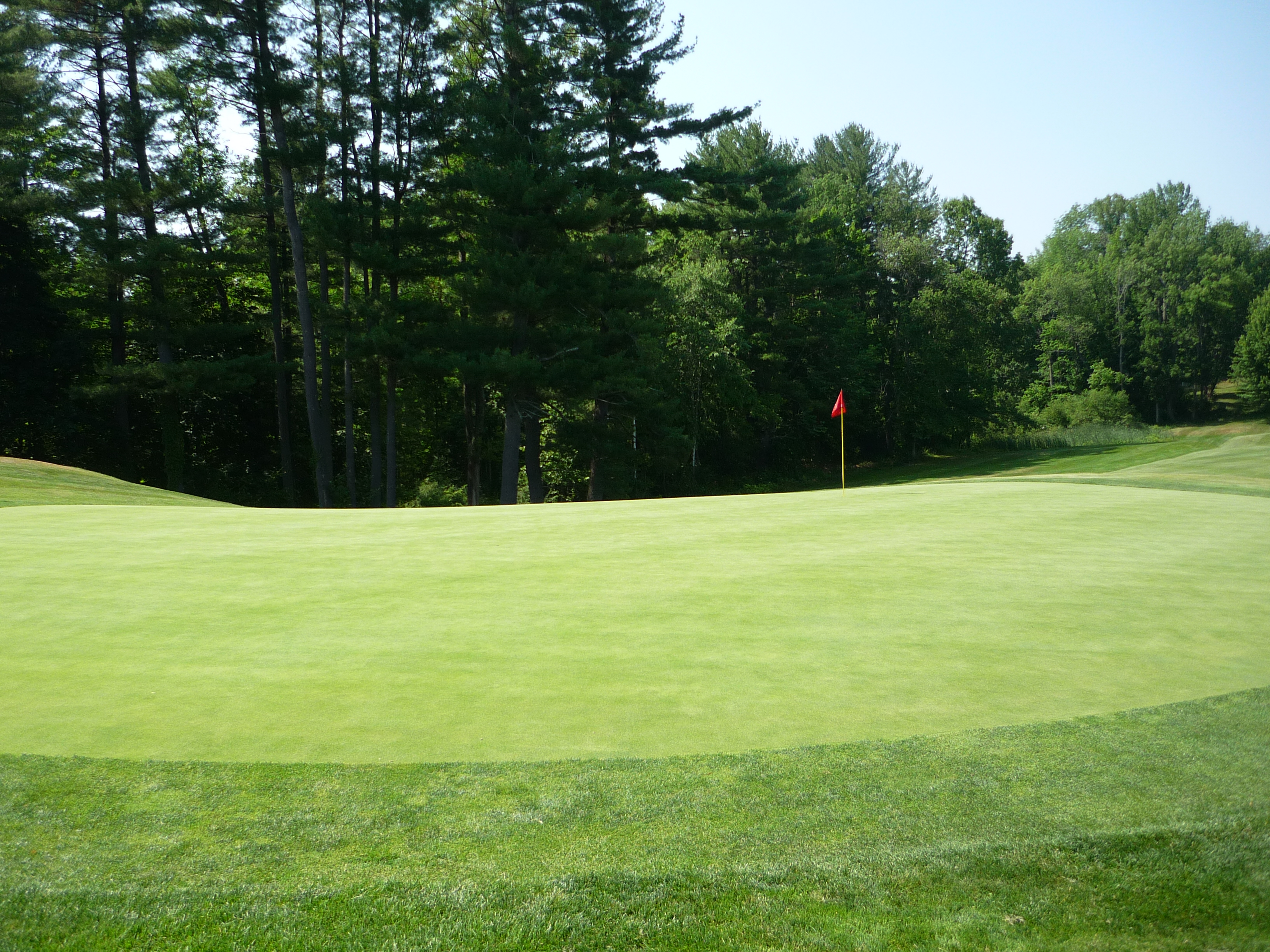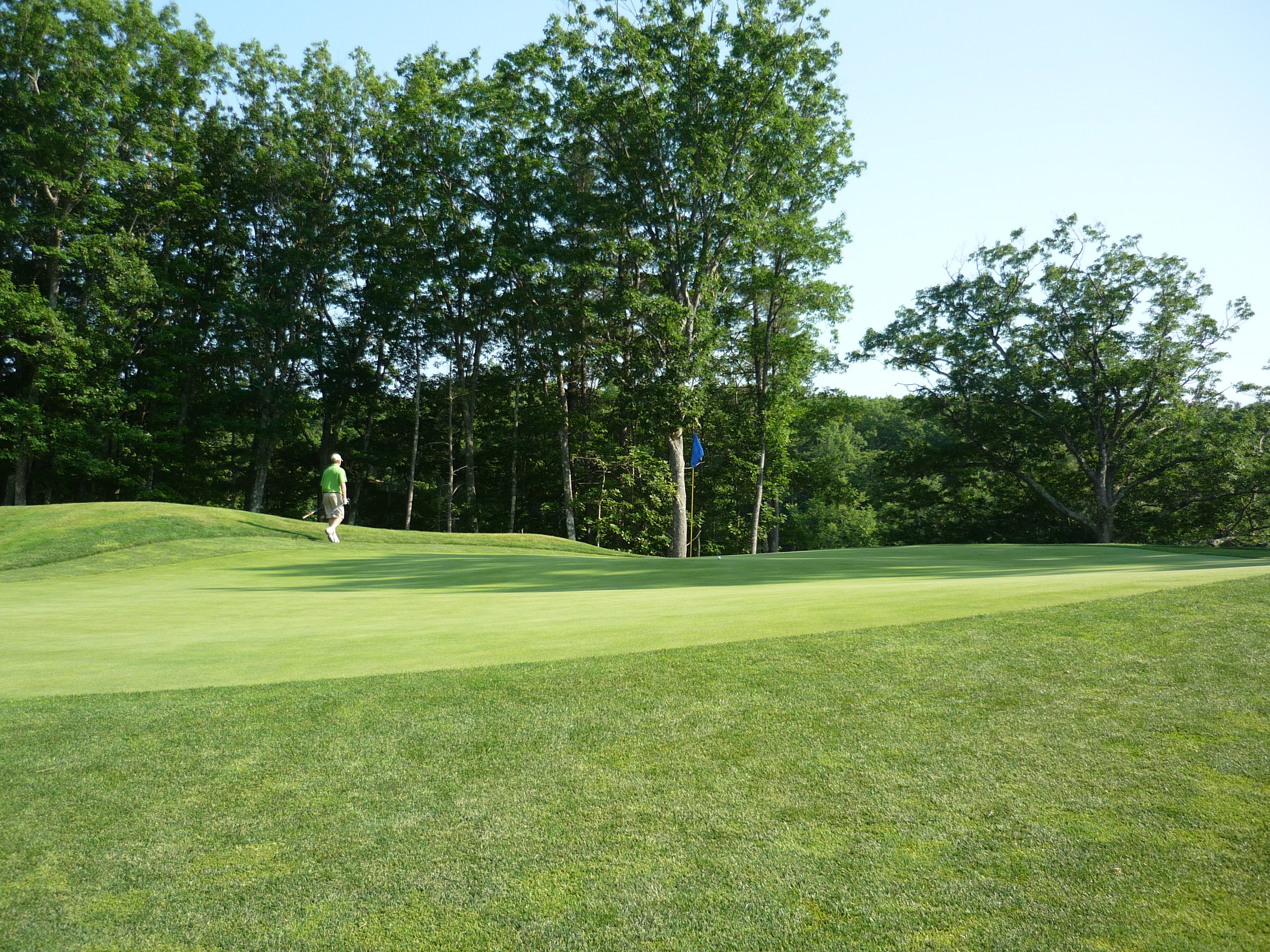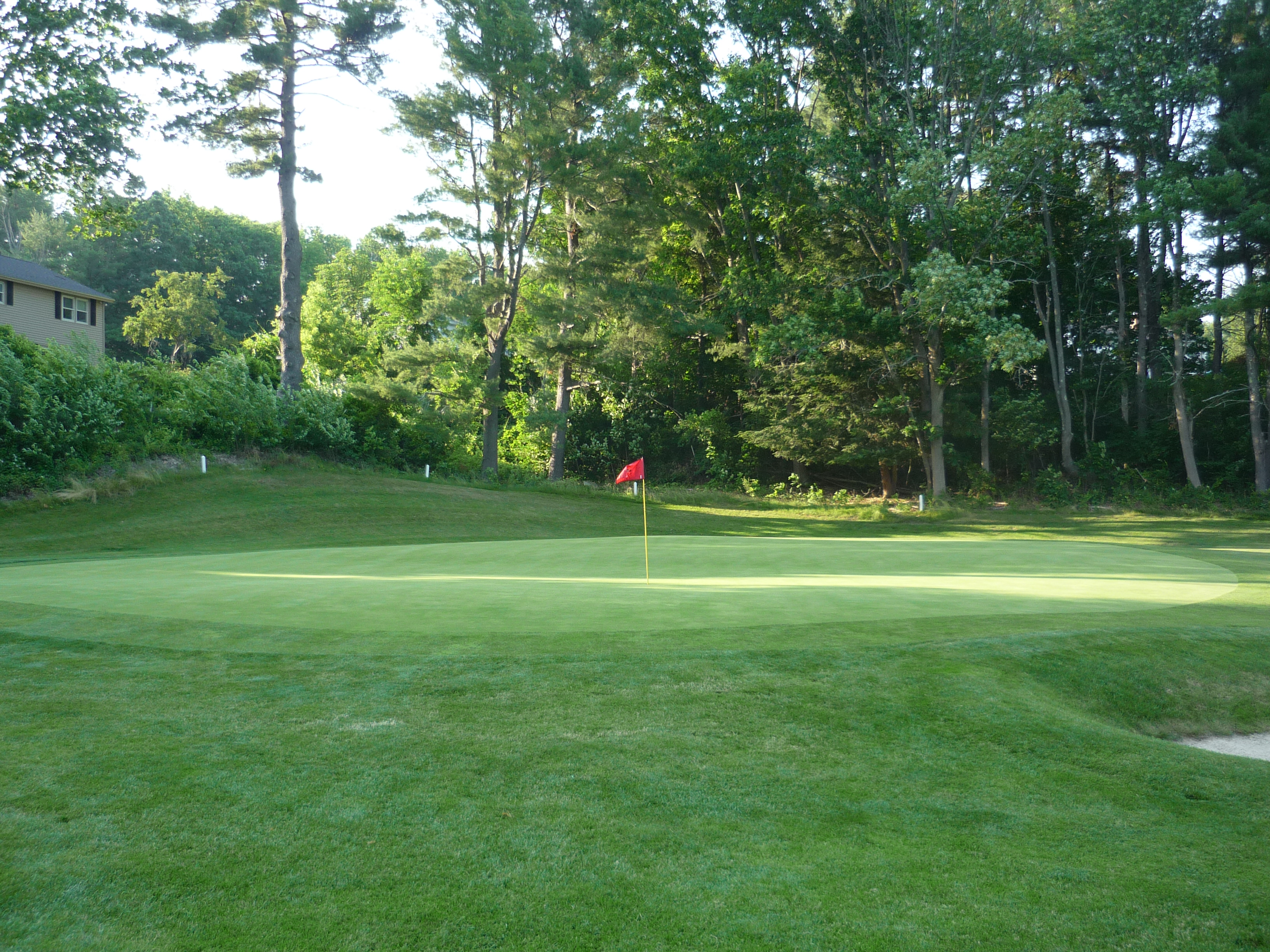 We have another pitched green here with more right to left slope. I four-putted in a junior tournament here once. Then my Grammy got lunch for about 10 guys in the tourney and put it on my uncle’s tab! Classic! He and I still laugh about that story.
