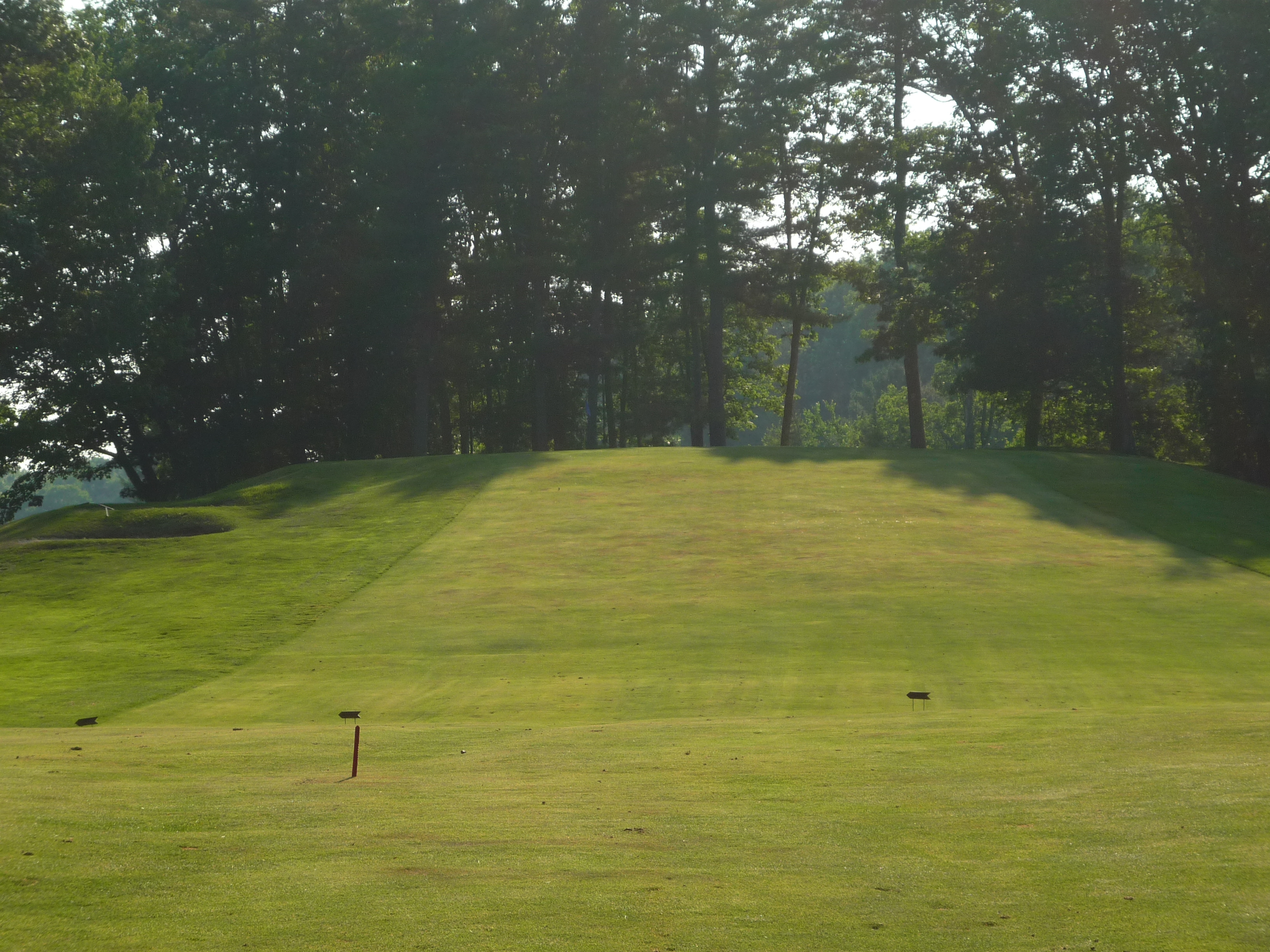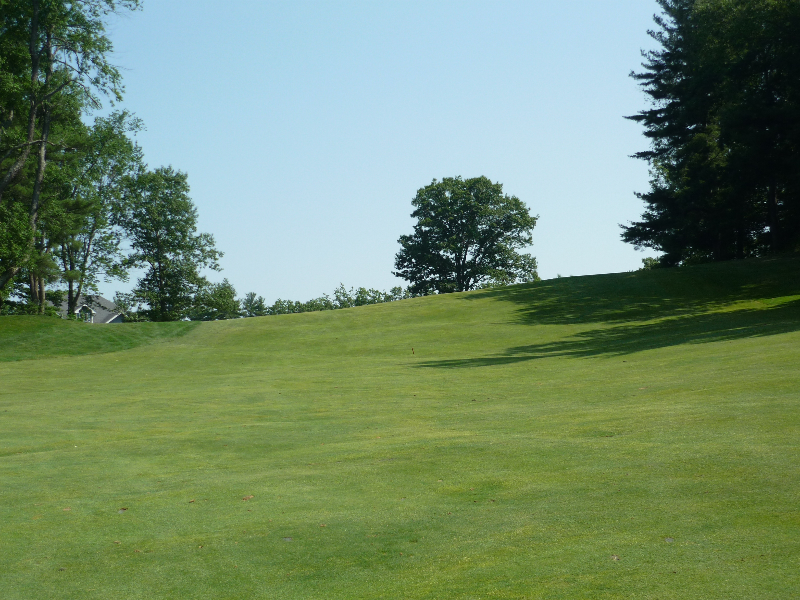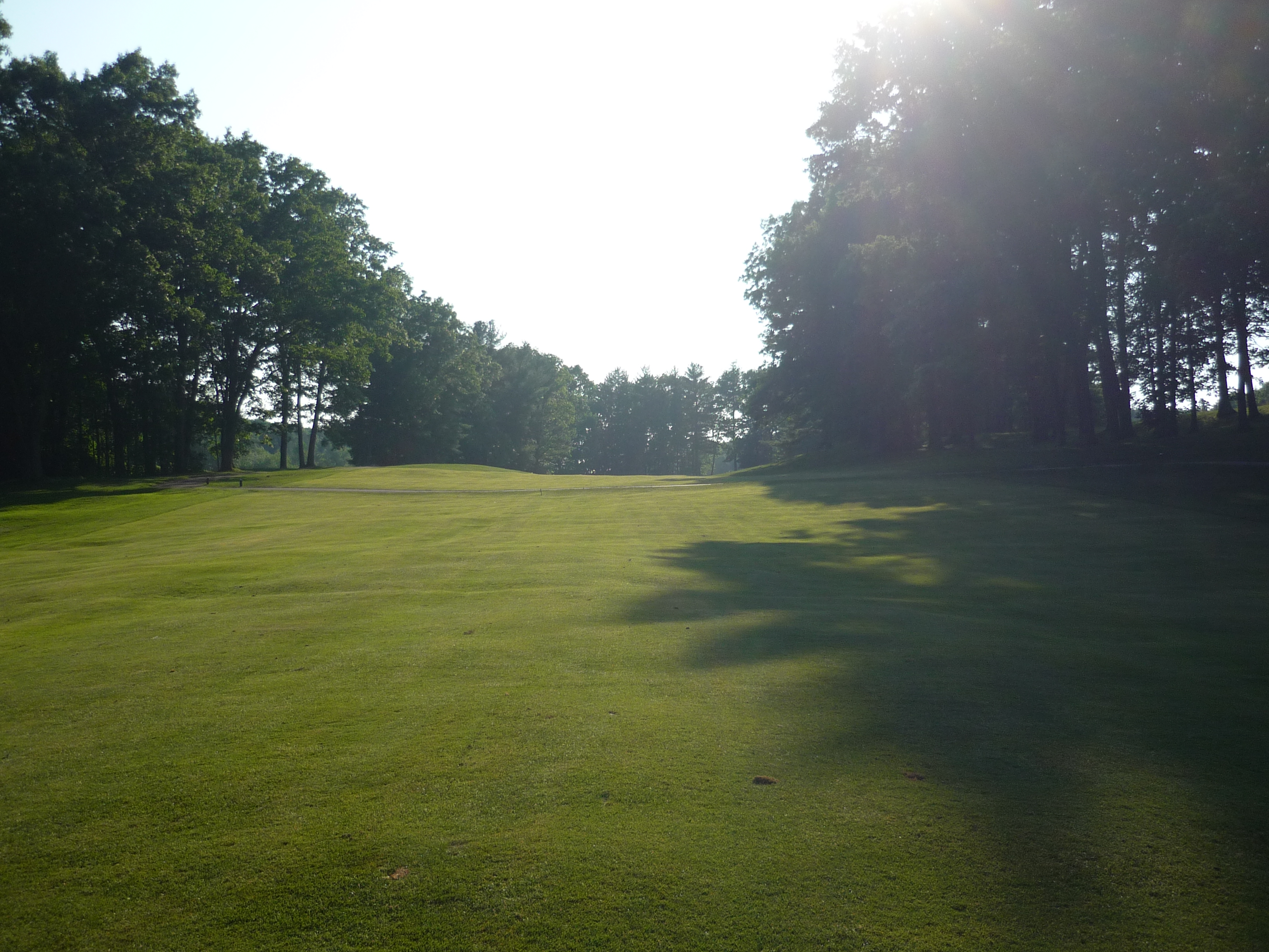 This may be the hardest hole. It is tighter than it looks. If you go to the right a bit the ball will run out into trees. A slight draw to the top of the hill is the best play. Easier said than done.