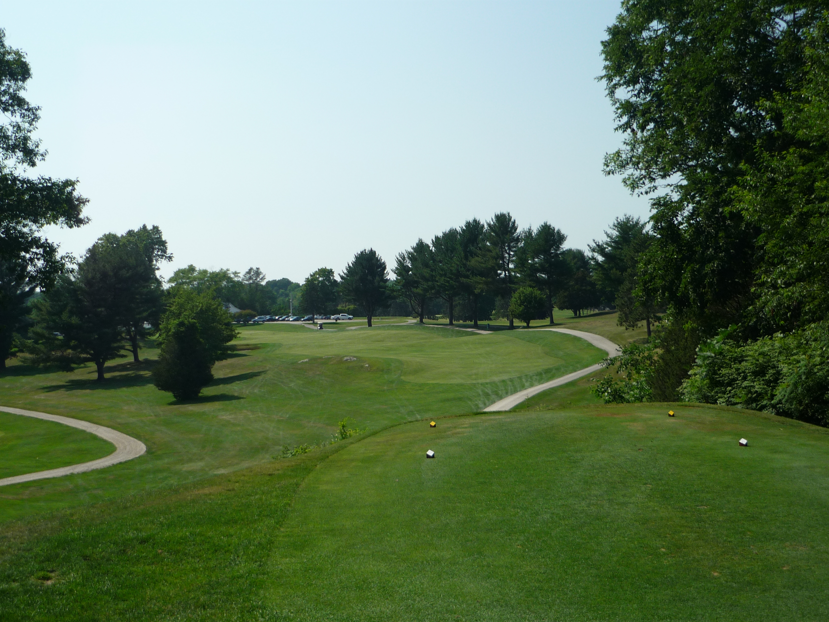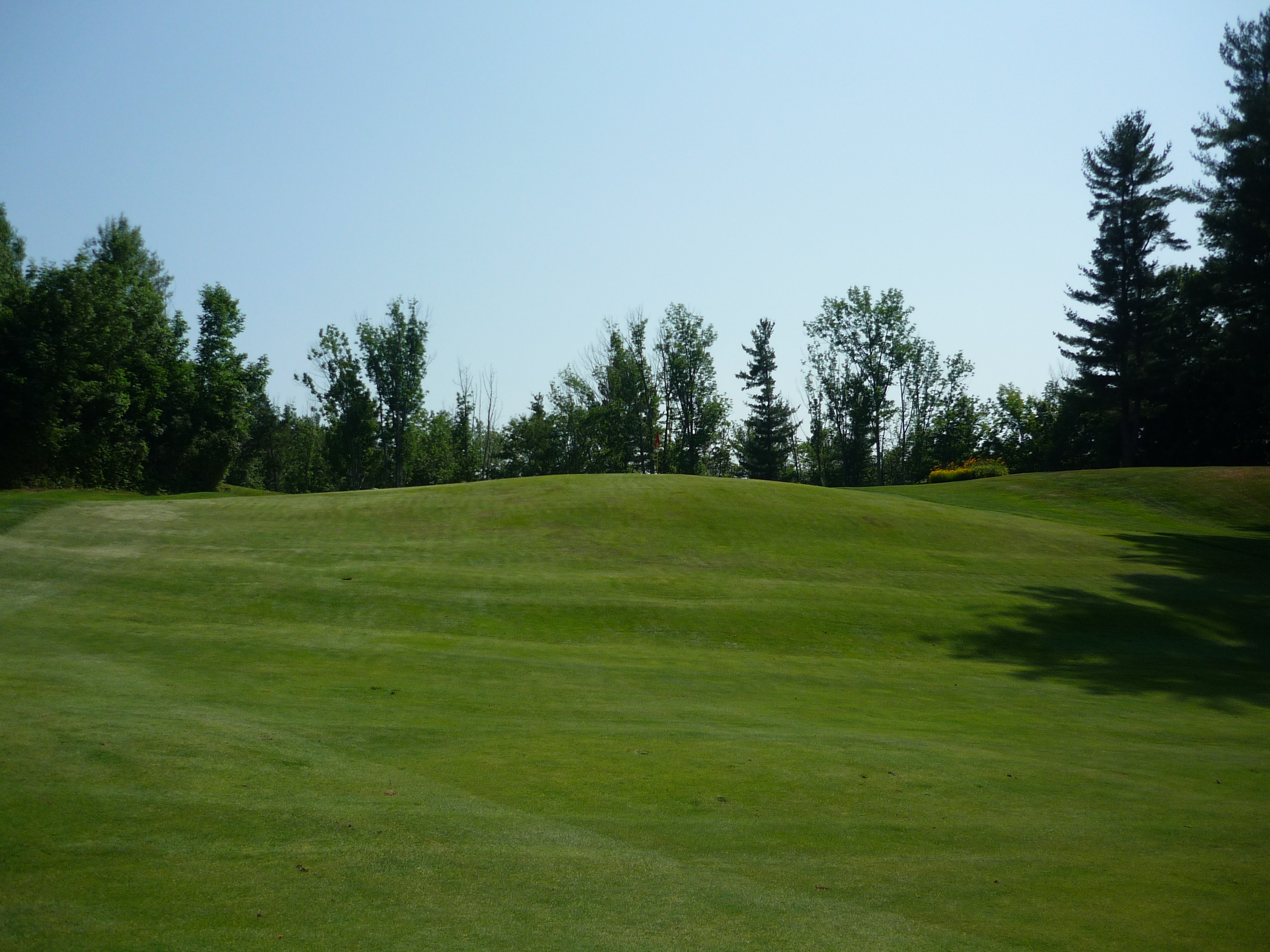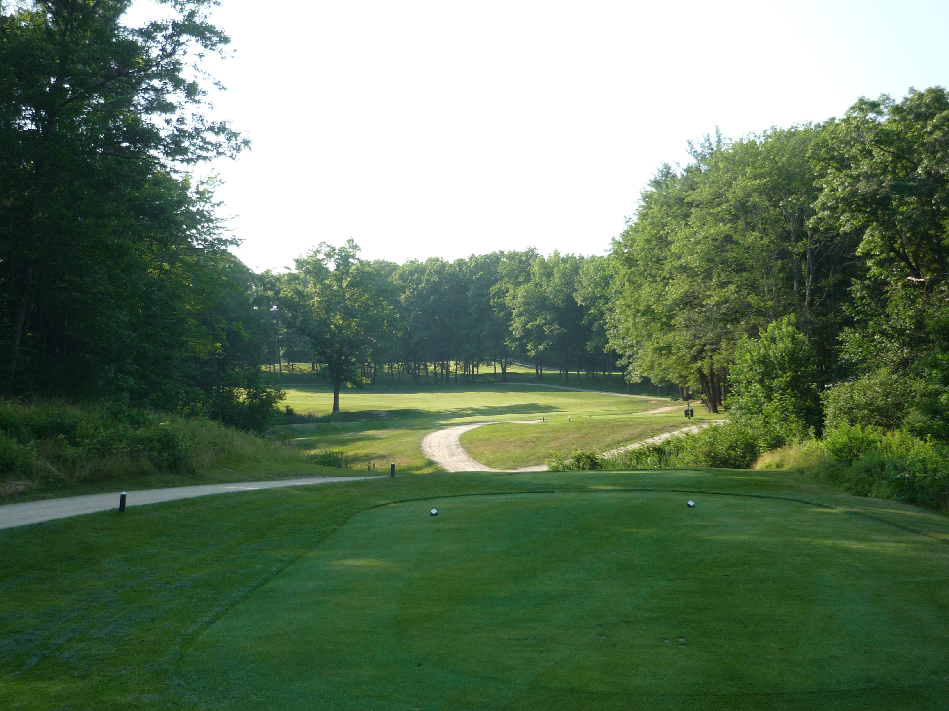 This may be the hardest hole. It is tighter than it looks. If you go to the right a bit the ball will run out into trees. A slight draw to the top of the hill is the best play. Easier said than done.