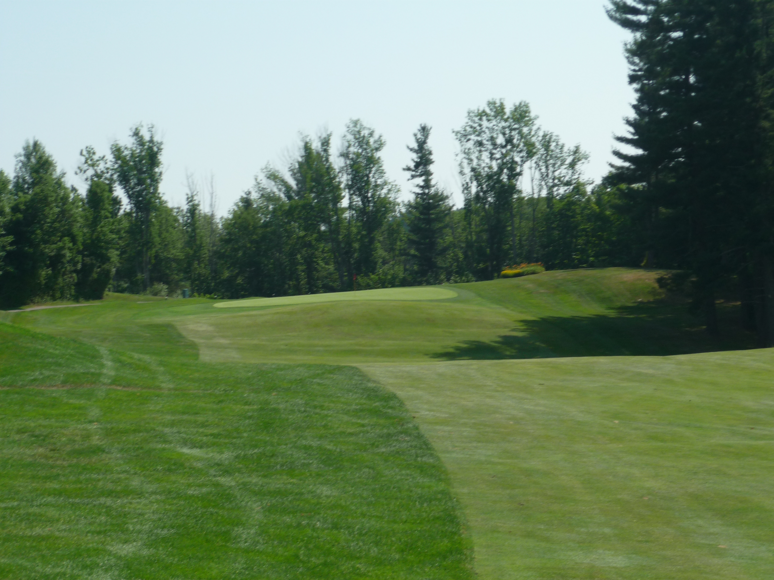 Nine is a brutal finish to this side. The entrance road sits to the left and calls your name with a long club in your hand. The green is heavily sloped from front to back to receive long shots. Chipping is quite difficult.