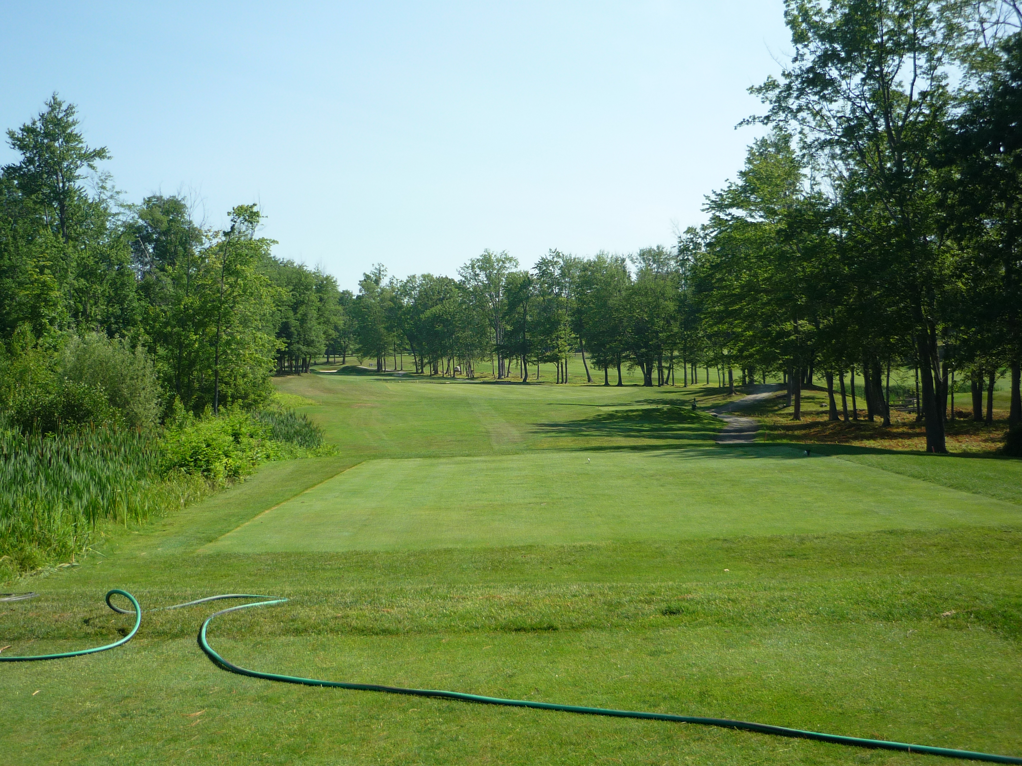I caught up to the maintenance crew on this one. This hole bends to the left. With trees right you don’t want to miss on that side.
