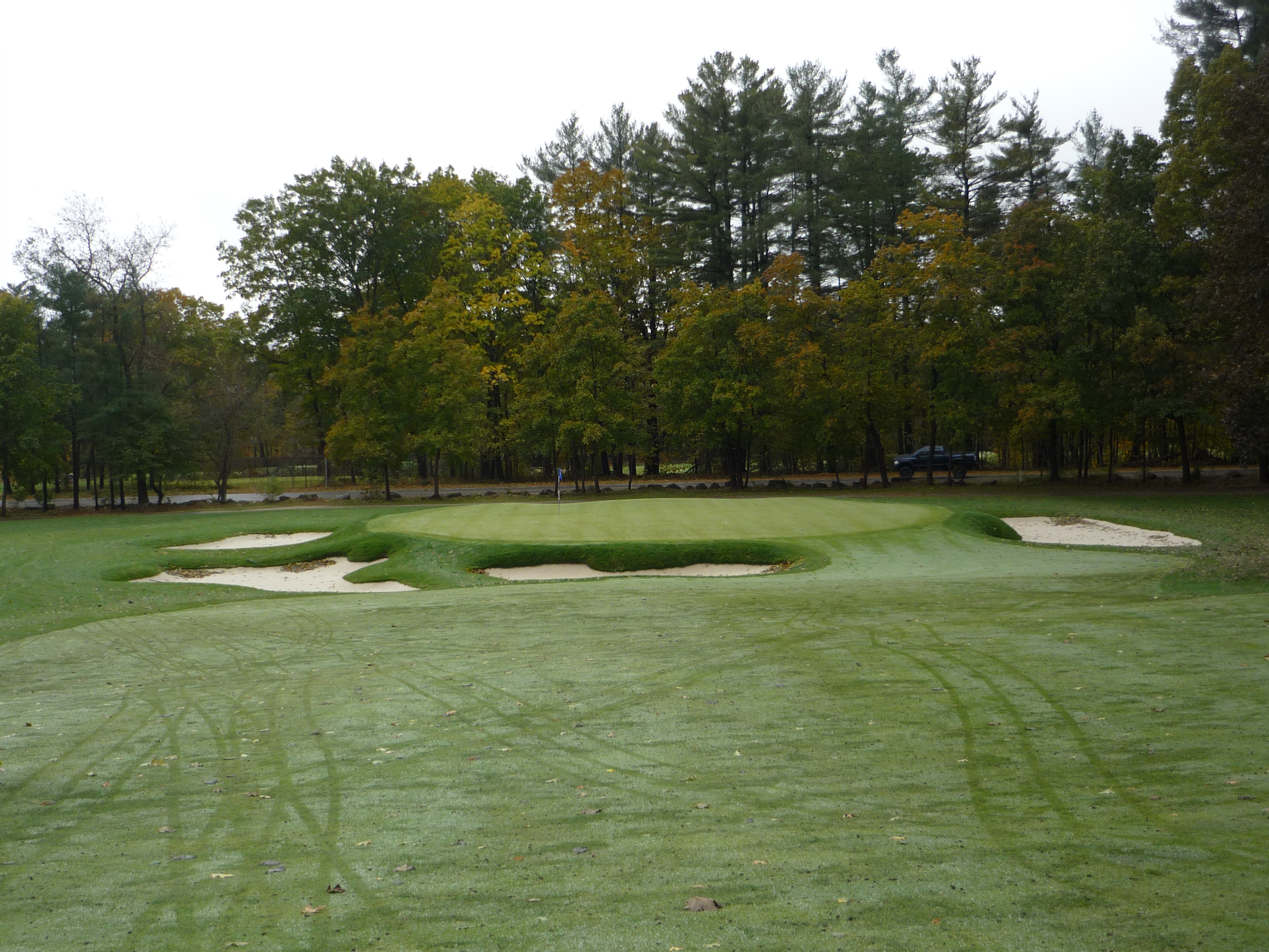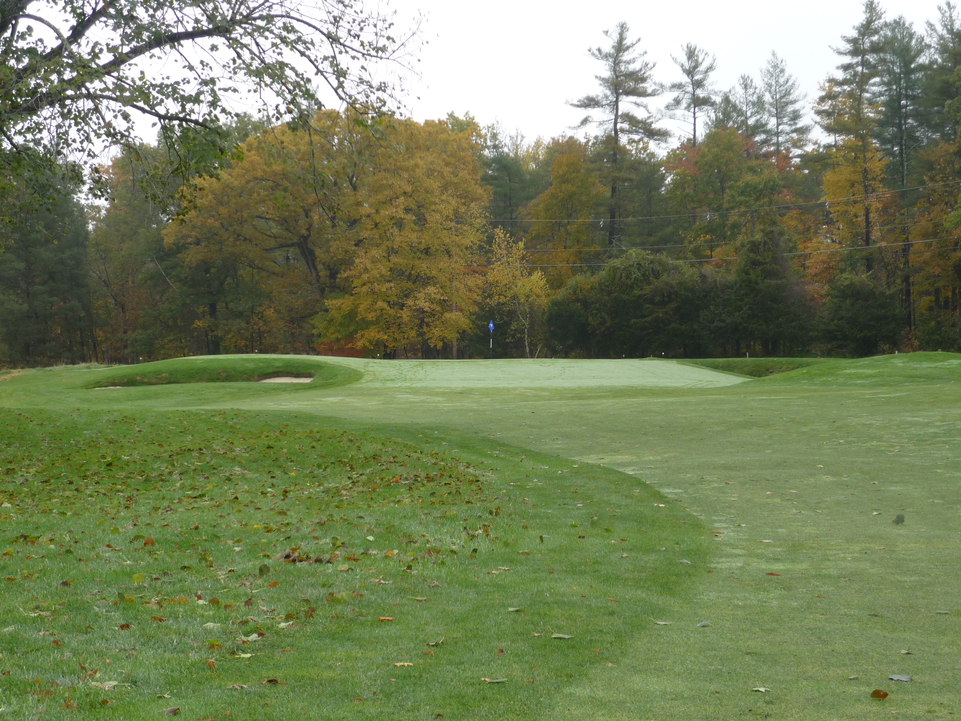 You fly blind on this tee. Use the cart path for help again as you want to hit it a bit left of it. Once you get over the hill a beautiful raised green surrounded by sand presents itself. This hole gave me some serious Ross vibes.