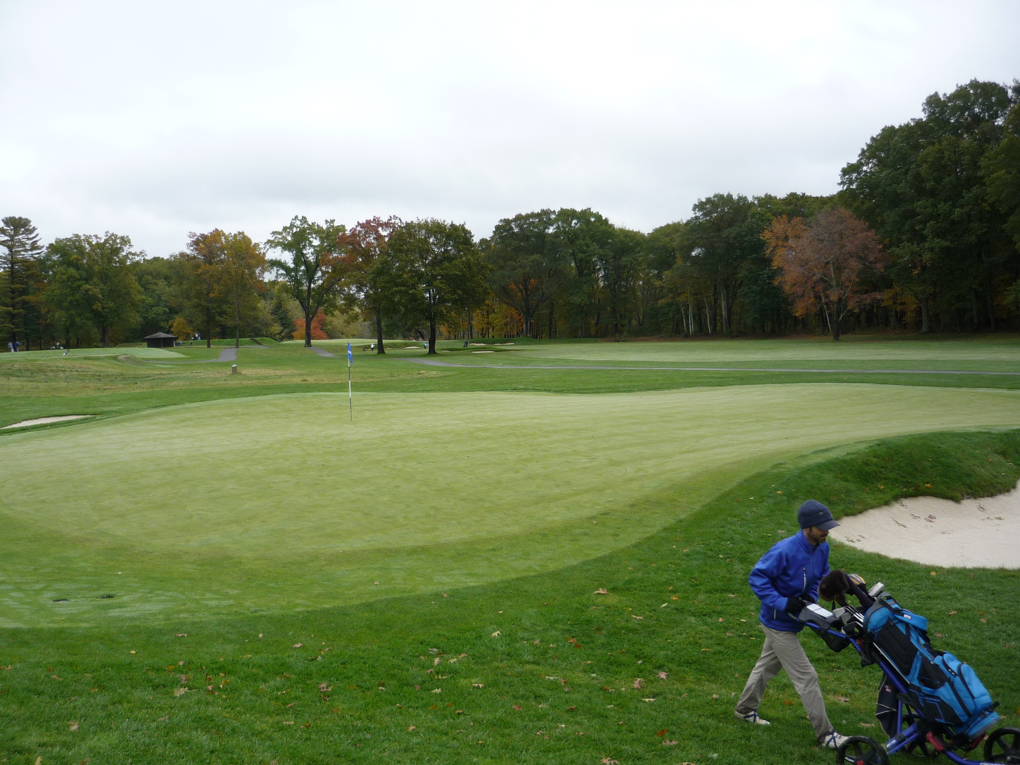 After a quick ride down from New Hampshire, I met up with Nik on a cool, damp morning. It was a member shotgun day, so we would be starting on the 5th hole. After getting some breakfast, we loaded up on the pull carts and started the walk to our assigned hole. I think you’ll enjoy the photos as much as I did playing the course.