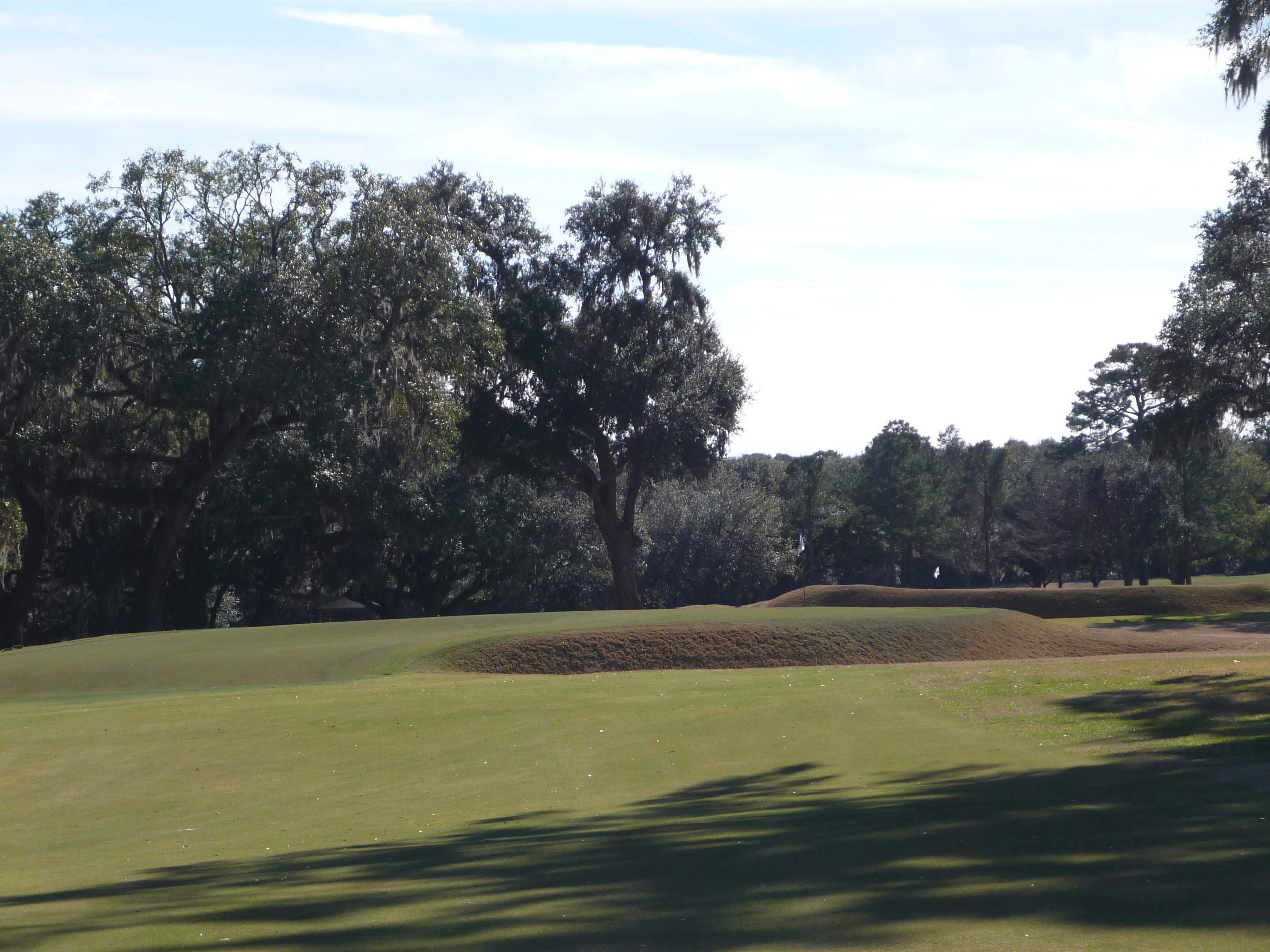 One of the most famous templates, Biarritz, is used on this hole. Biarritz holes have deep troughs in the greens as you see below. The intent is to run a shot up onto the green and through the trough. It’s good fun you don’t get to see too many places.