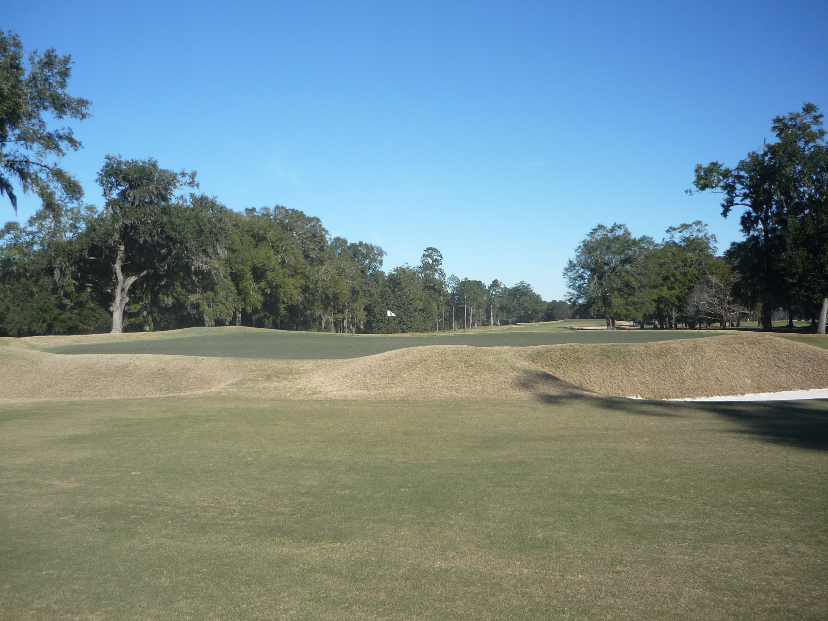 This Alps hole is golf architecture brilliance. The land is dead flat but Raynor put sand traps all up in the fairway to make you work on the tee. What could have been a boring hole turns into a fun exercise.