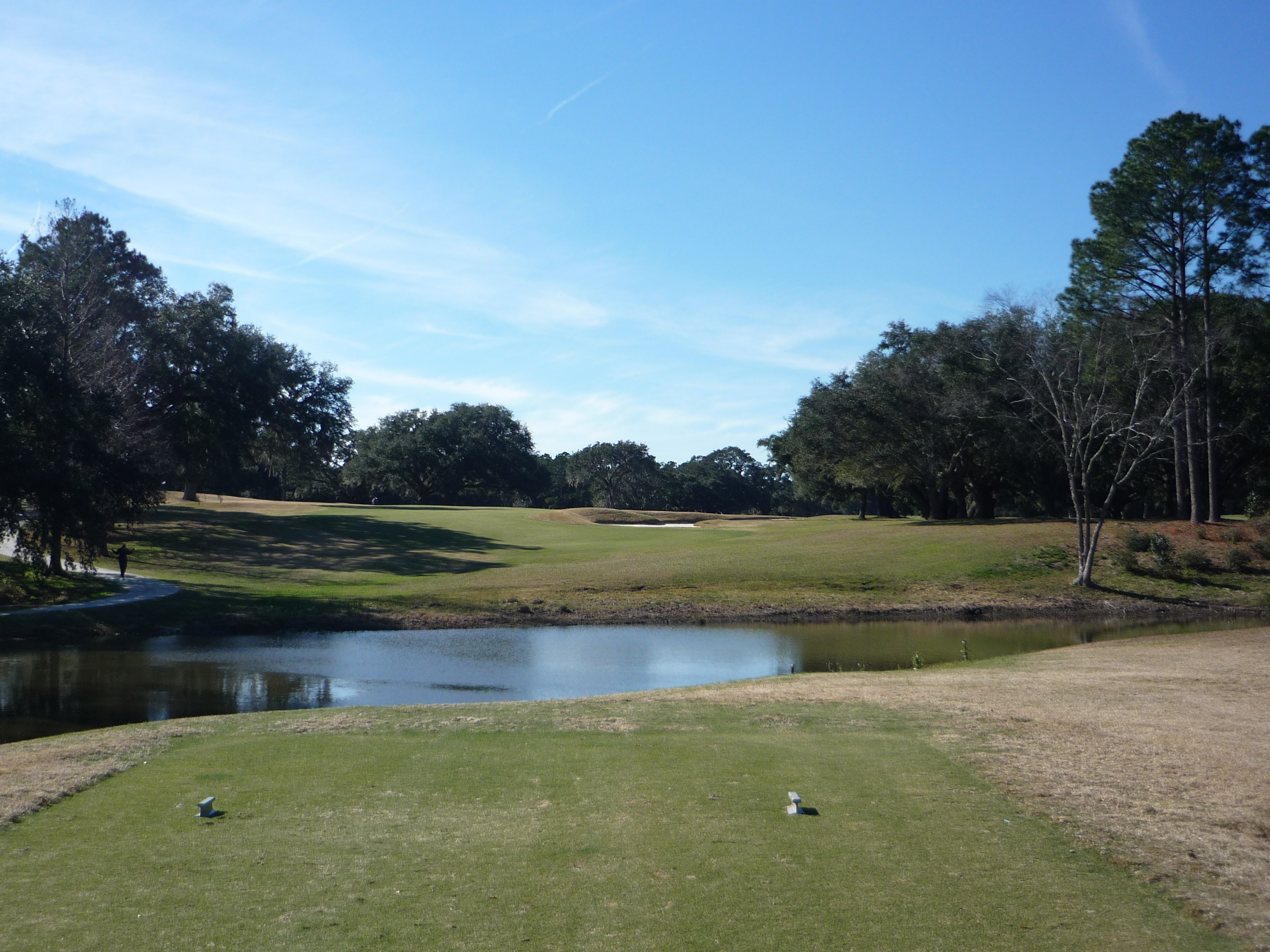 I quite liked this hole that looks unassuming from the tee. Tee shots should be placed on the left side of the fairway for the best angle to the green. The real fun comes with the approach shot.
