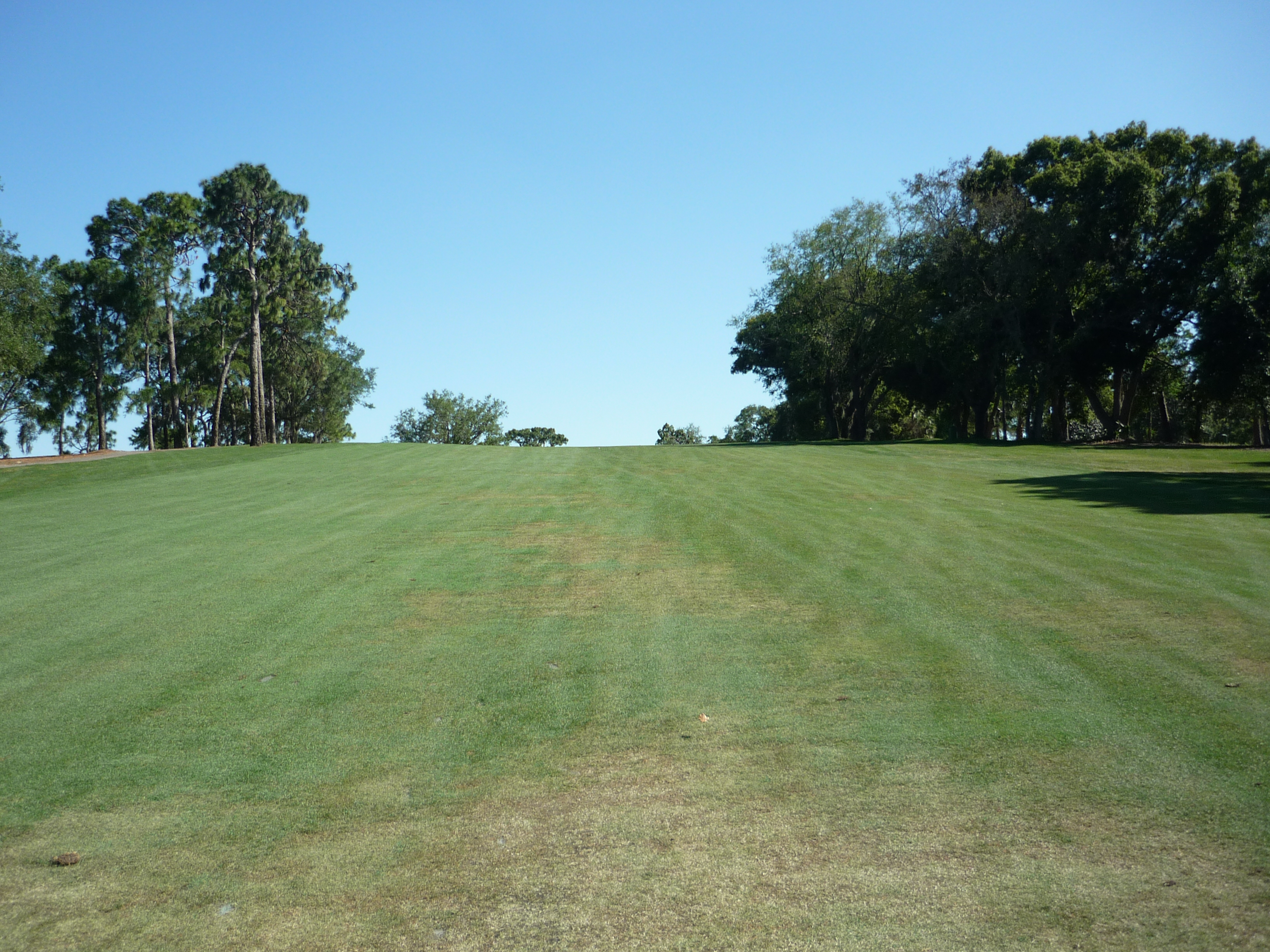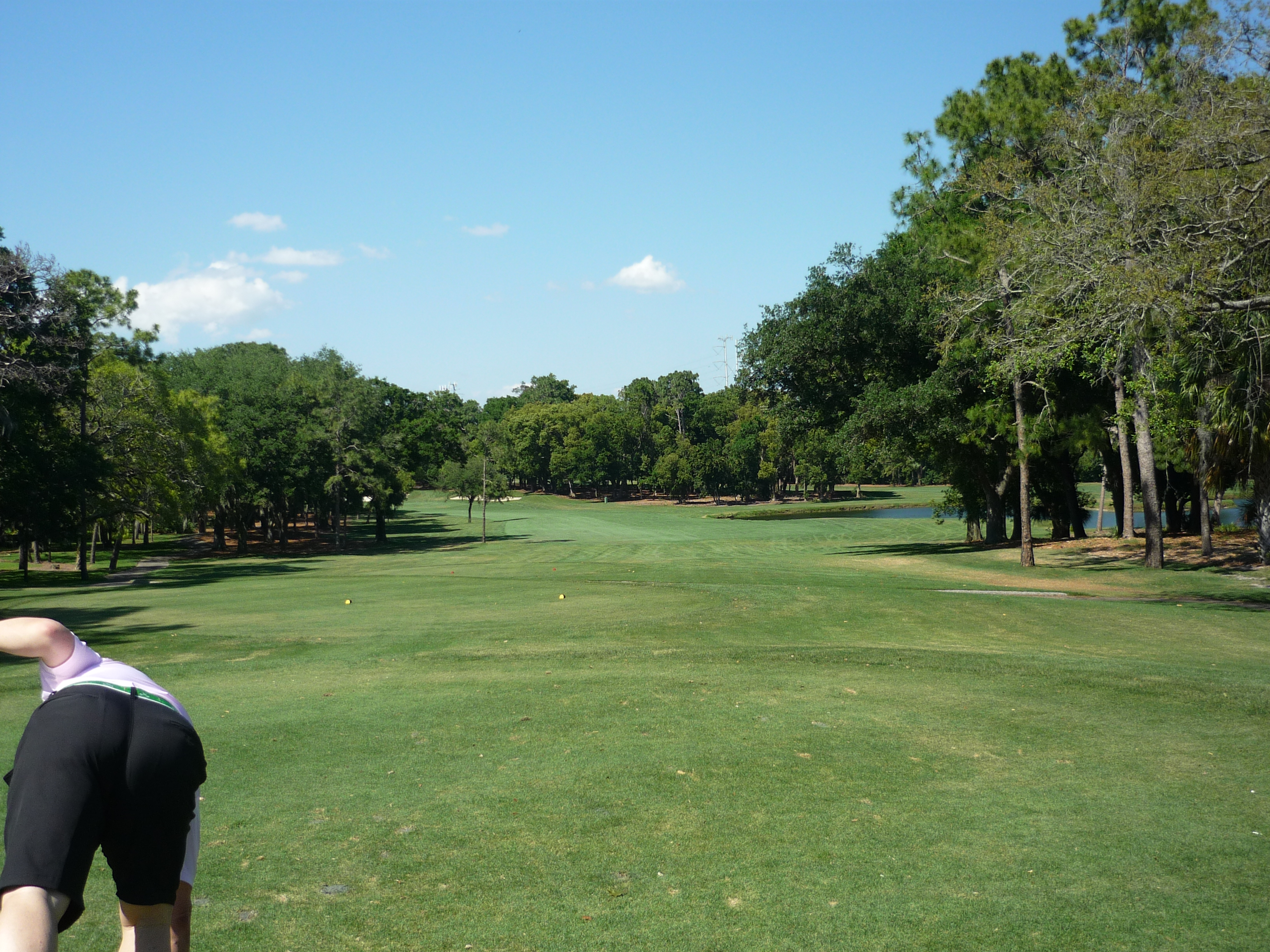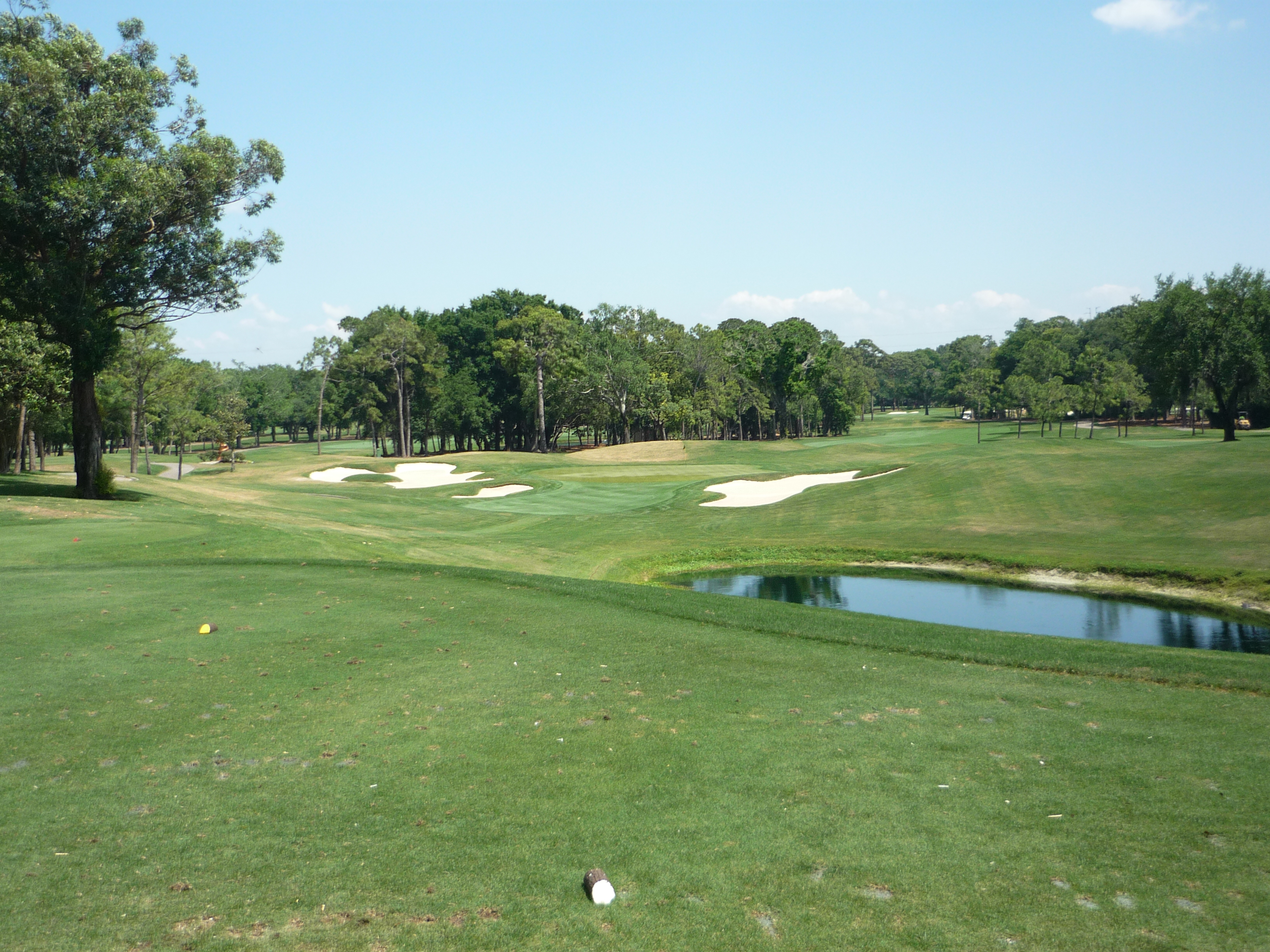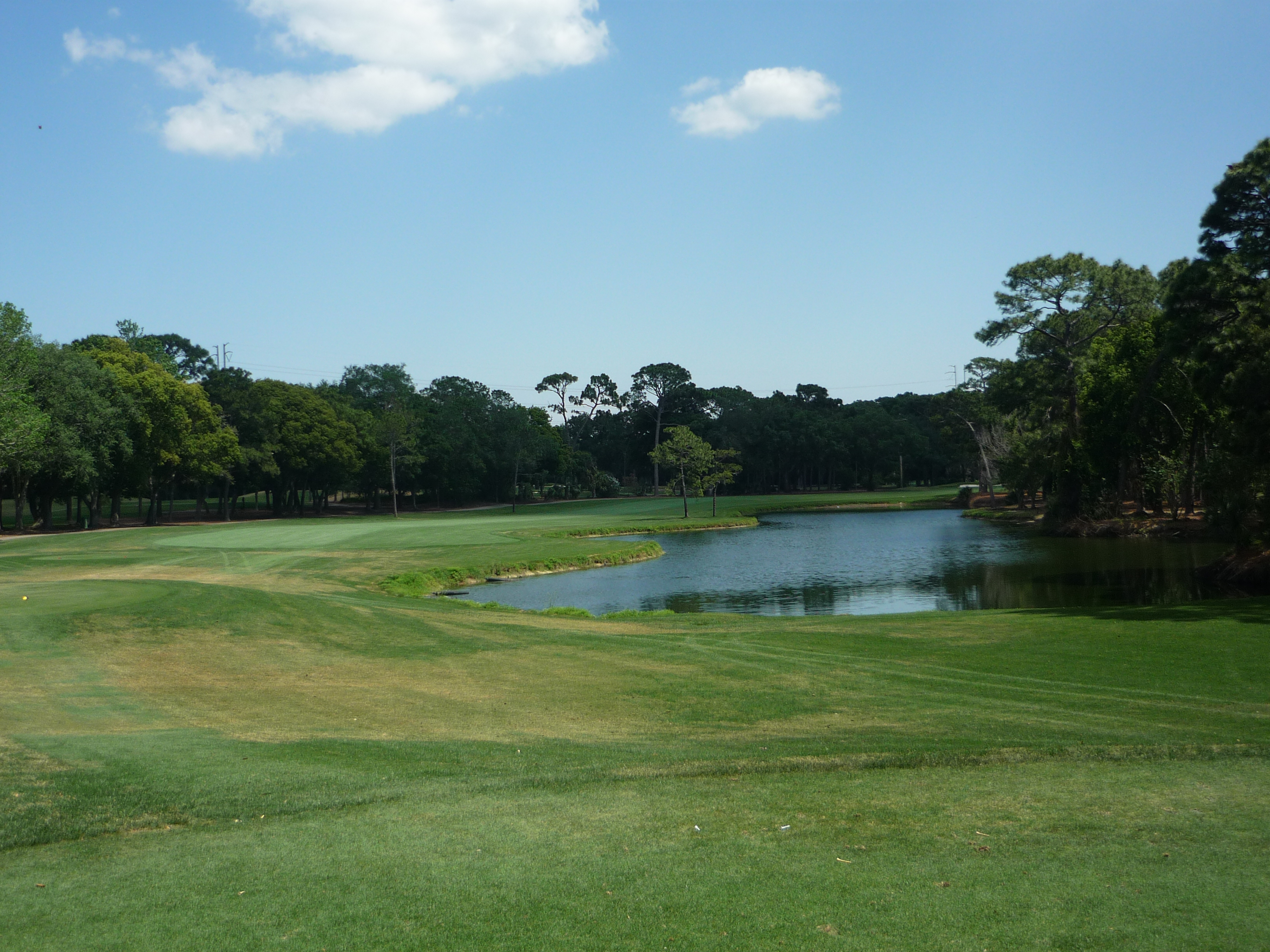 From this view you can see the pond cutting into the hole. It transitions to a creek that splits the fairway in two.