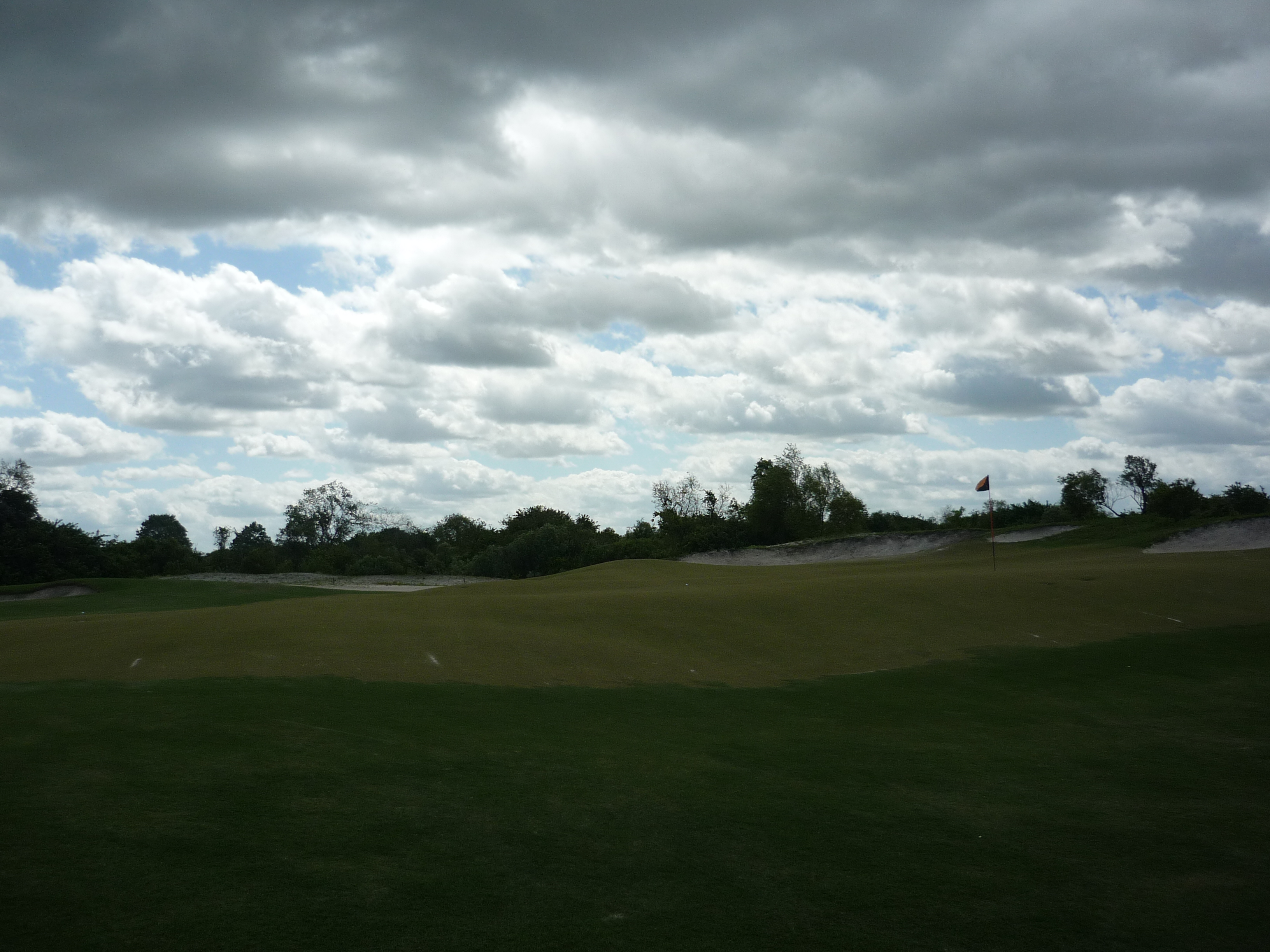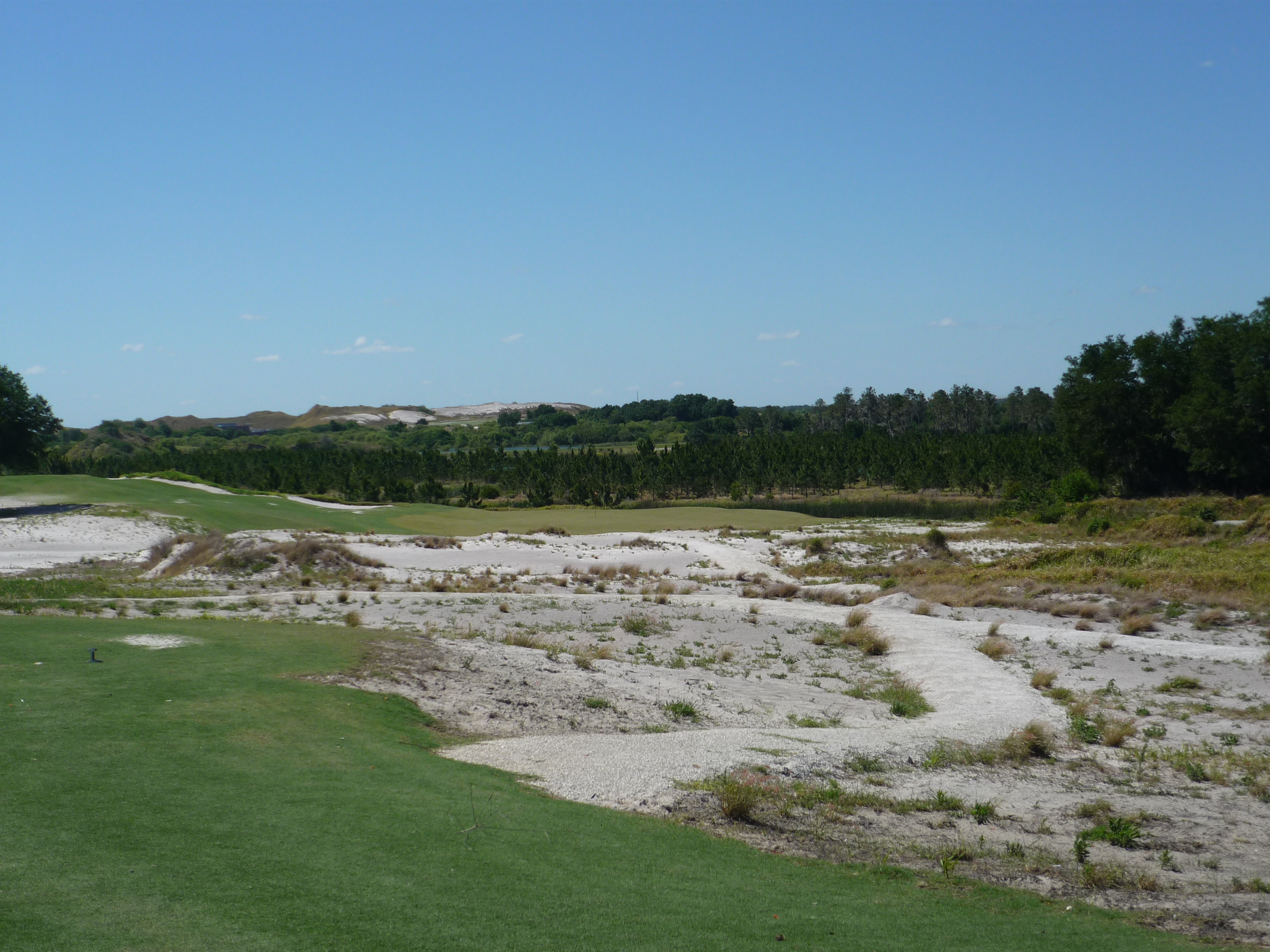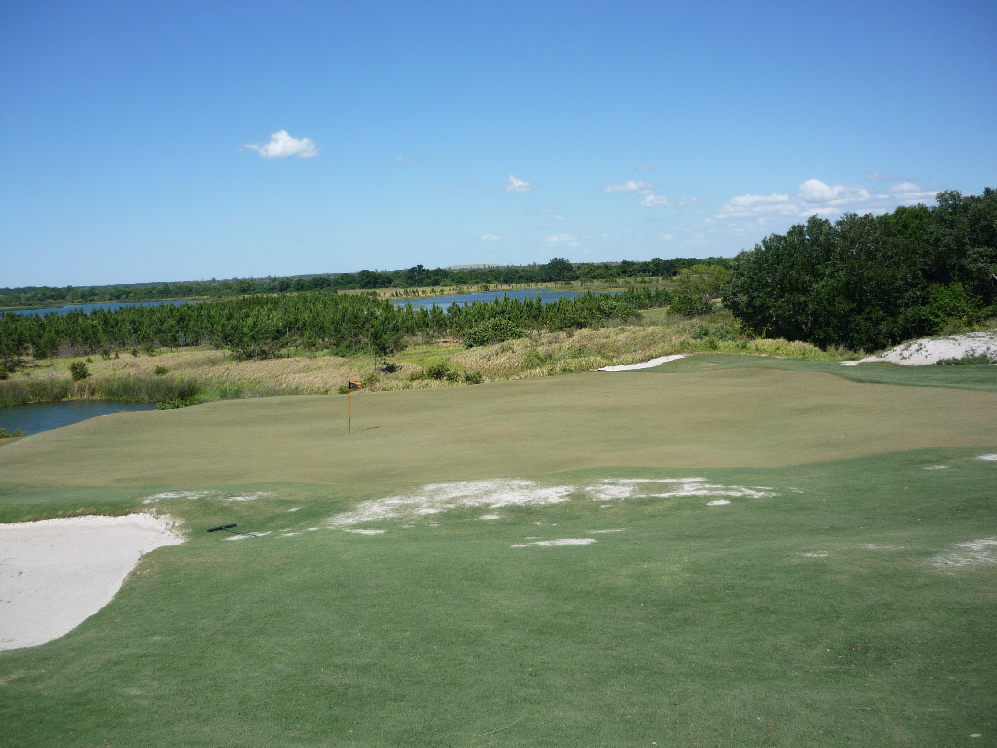 The view from the right side of the green shows the dangers of a mishit.