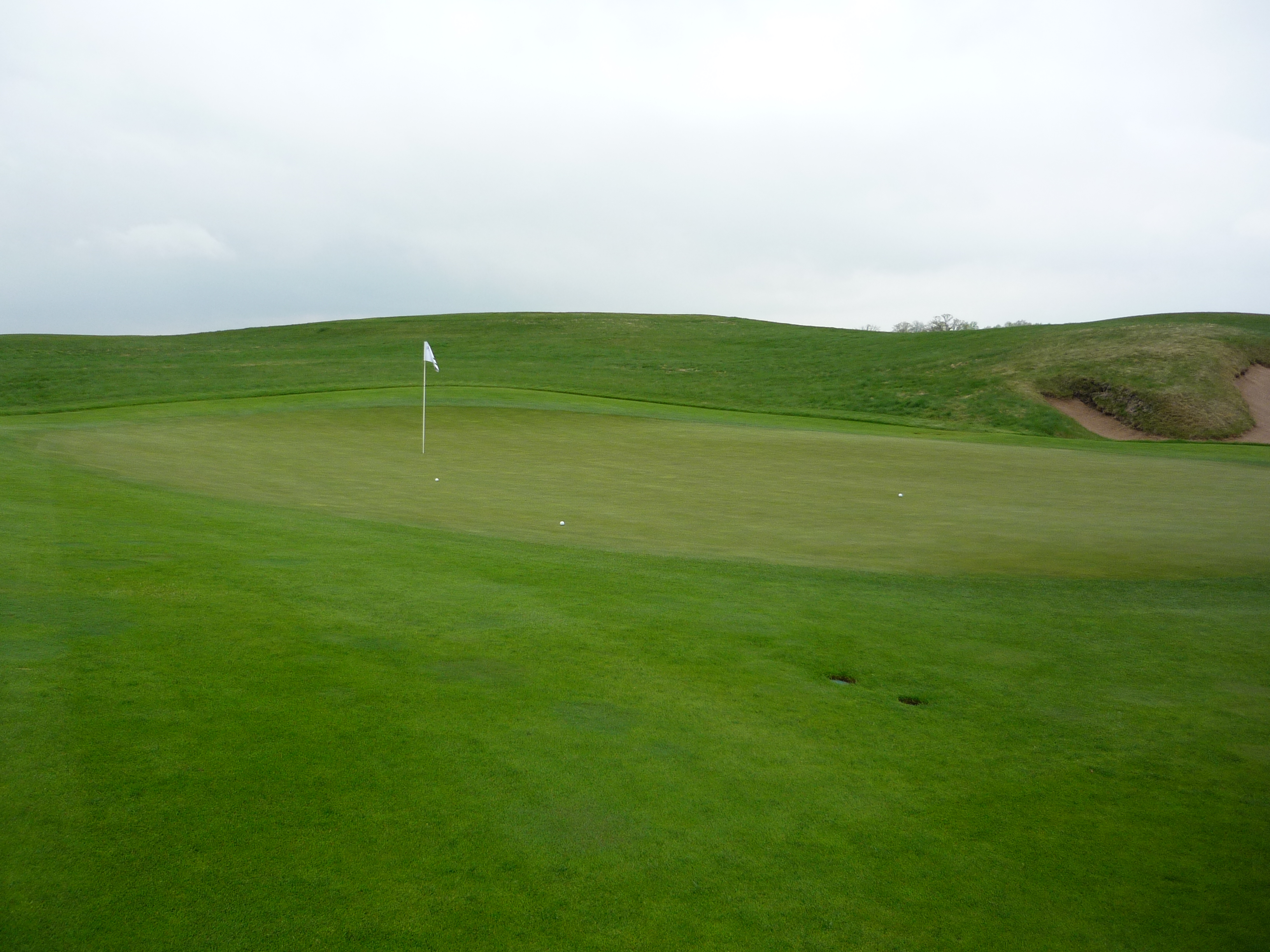 This short hole is best approached from further back in my opinion. Bunkers in the landing area and around the green are best avoided.