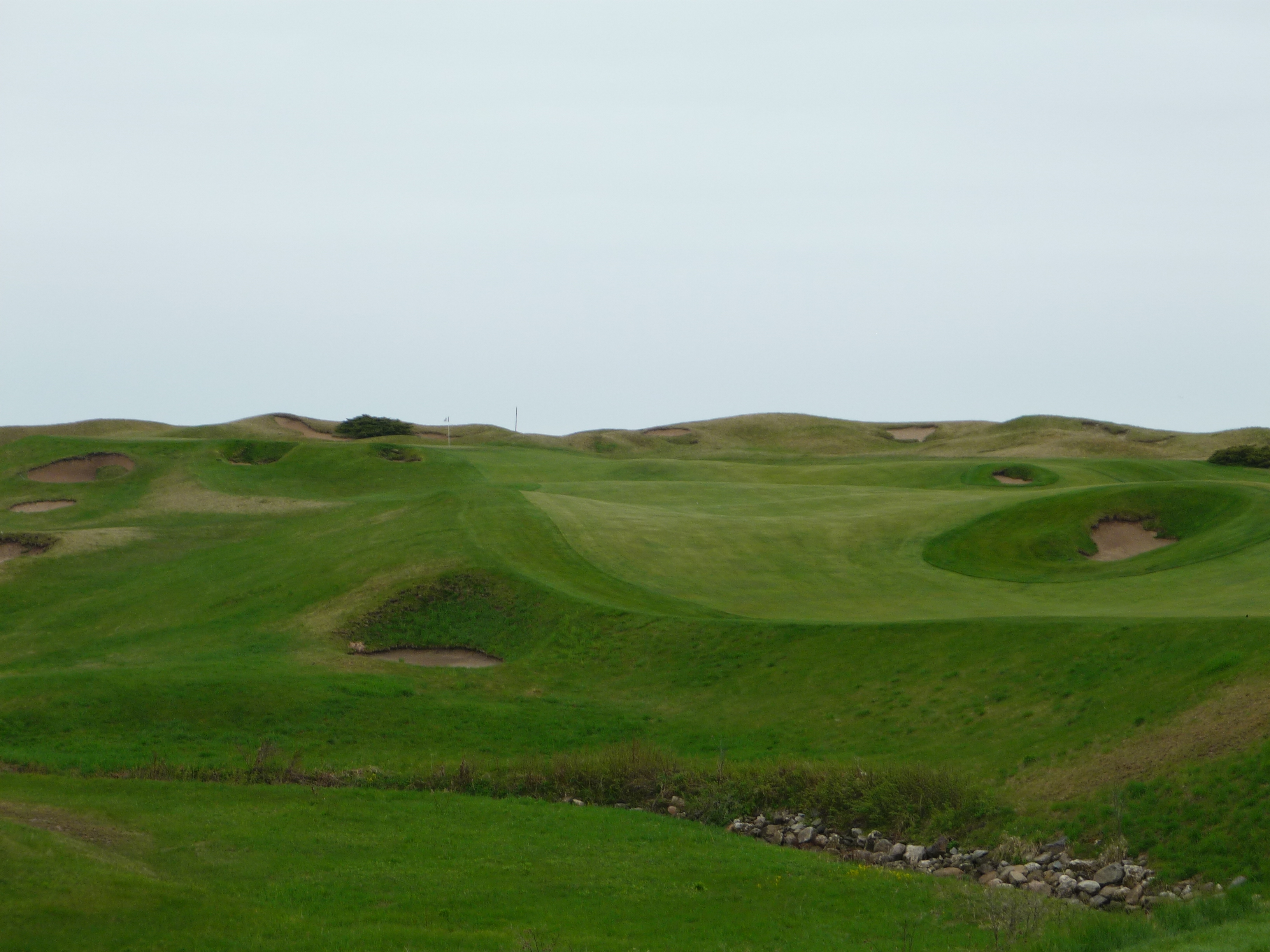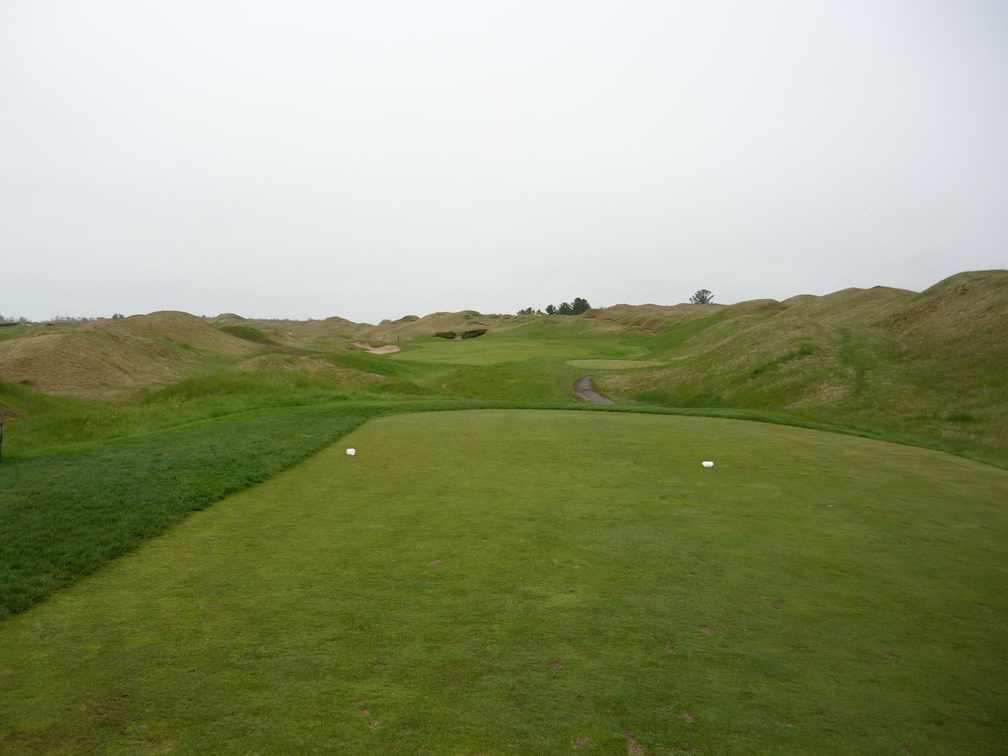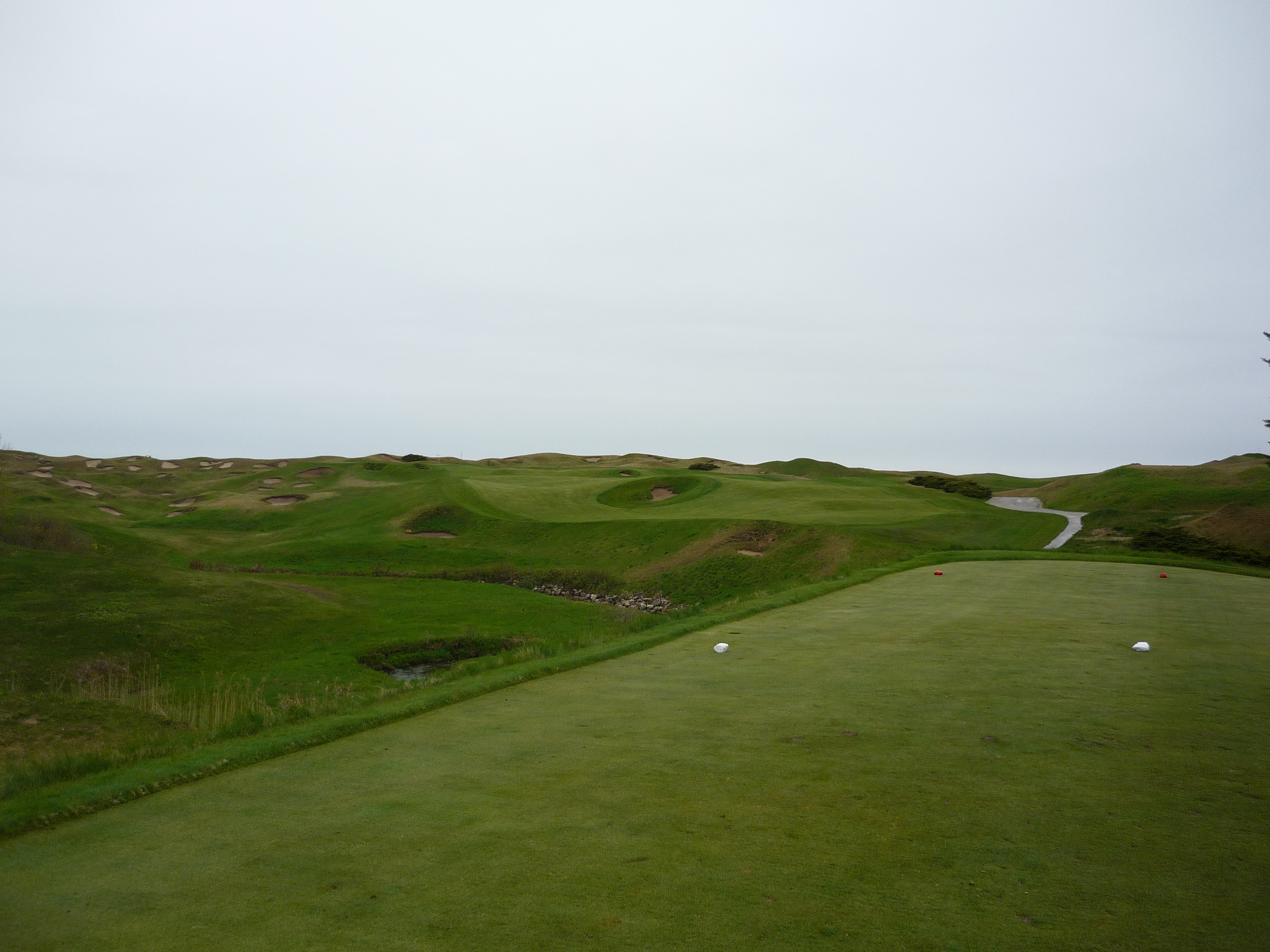 You might be thinking that there is no fairway here. That was my first thought when I saw this view from the tips. The fairway is raised to the left in a somewhat unconventional design. The shorter tees provide a better view of the fairway.