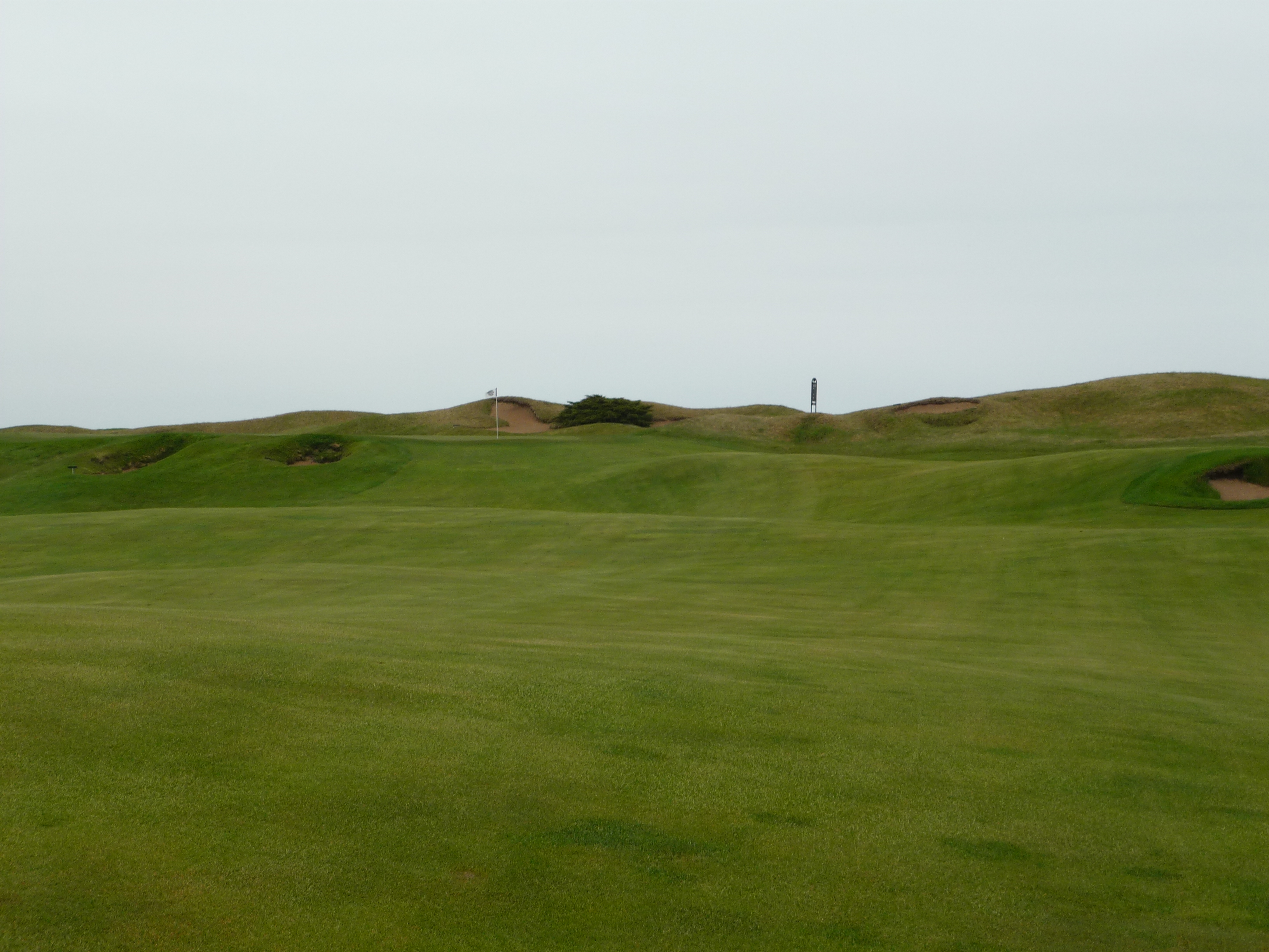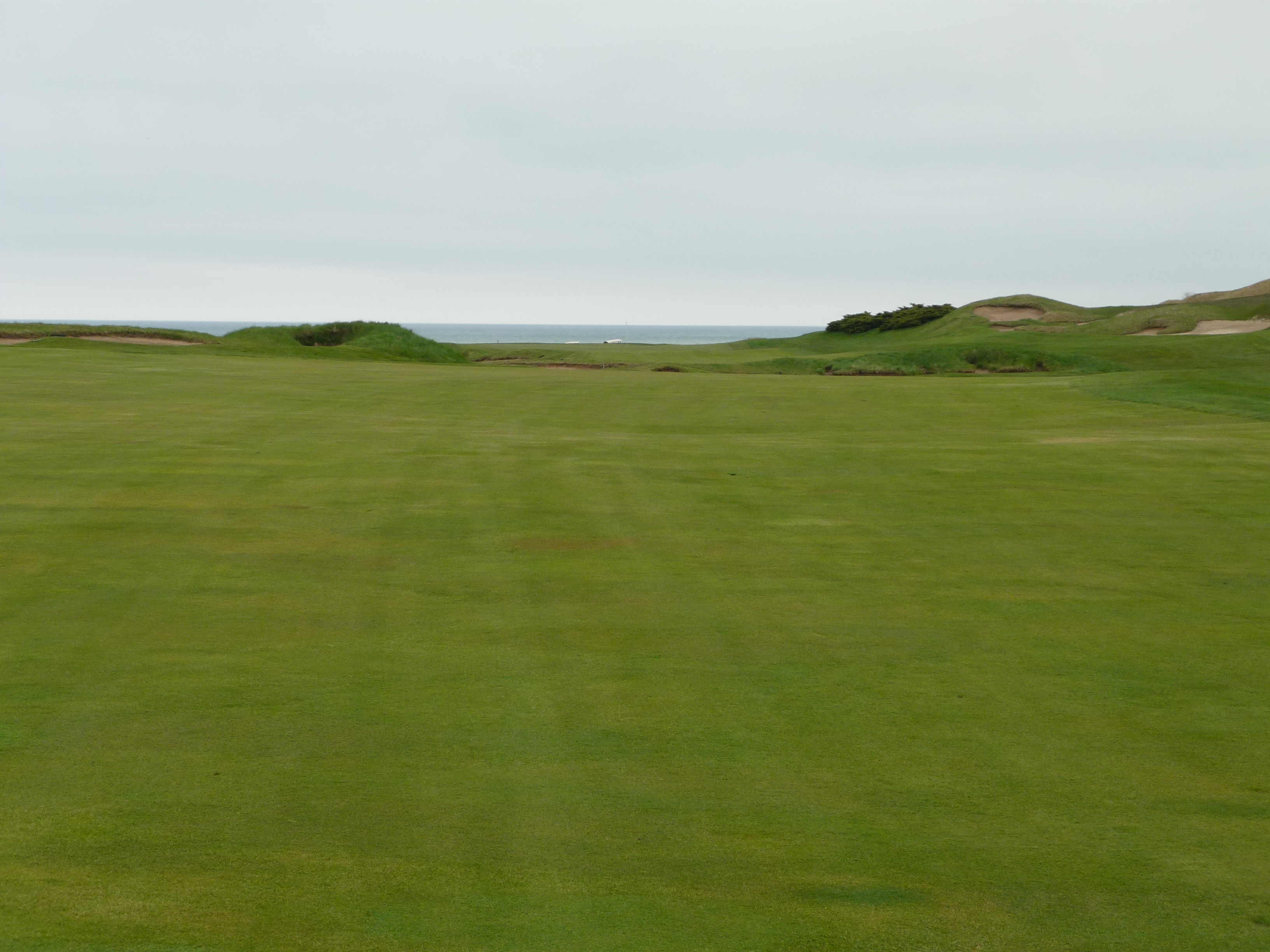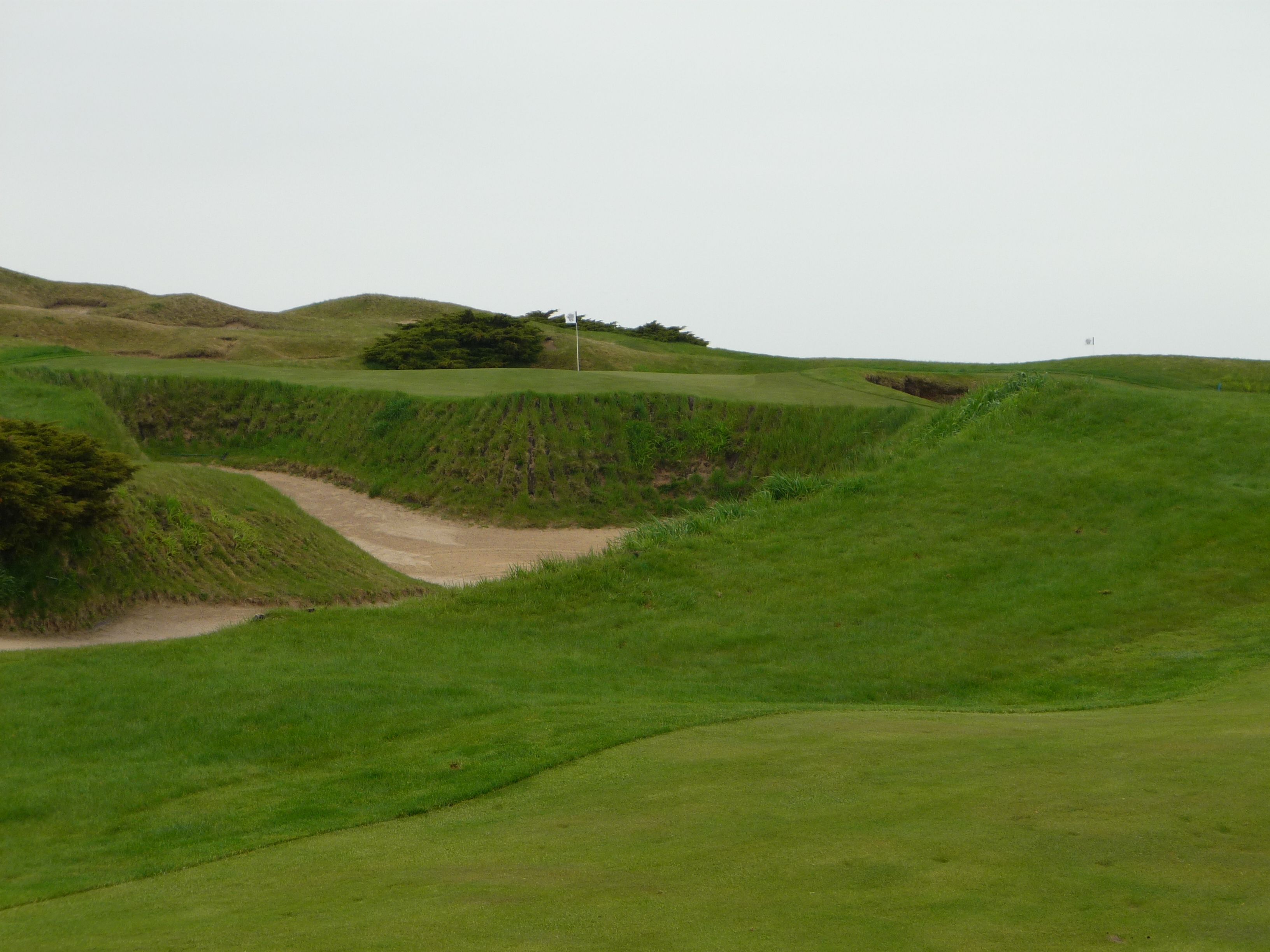 You might be thinking that there is no fairway here. That was my first thought when I saw this view from the tips. The fairway is raised to the left in a somewhat unconventional design. The shorter tees provide a better view of the fairway.