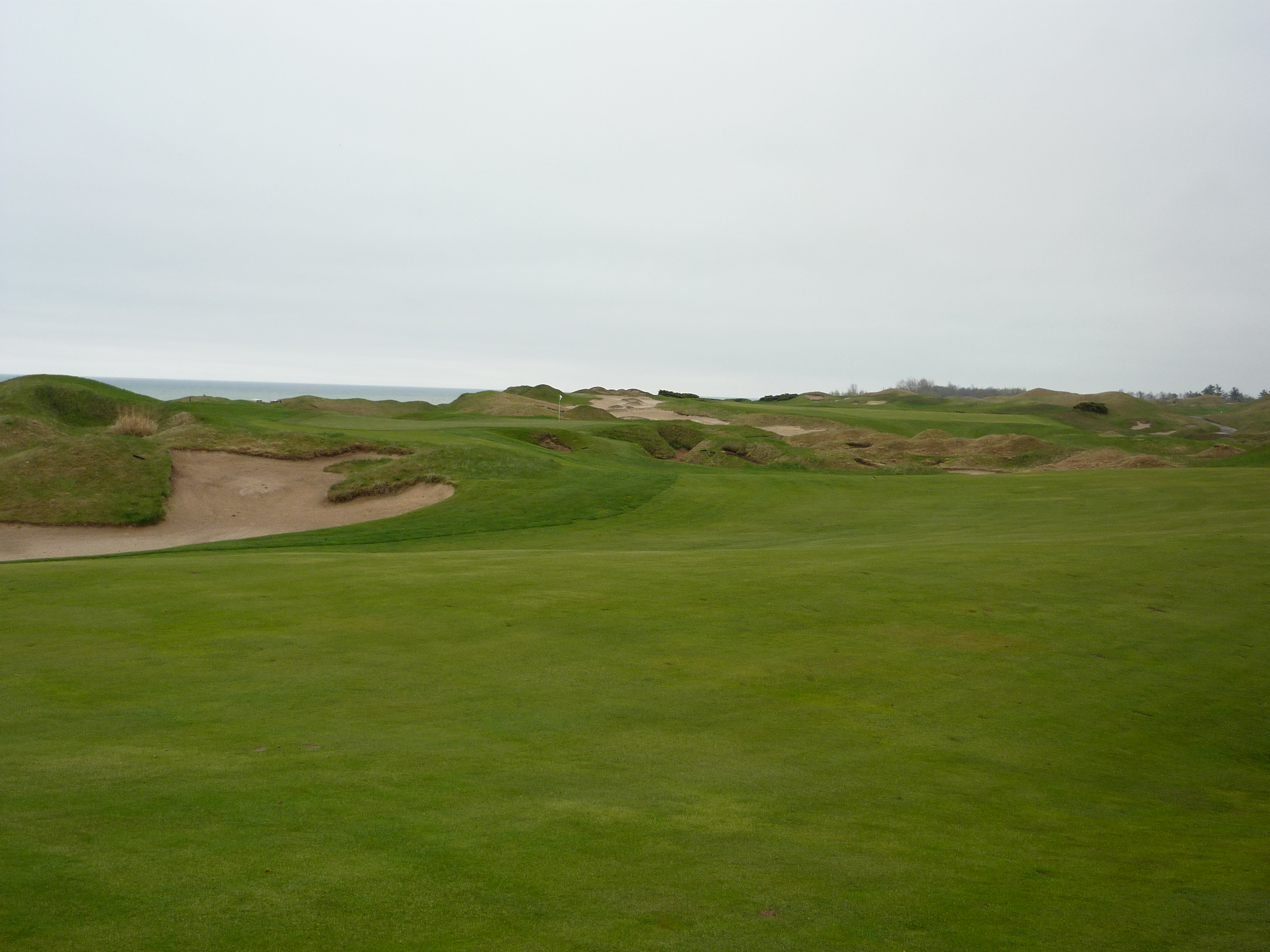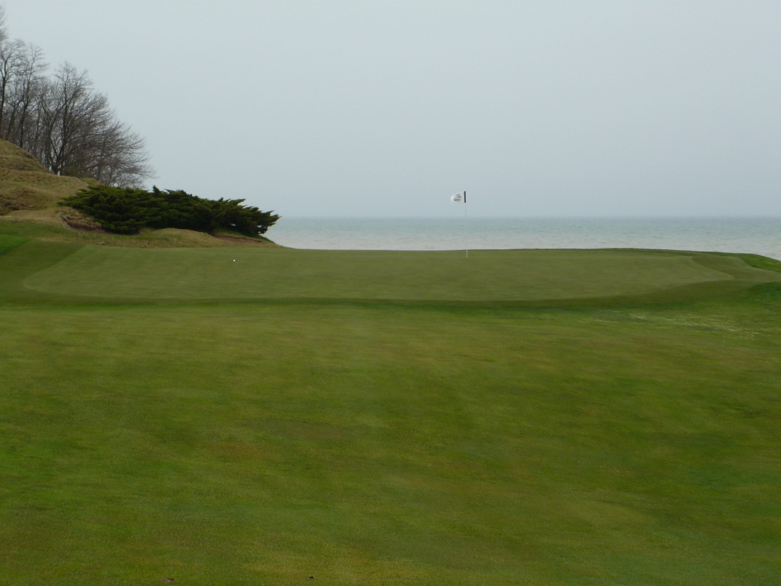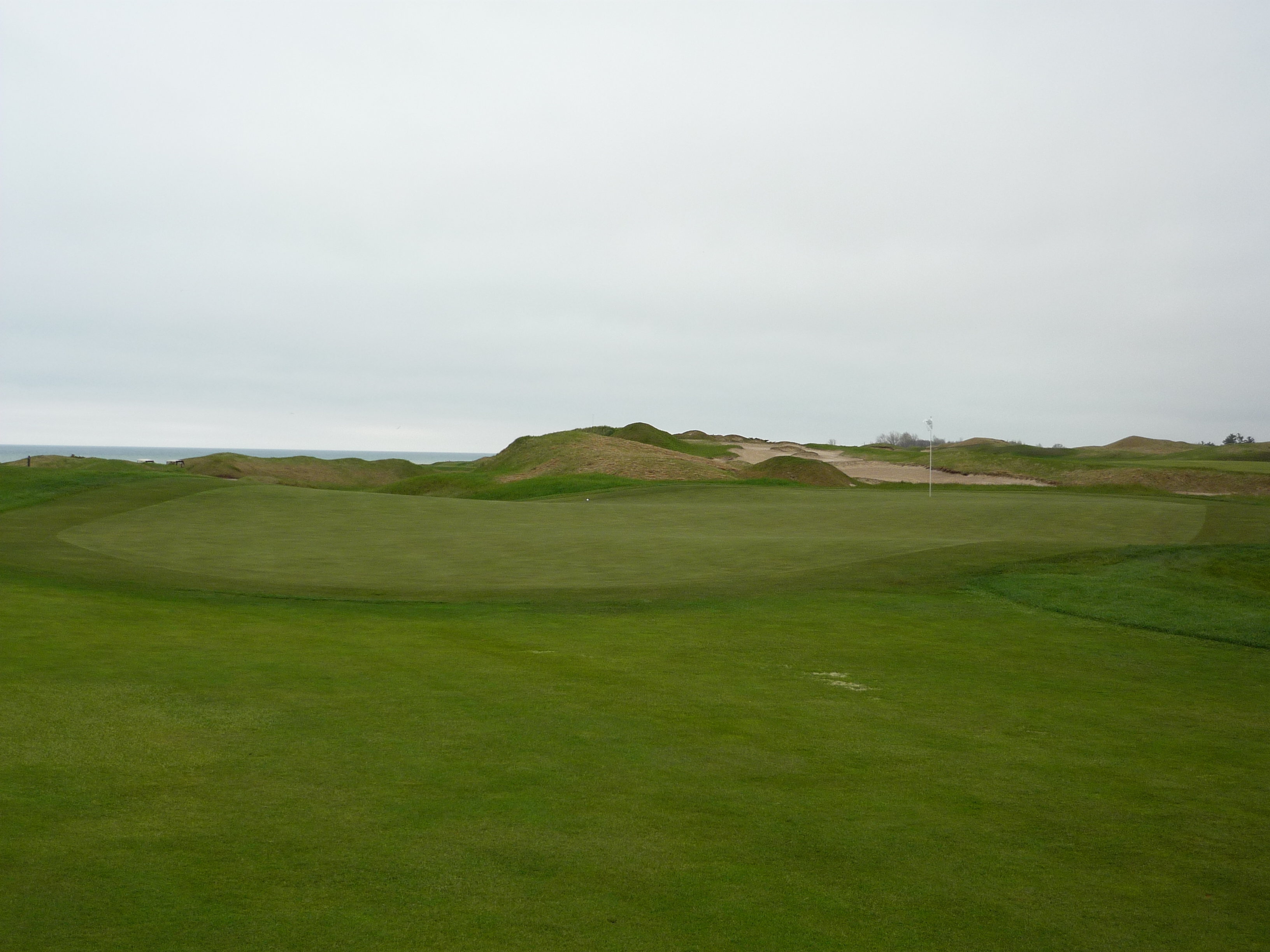 A strip of fairway left provides a small bailout area. As you can see, this hole is in close proximity to Lake Michigan. The vibe here was really cool.