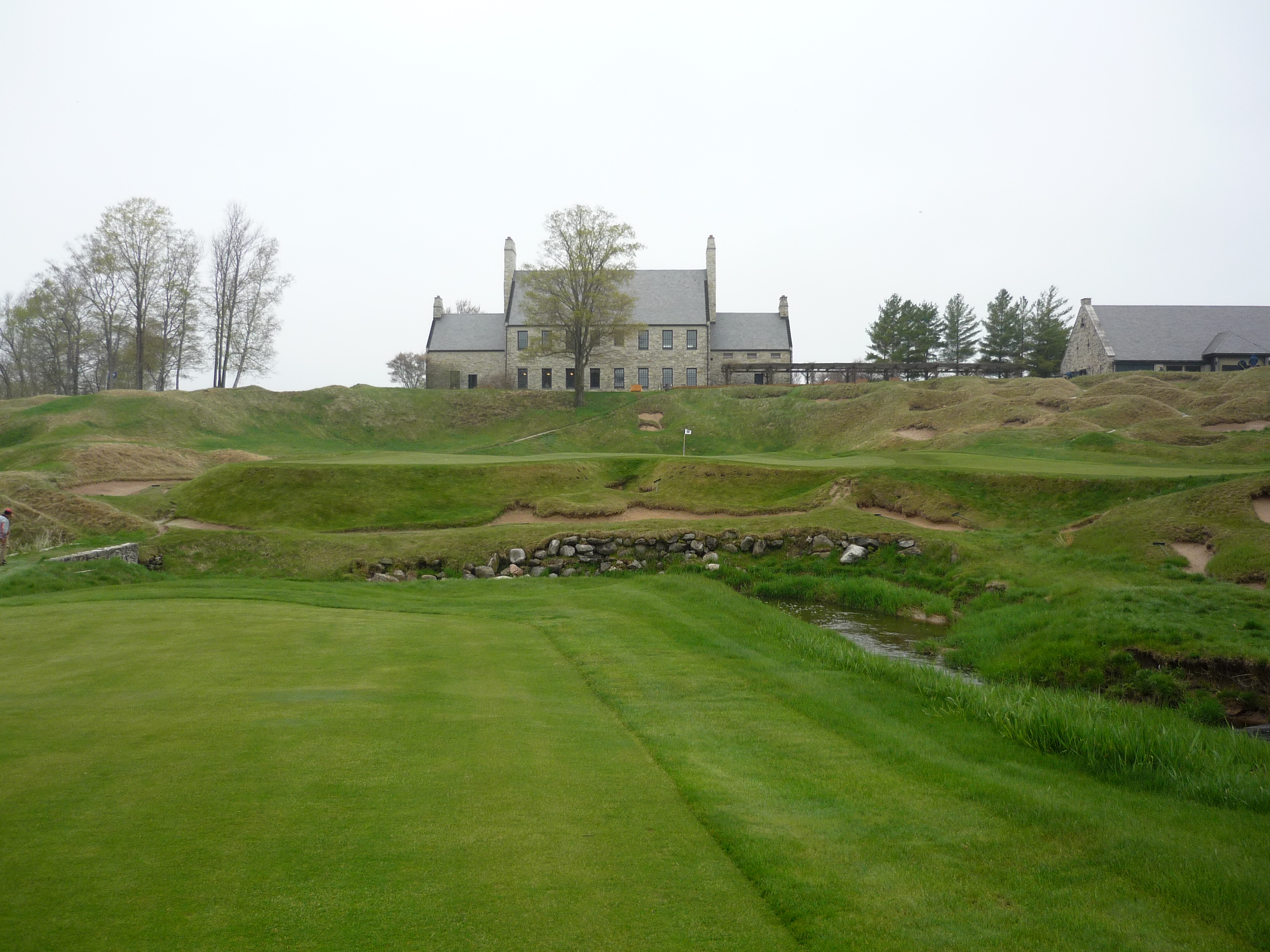 While the hole is difficult, the setting is serene with the understated clubhouse overlooking the green.
