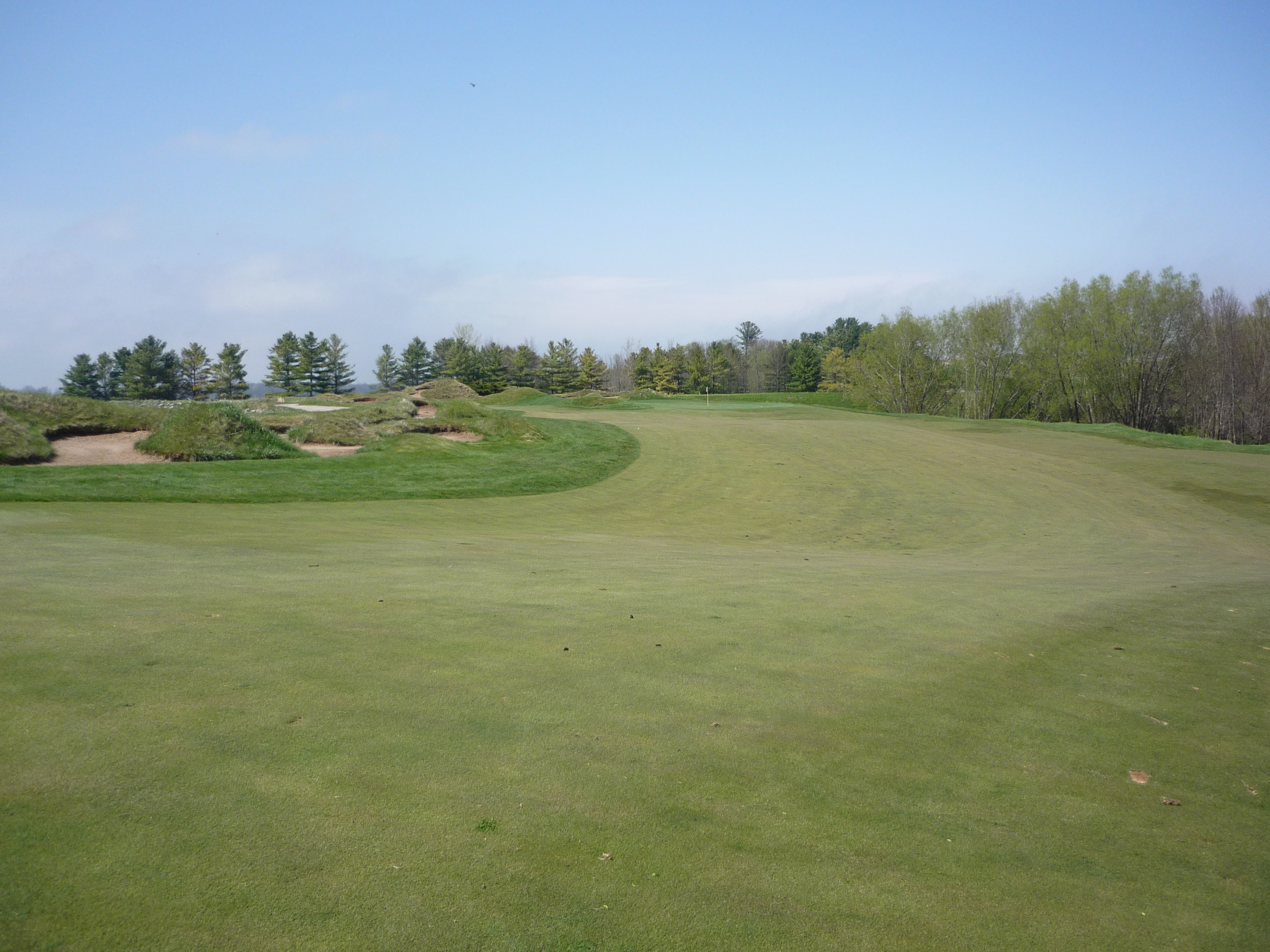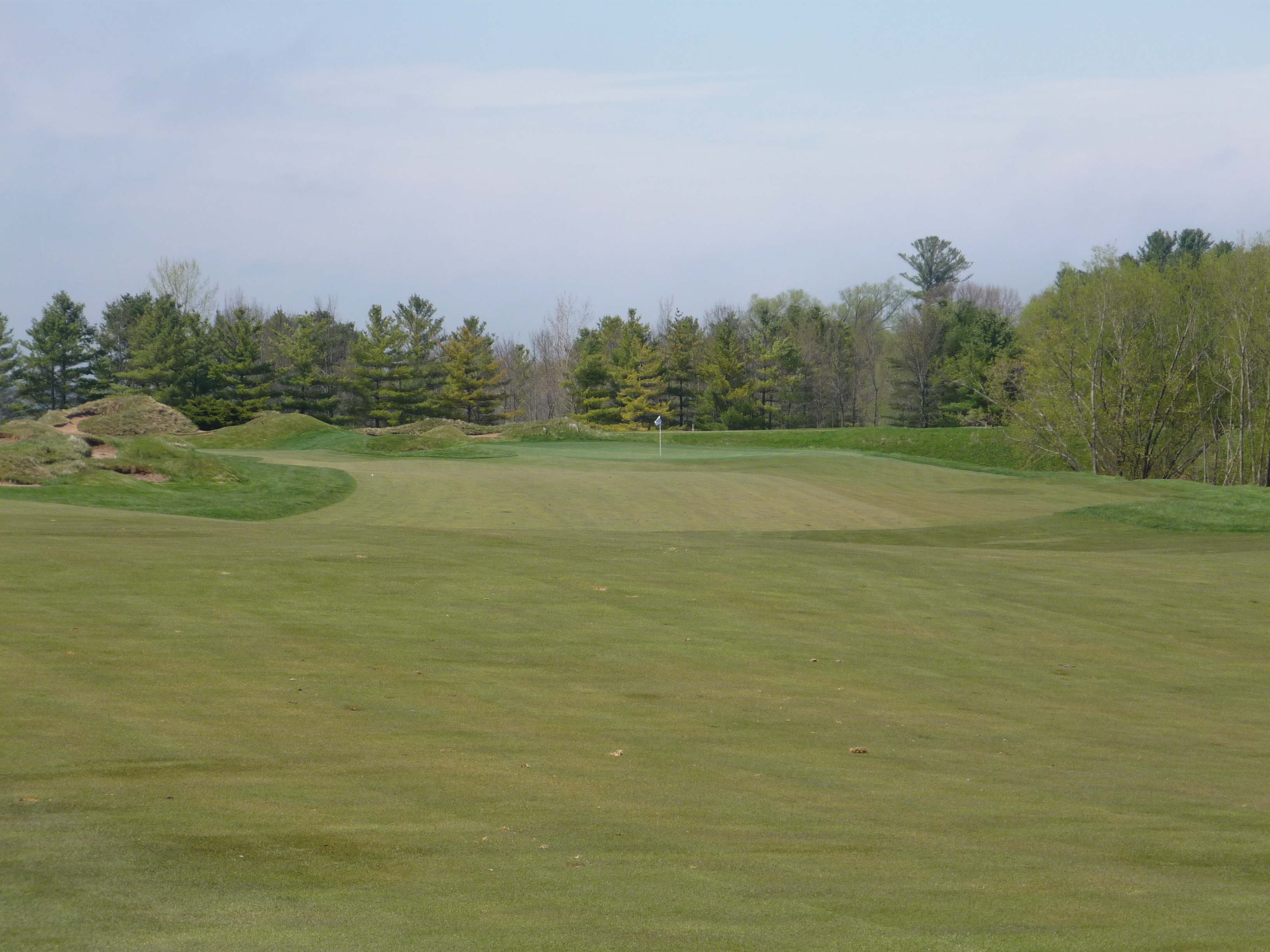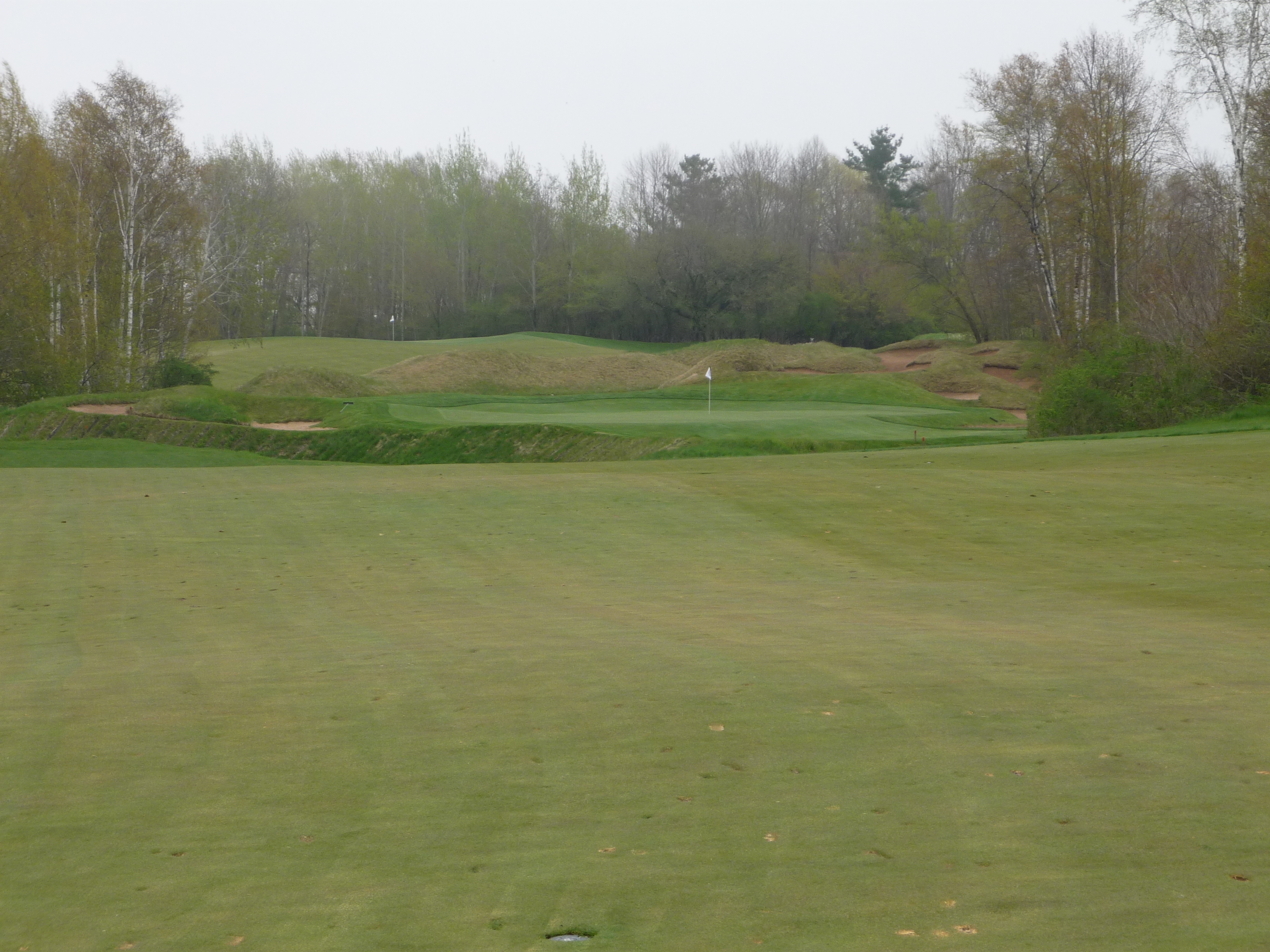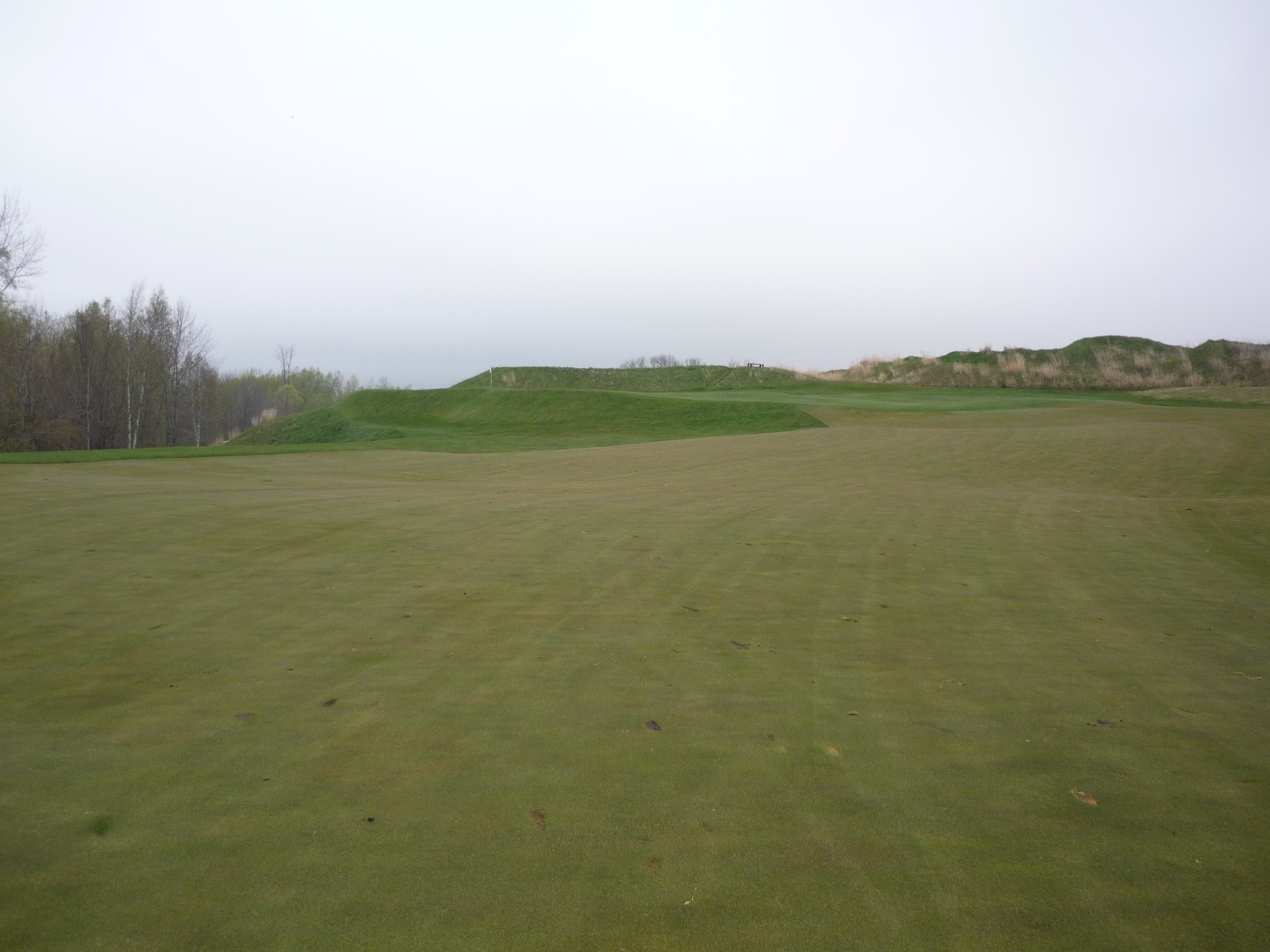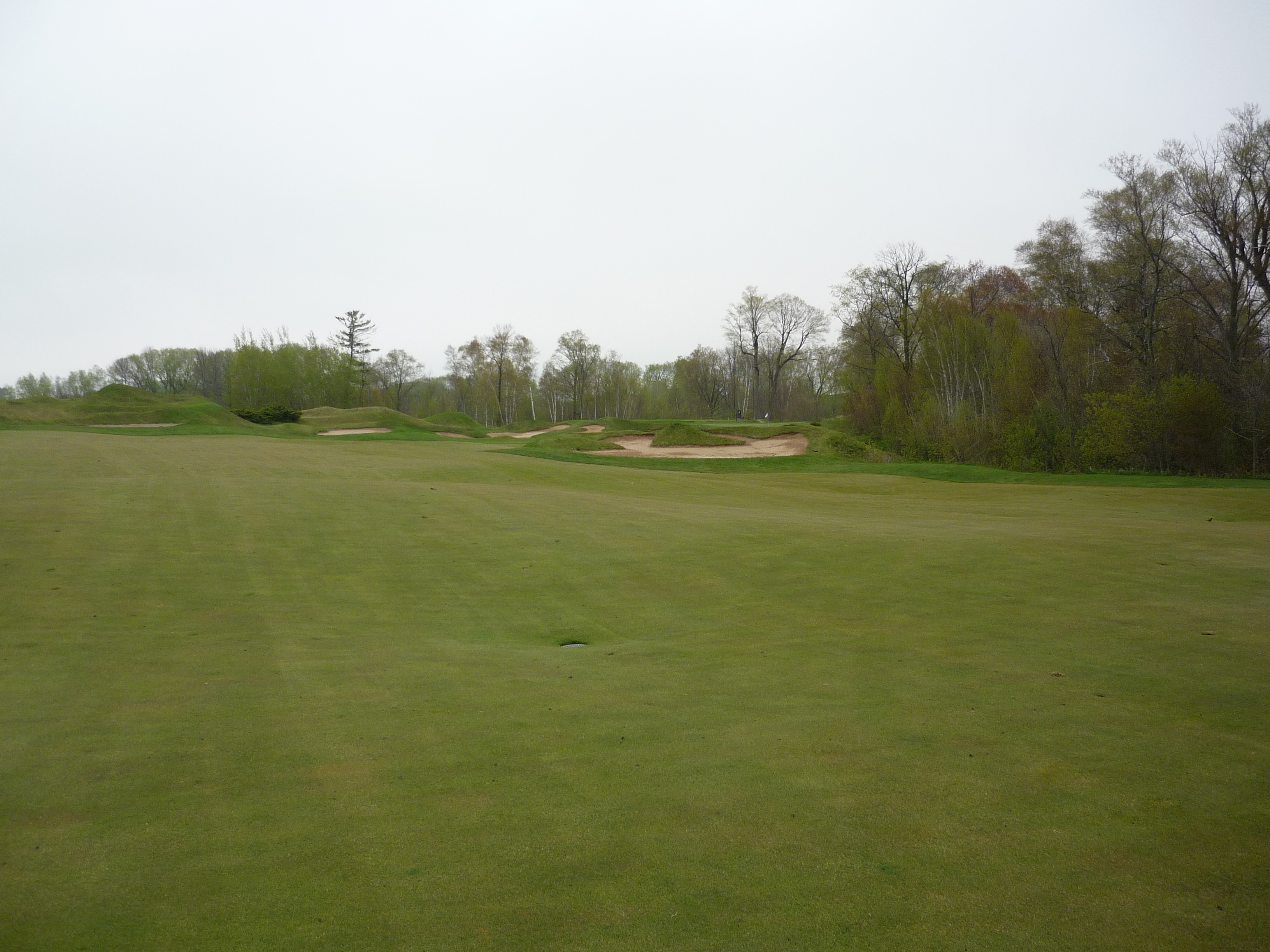 This is quite an interesting hole, especially because of the surrounding landforms. In the photos, you can see the large dune on the left side of the hole as well as the dunes behind the green. This didn’t fit my preconceived notion of Wisconsin golf.