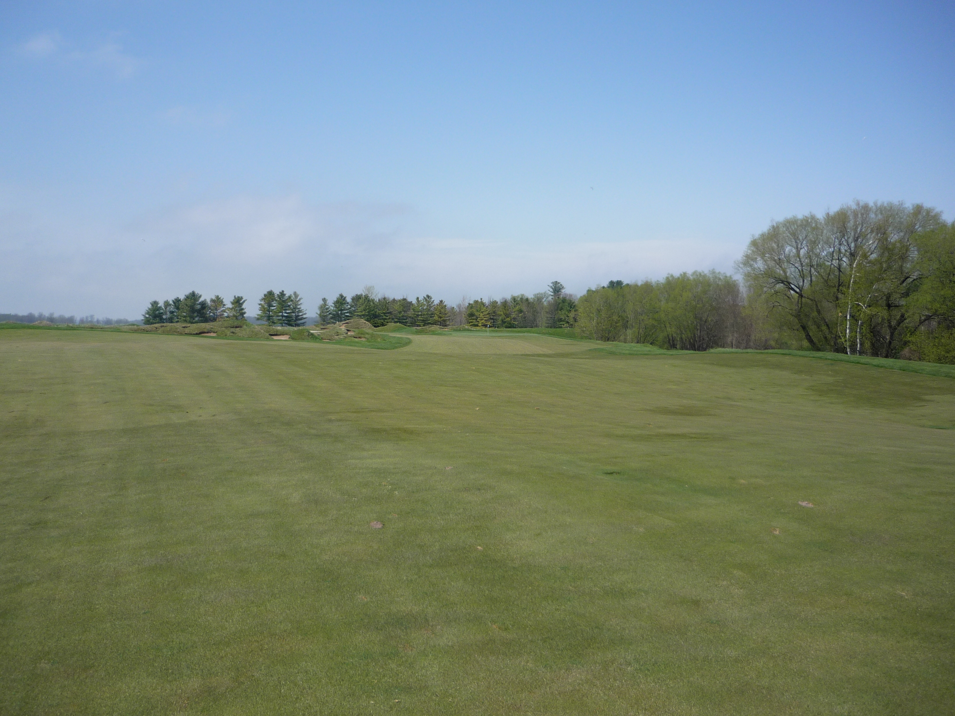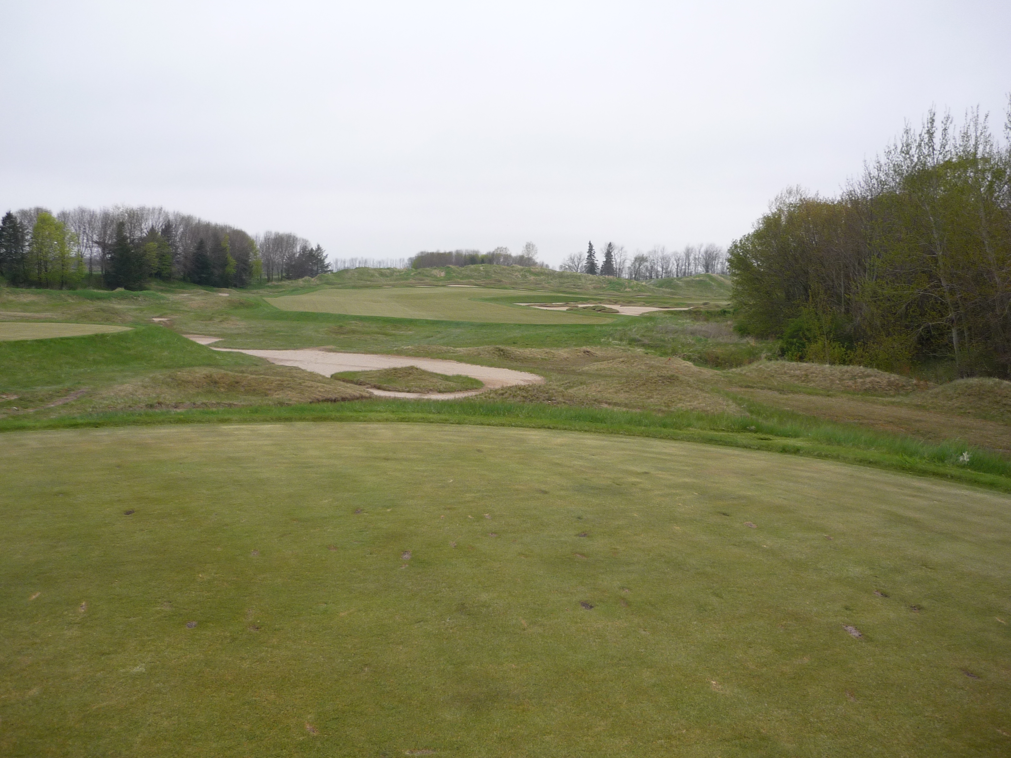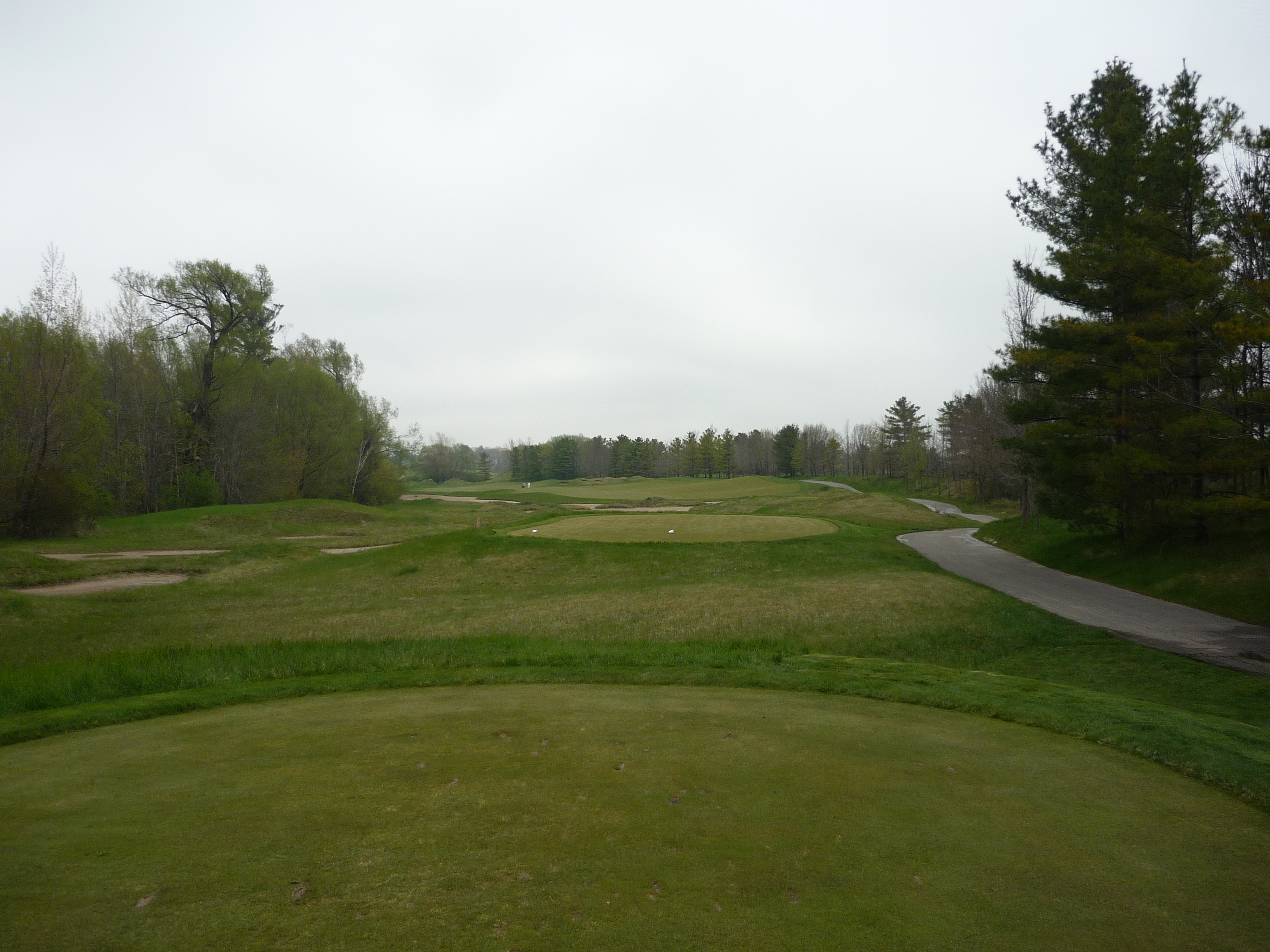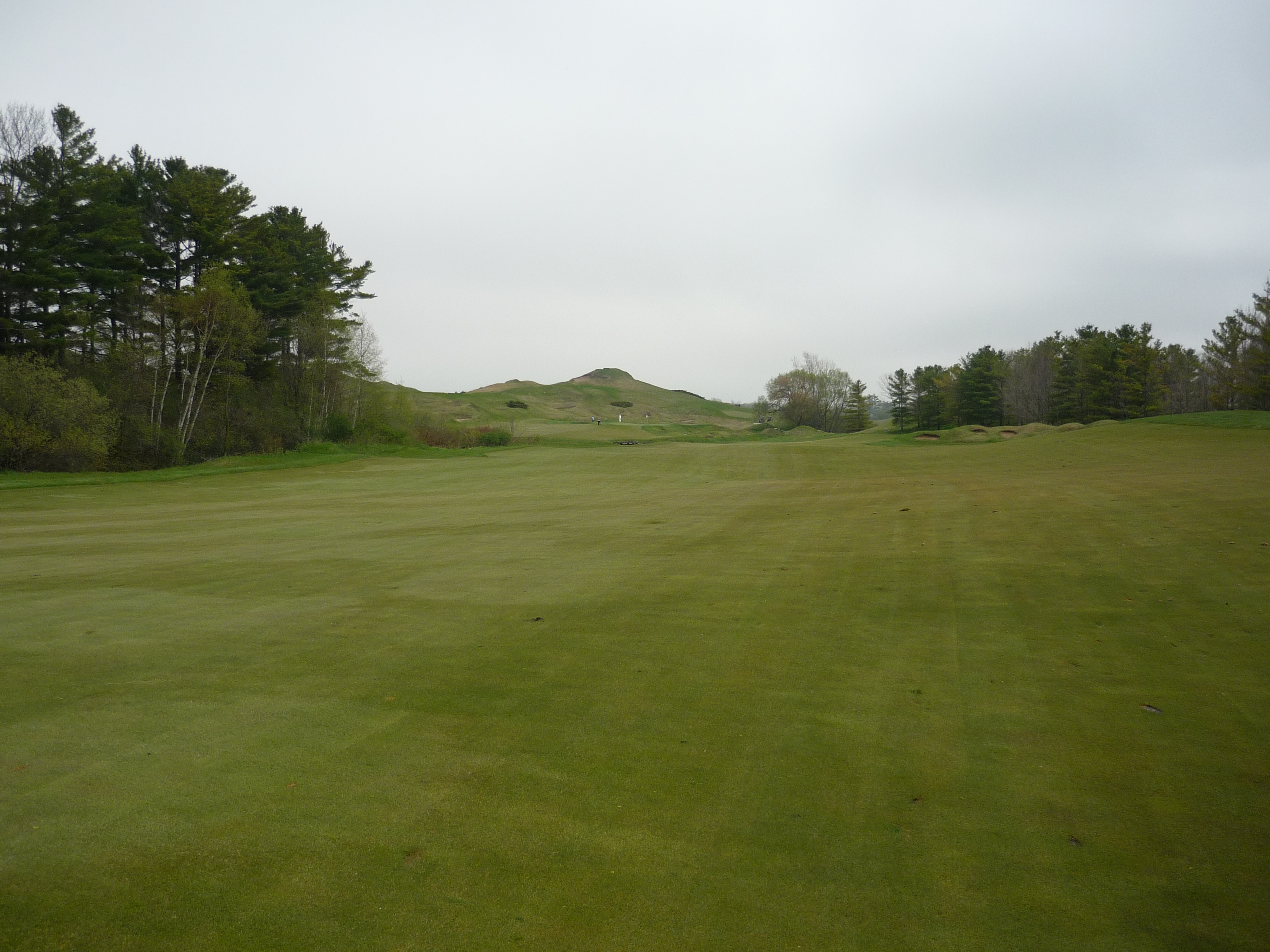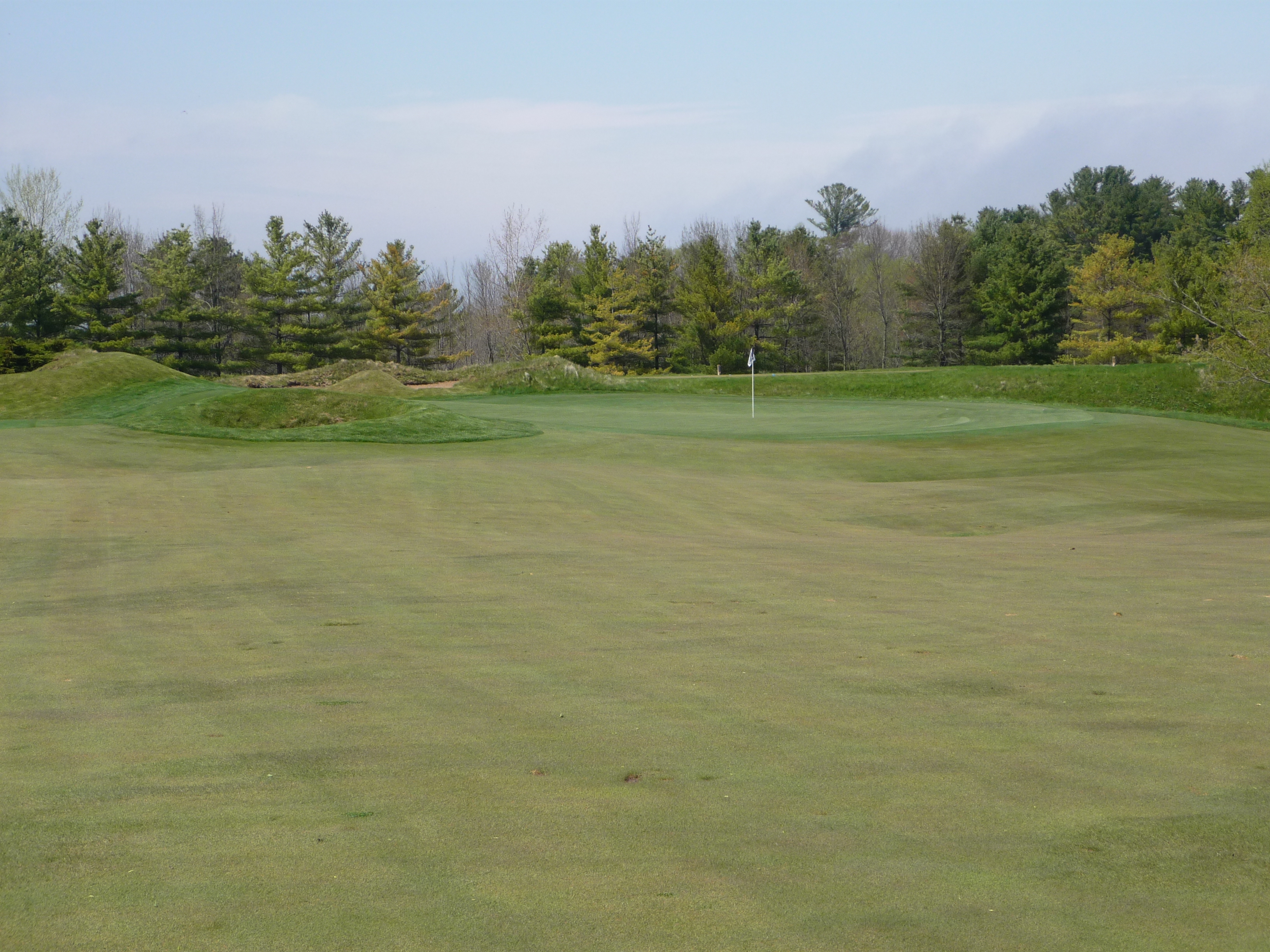 This is quite an interesting hole, especially because of the surrounding landforms. In the photos, you can see the large dune on the left side of the hole as well as the dunes behind the green. This didn’t fit my preconceived notion of Wisconsin golf.
