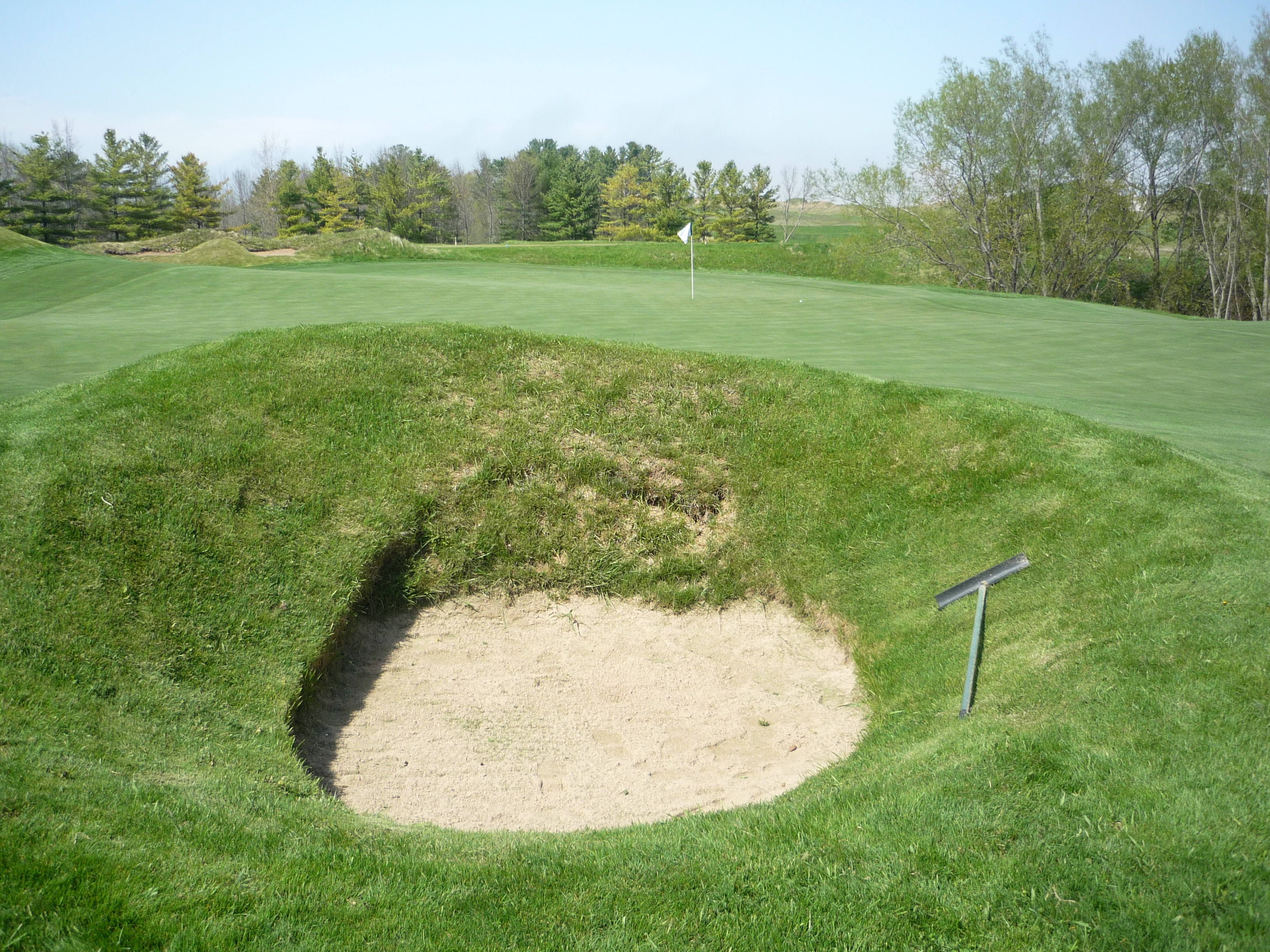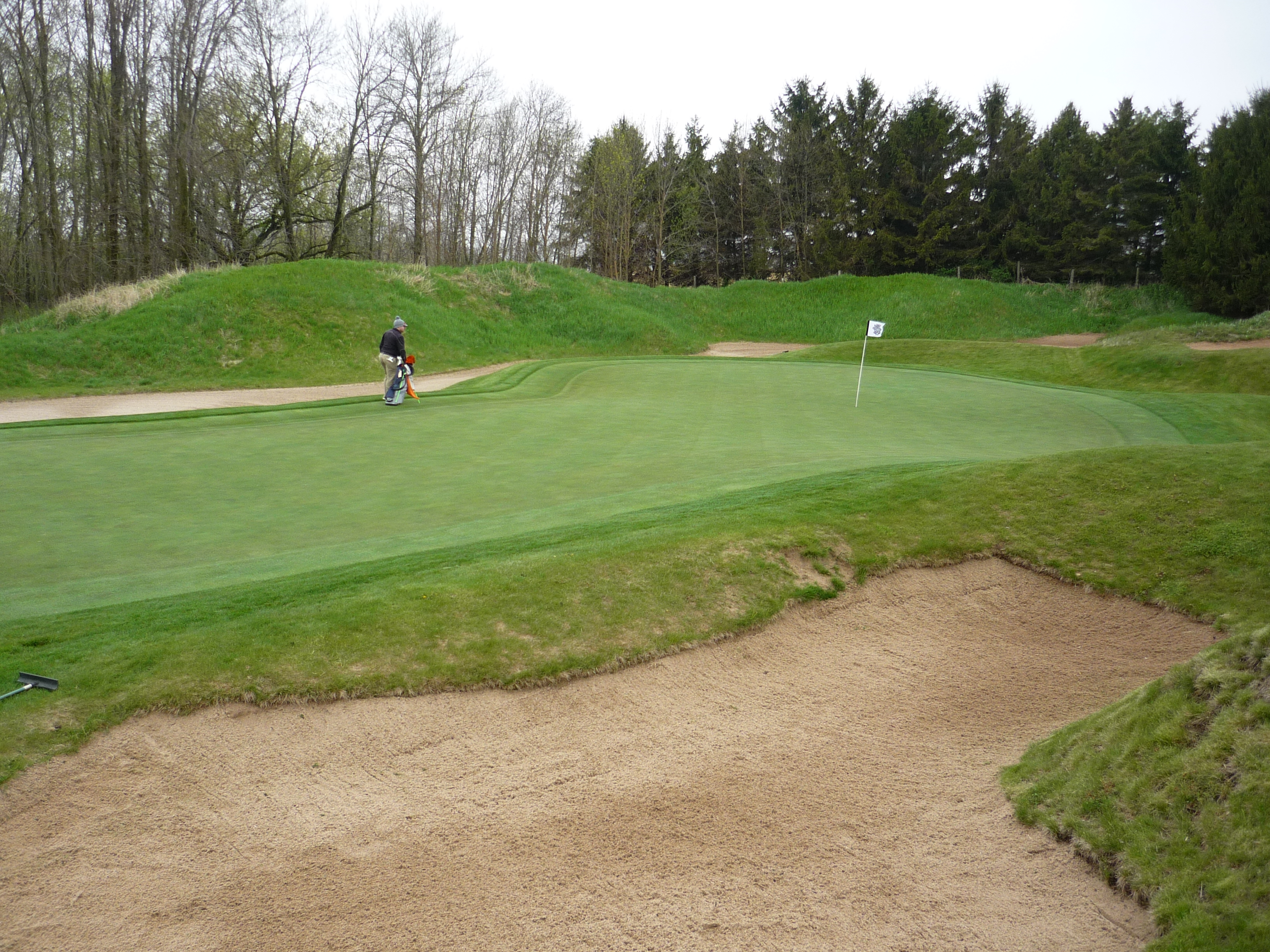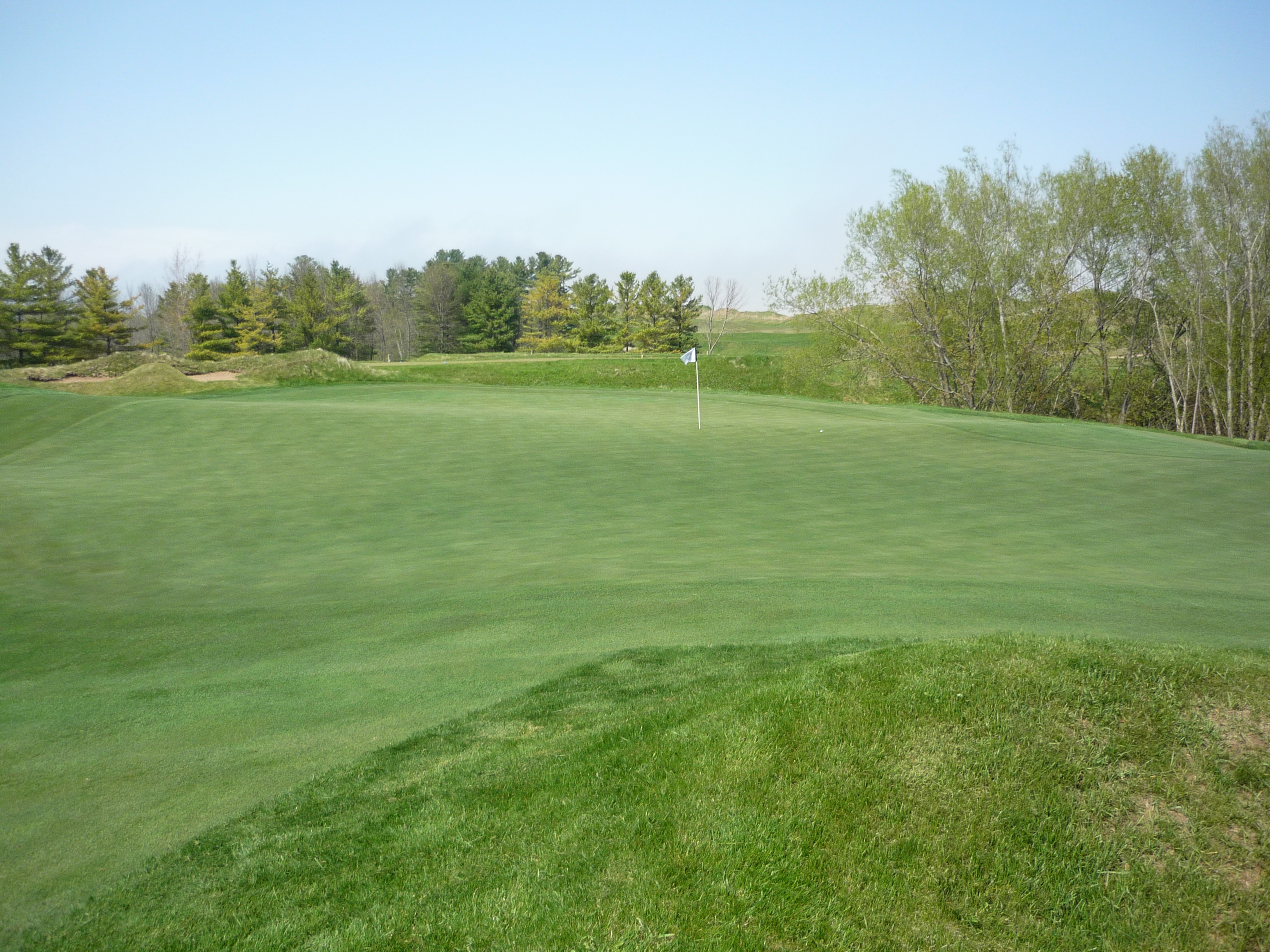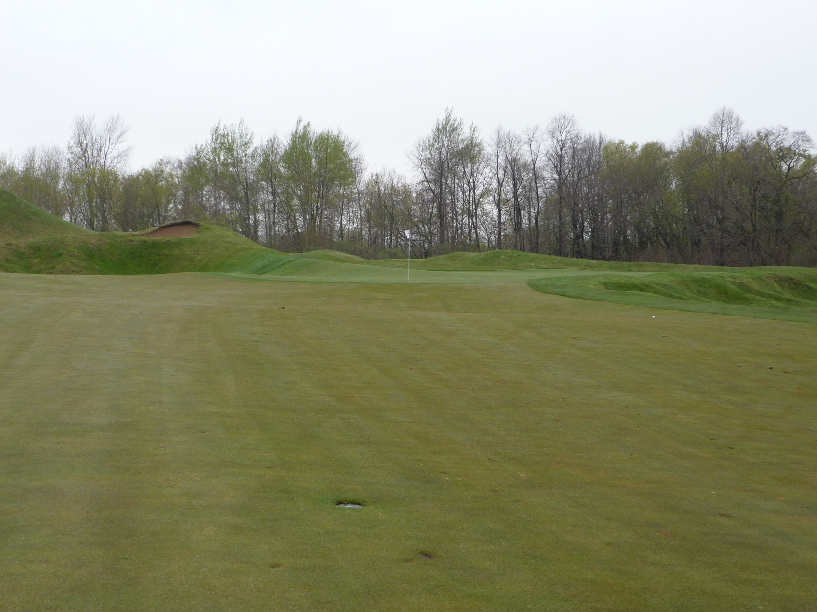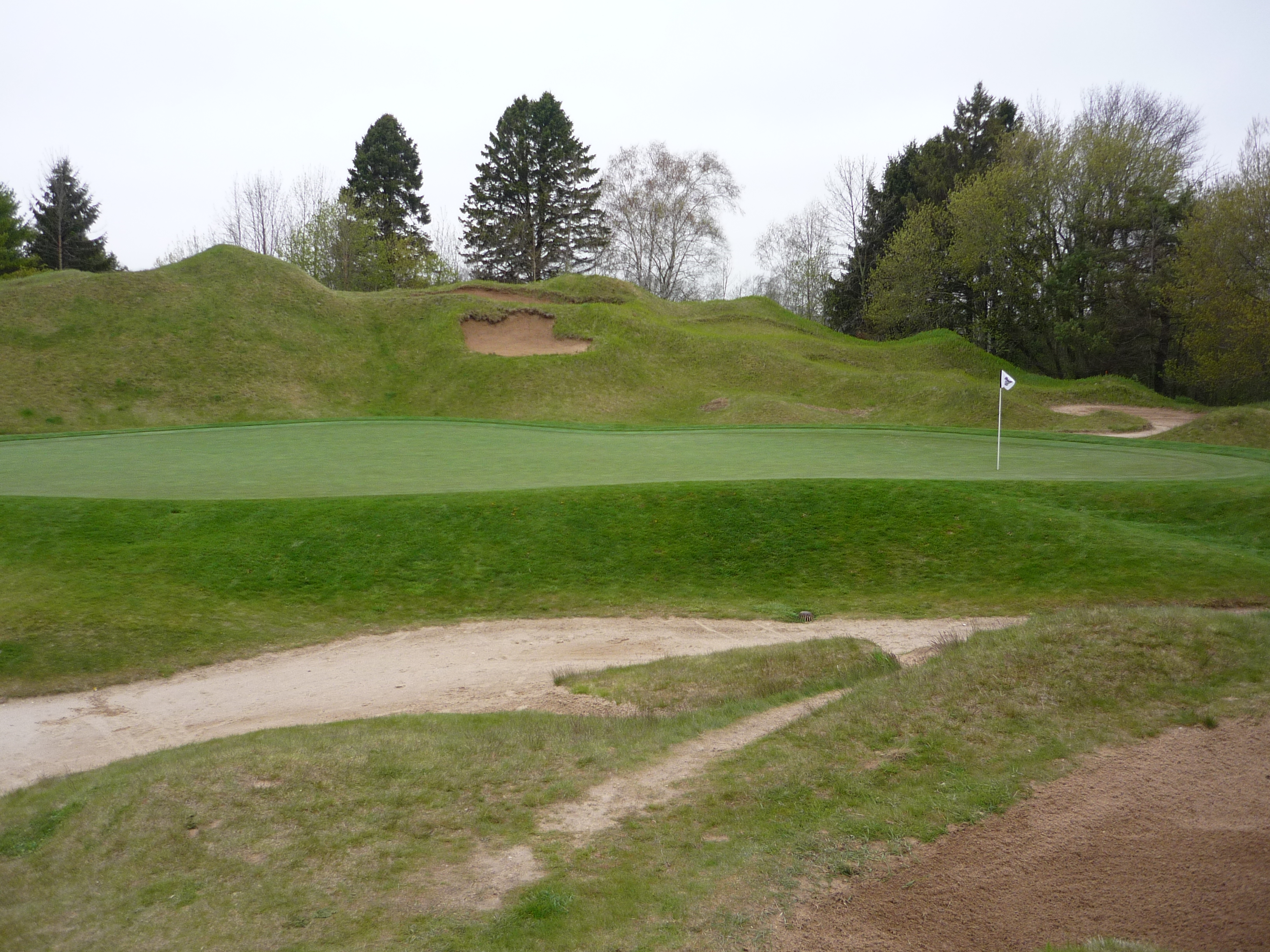 This is quite an interesting hole, especially because of the surrounding landforms. In the photos, you can see the large dune on the left side of the hole as well as the dunes behind the green. This didn’t fit my preconceived notion of Wisconsin golf.