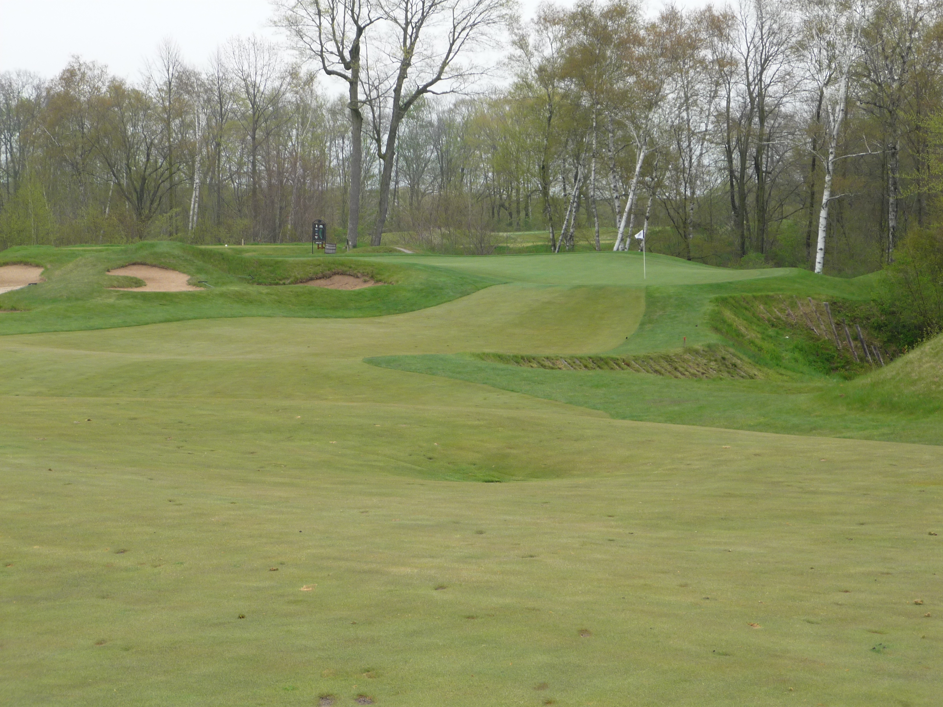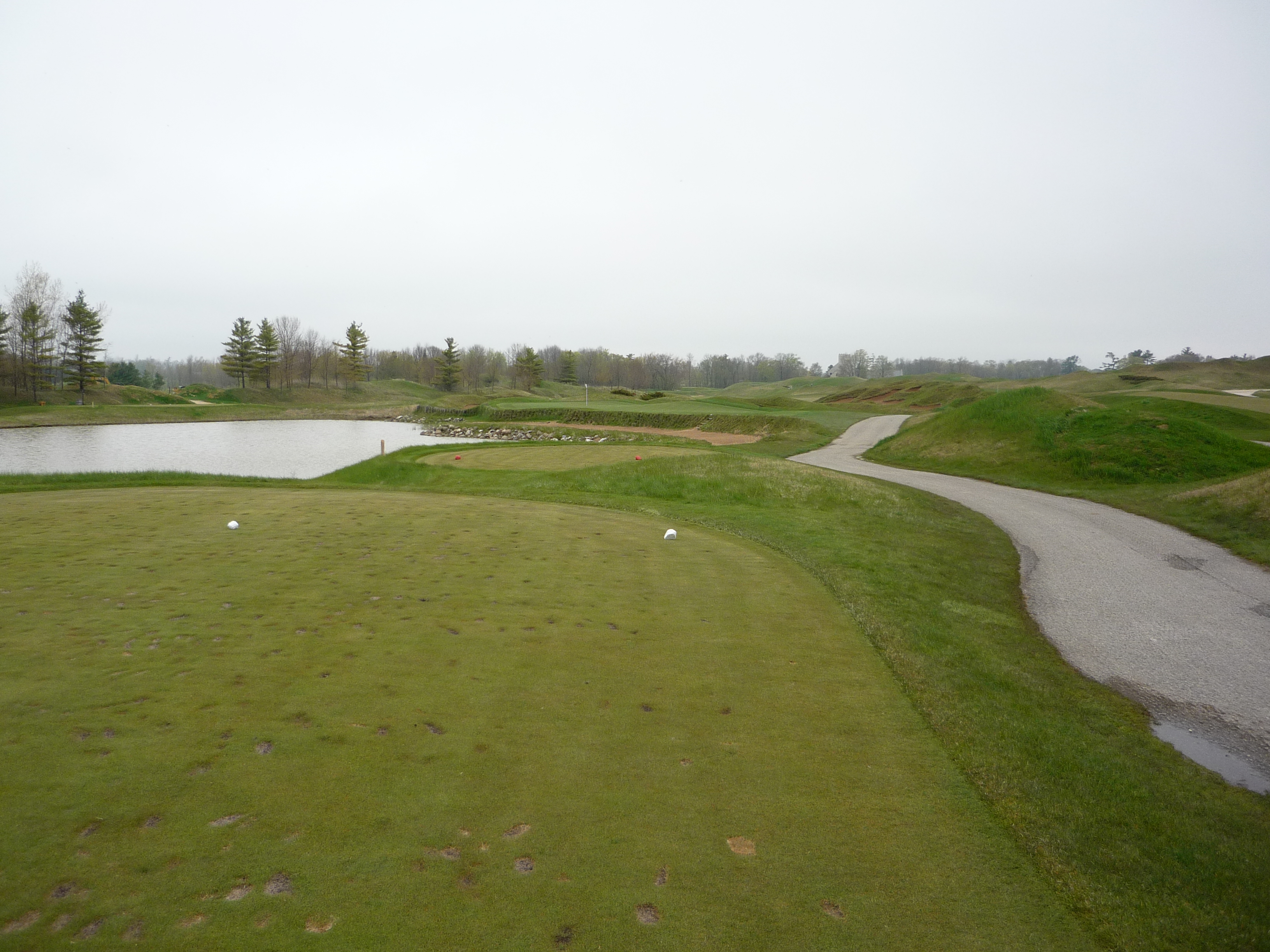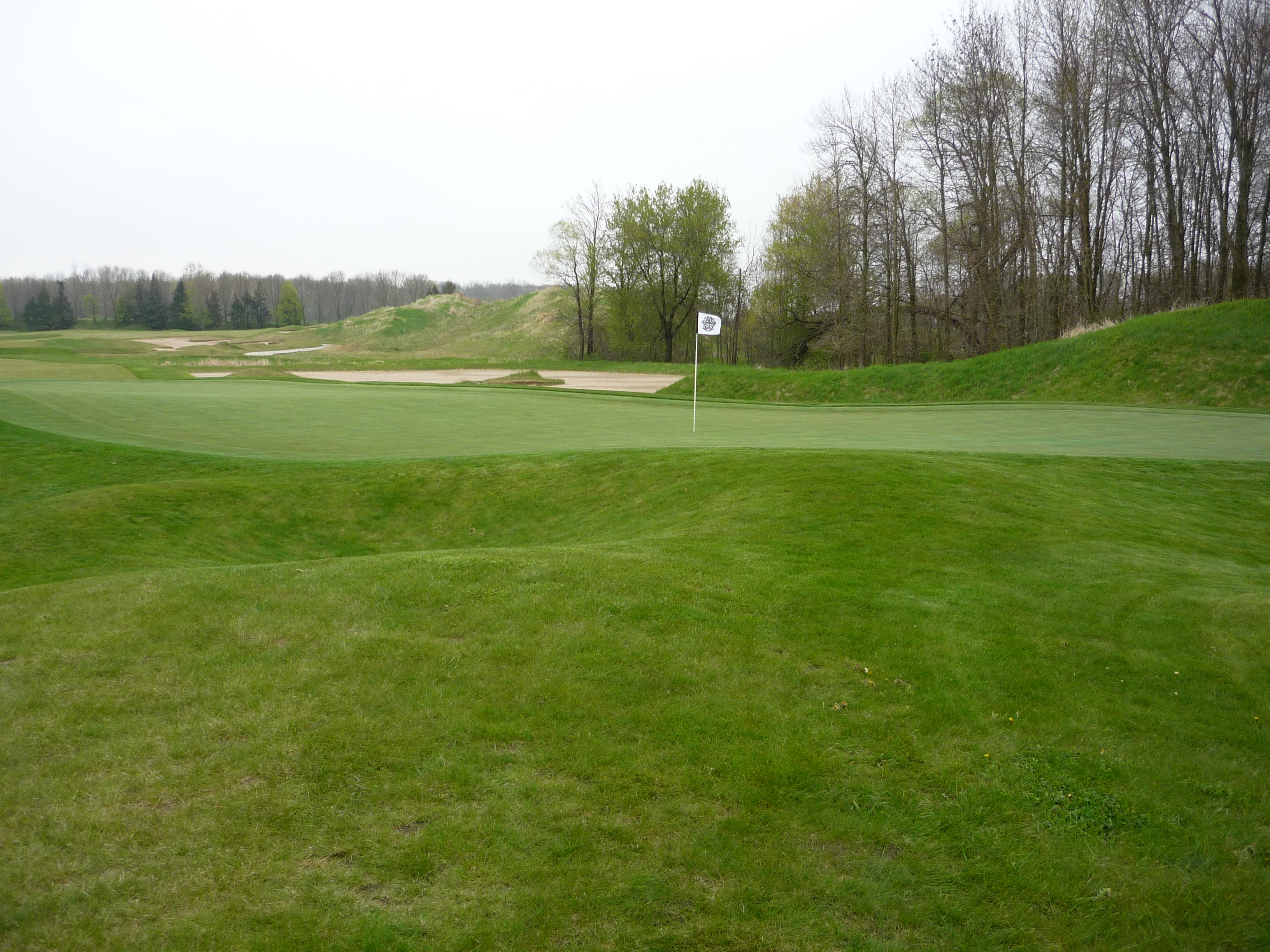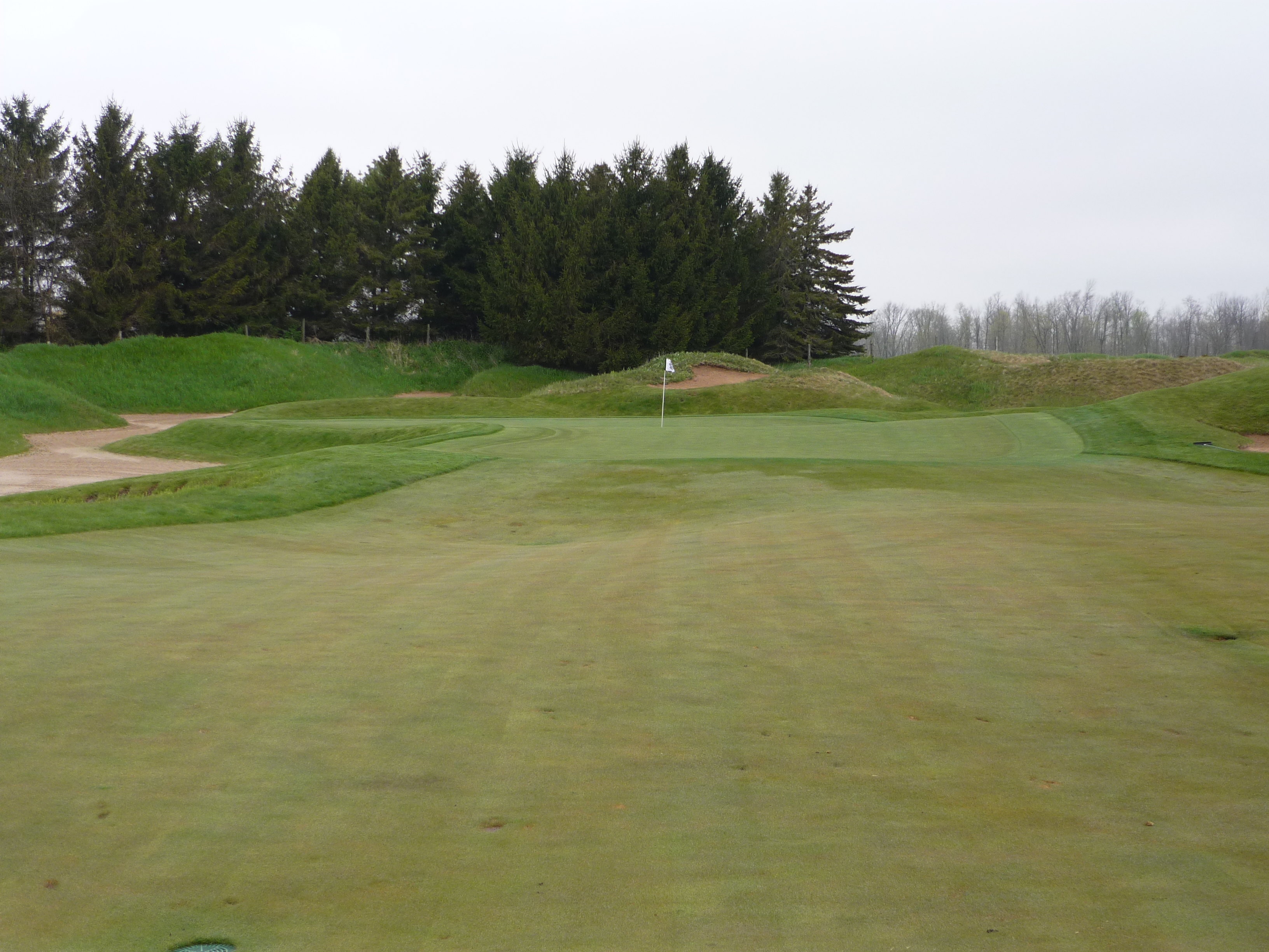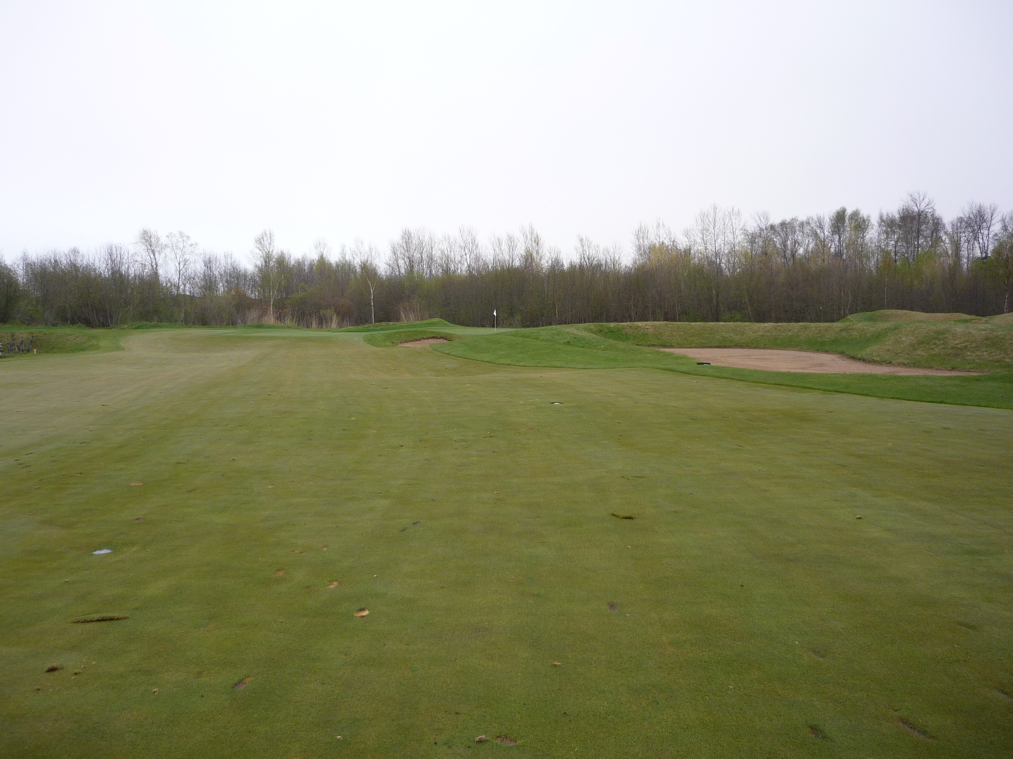 This is quite an interesting hole, especially because of the surrounding landforms. In the photos, you can see the large dune on the left side of the hole as well as the dunes behind the green. This didn’t fit my preconceived notion of Wisconsin golf.