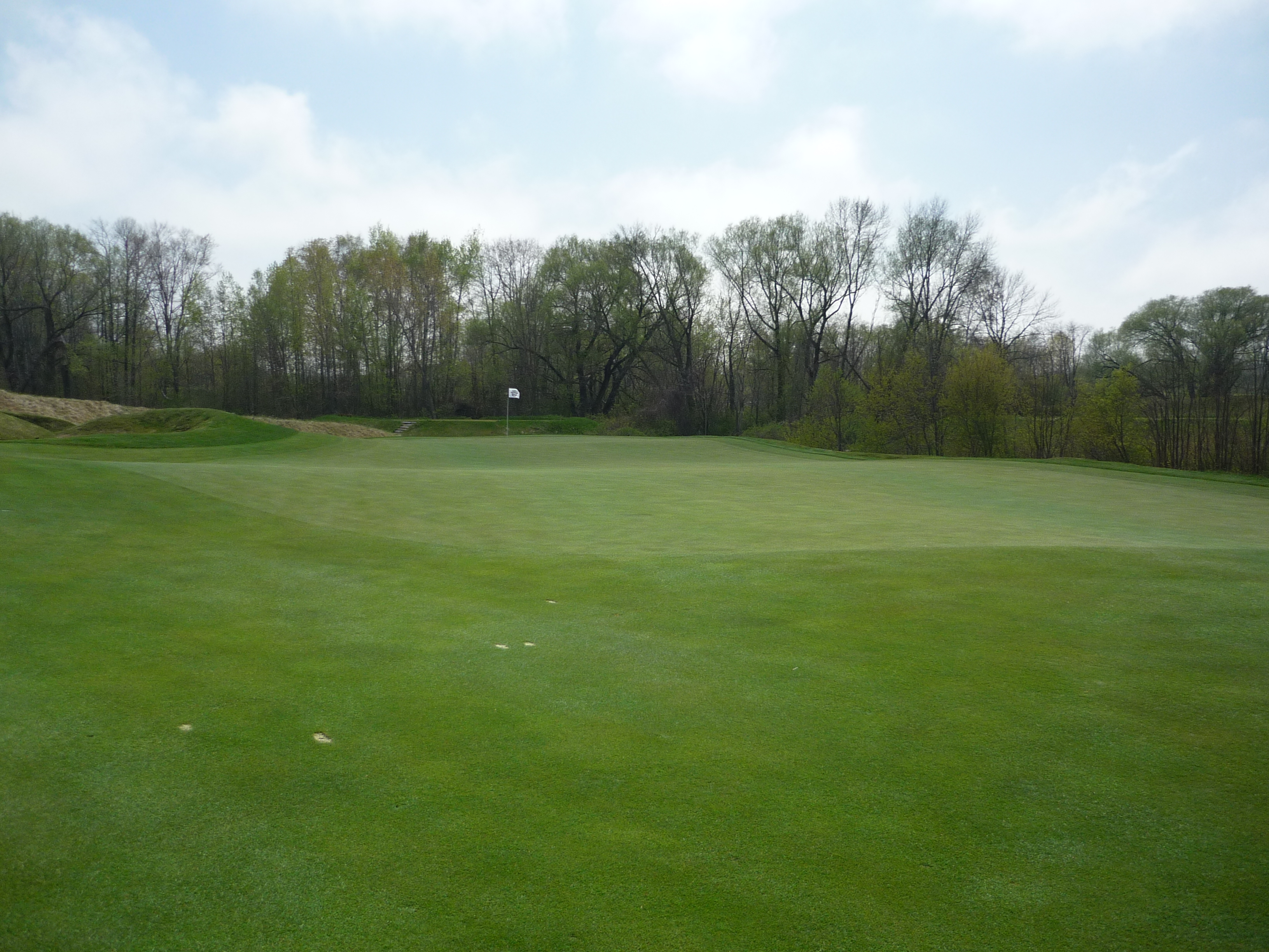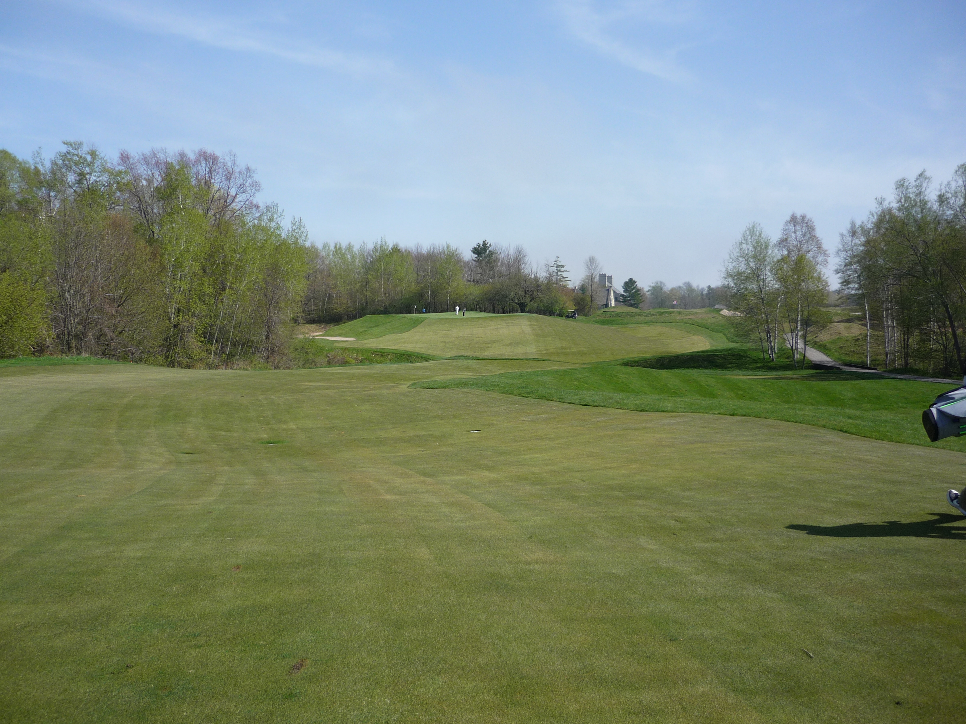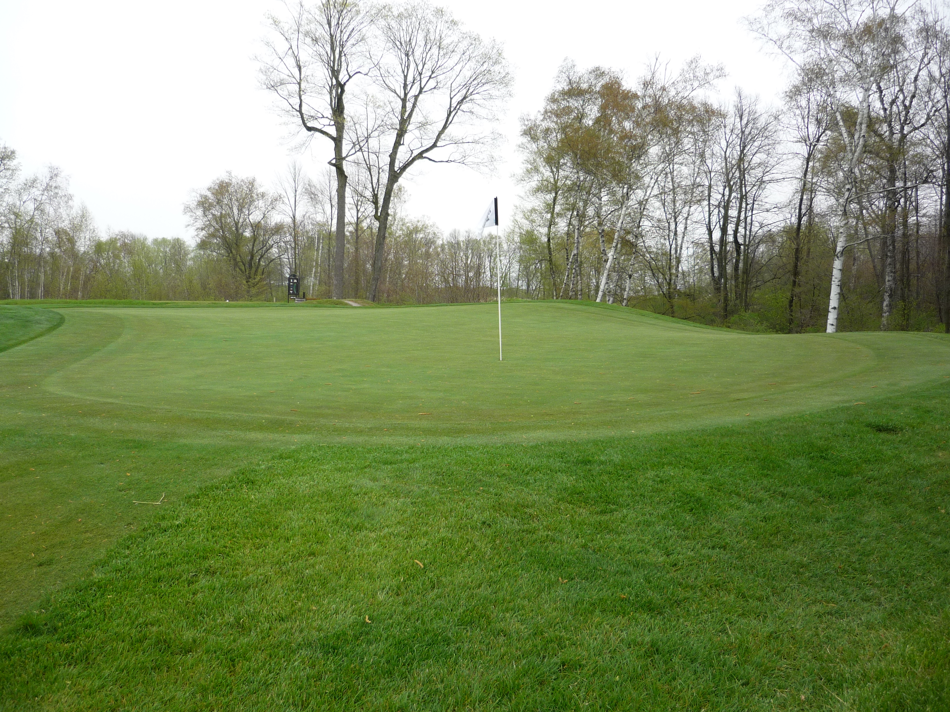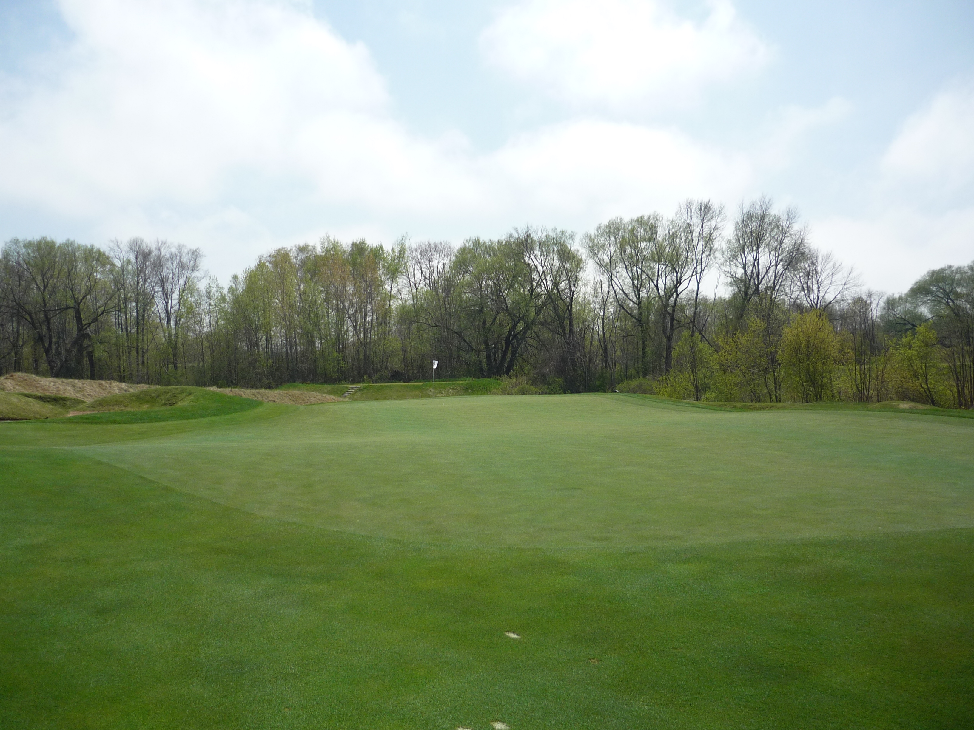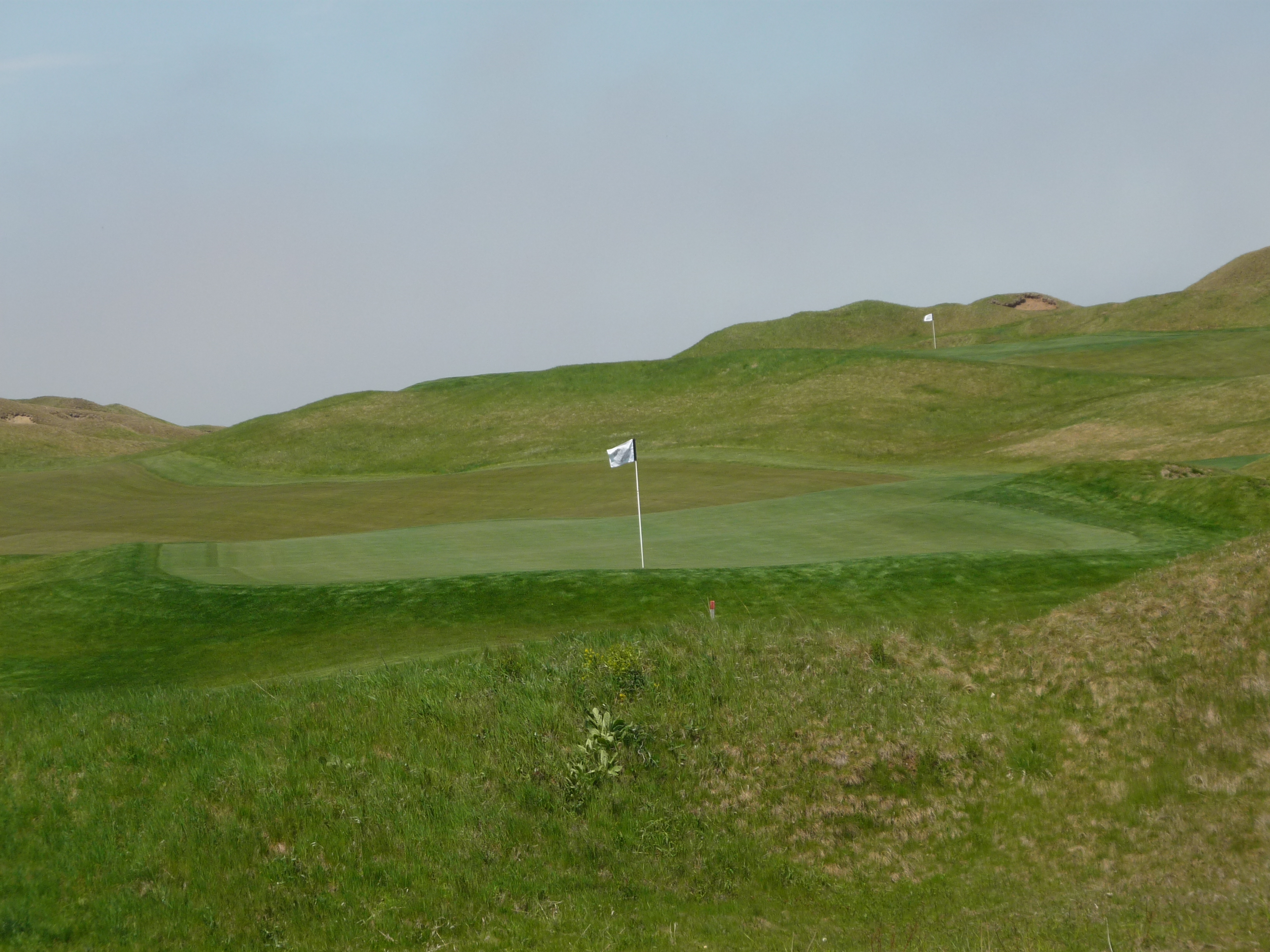 This is quite an interesting hole, especially because of the surrounding landforms. In the photos, you can see the large dune on the left side of the hole as well as the dunes behind the green. This didn’t fit my preconceived notion of Wisconsin golf.