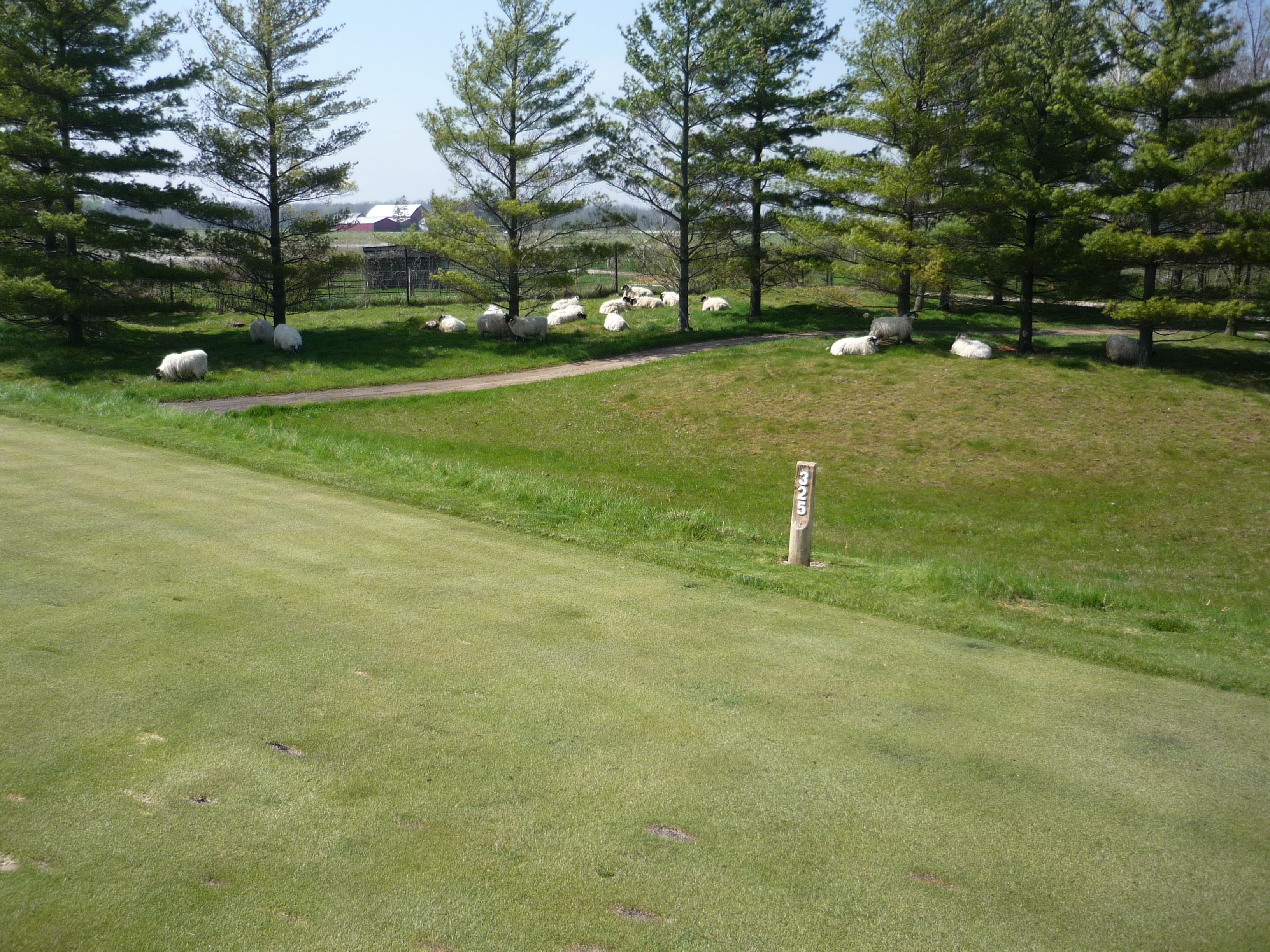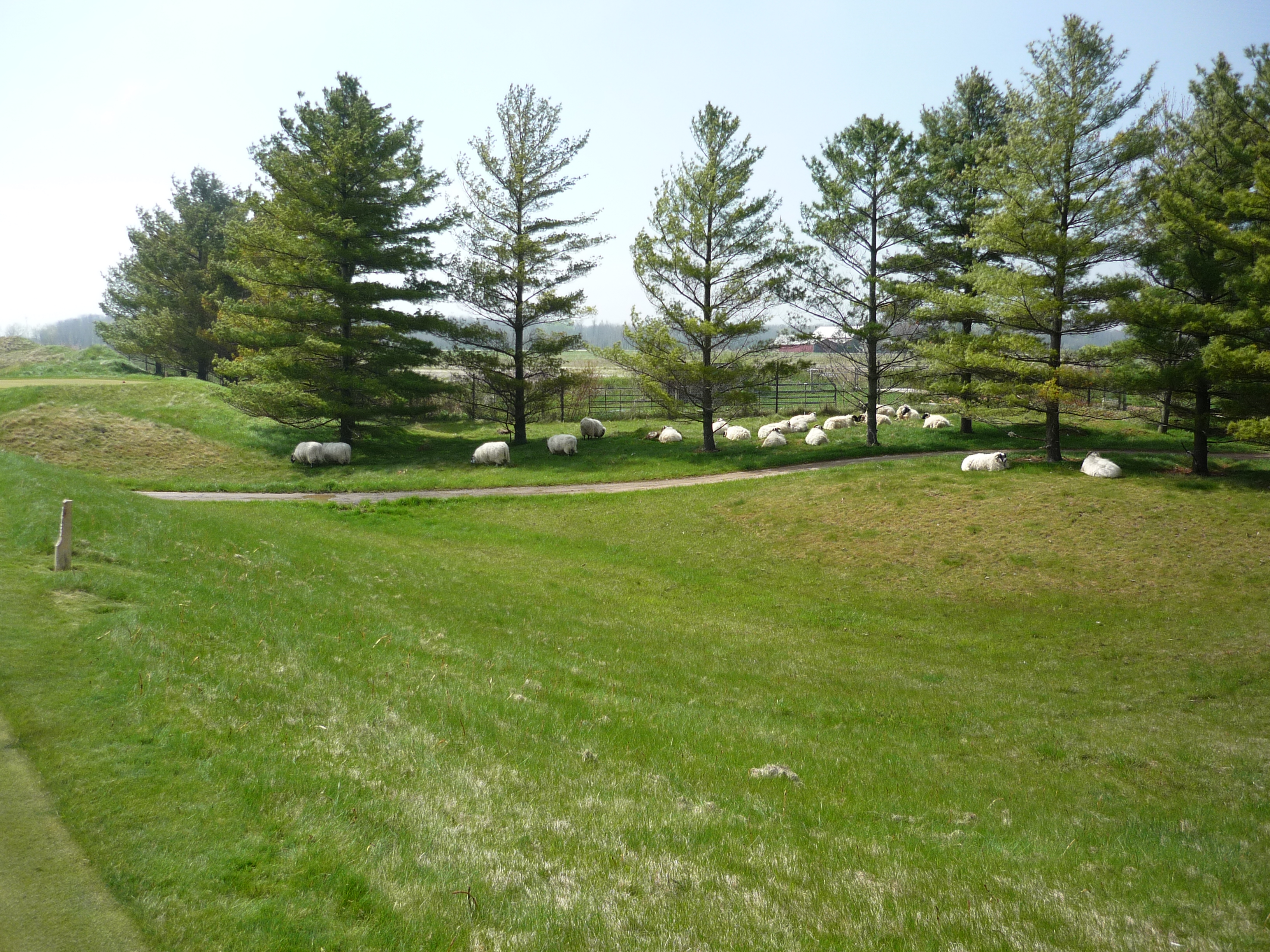 I didn’t quite know where to put the pictures below so I went with the end. These sheep are the unpaid groundskeepers on the Whistling Straits property. They meander throughout the holes and have bells on so they don’t sneak up on you. My wife noticed that you could see their wool on the trees, letting you know where they’d been. Pretty neat!